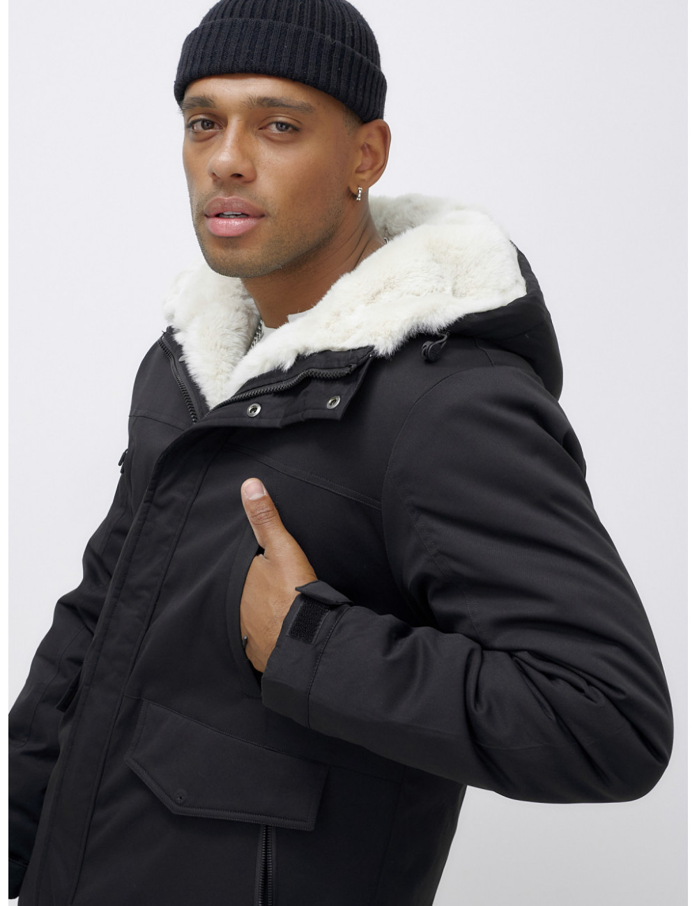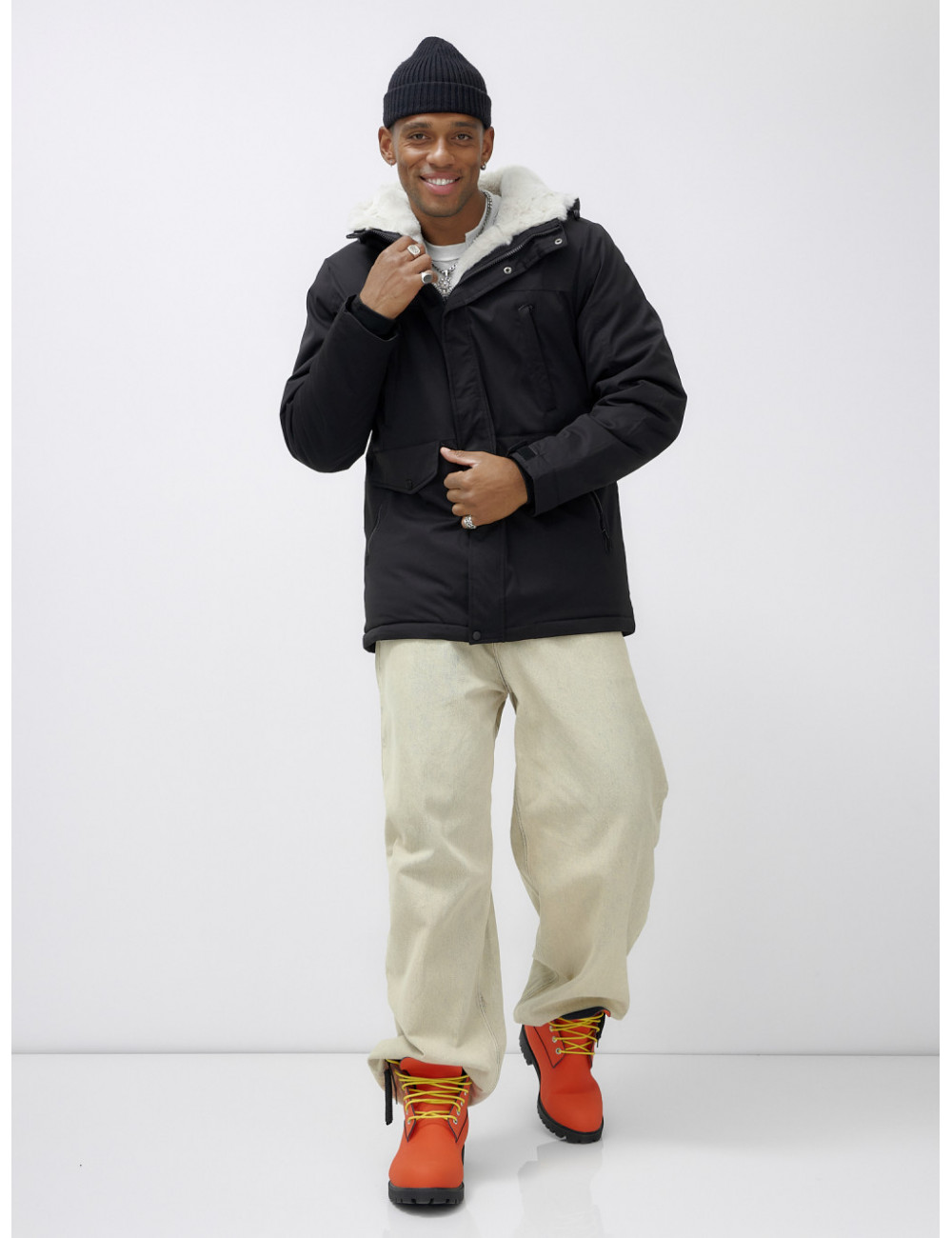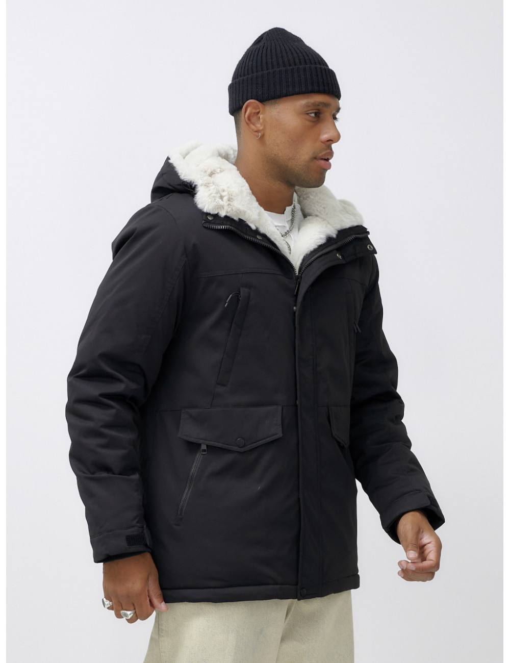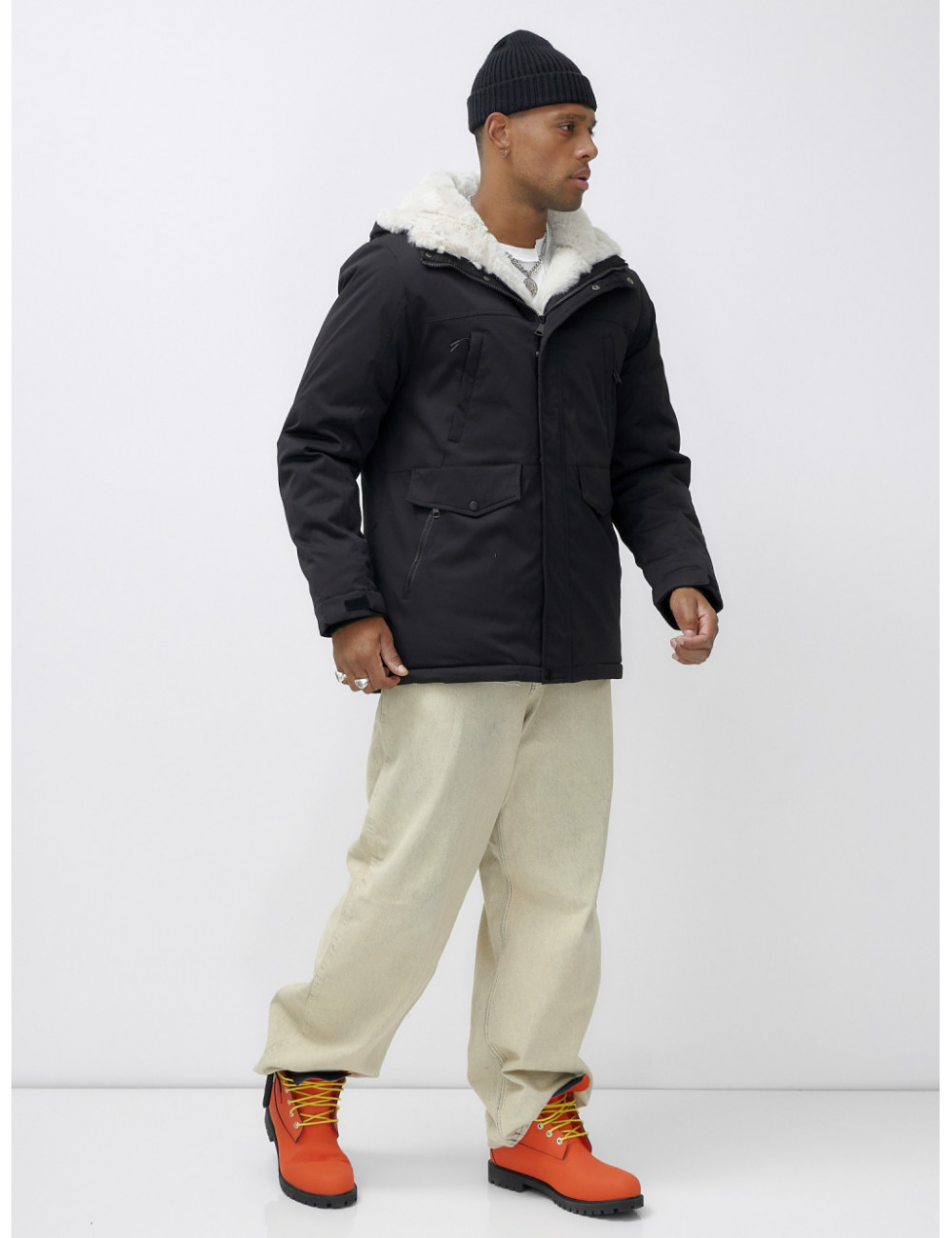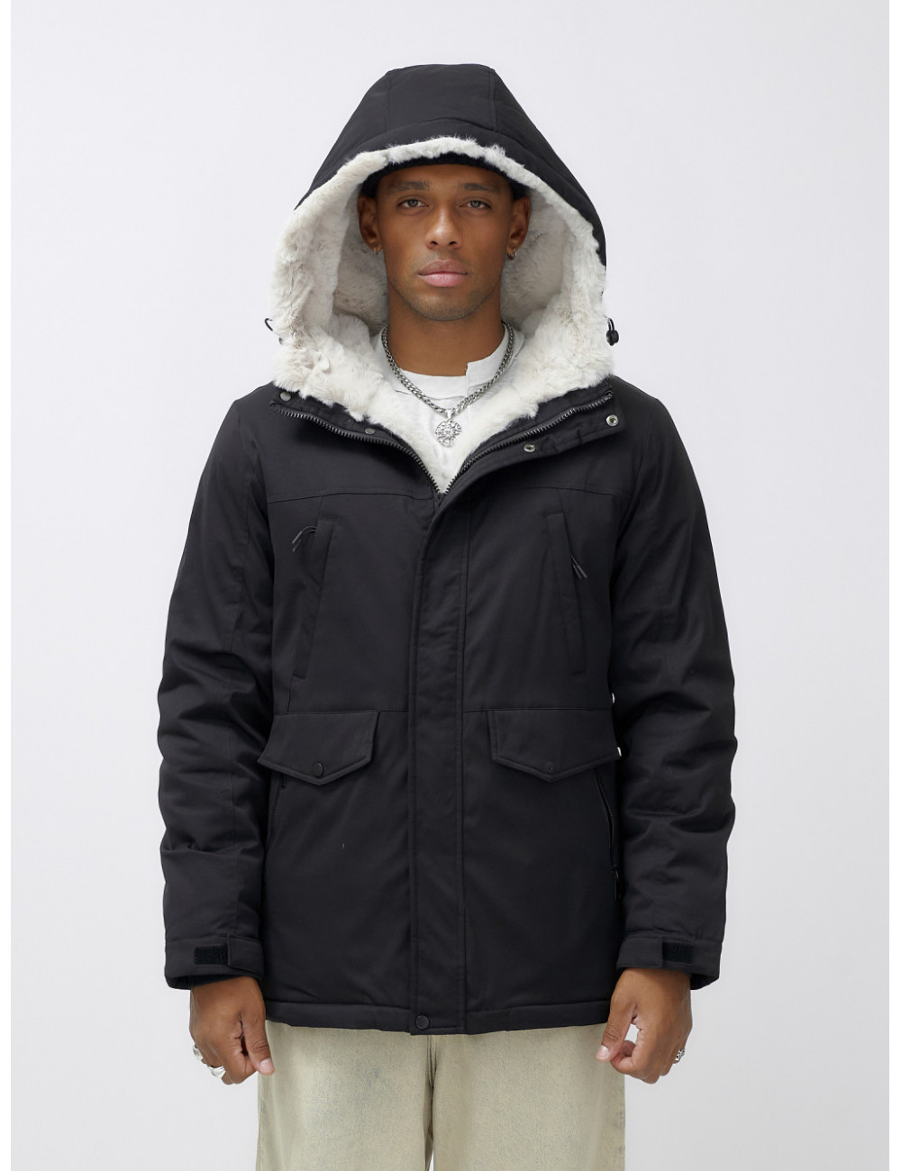 Доставка Мужская зимняя удлиненная парка с мехом, чёрная по Тюмени и Тюменской области СДЭК