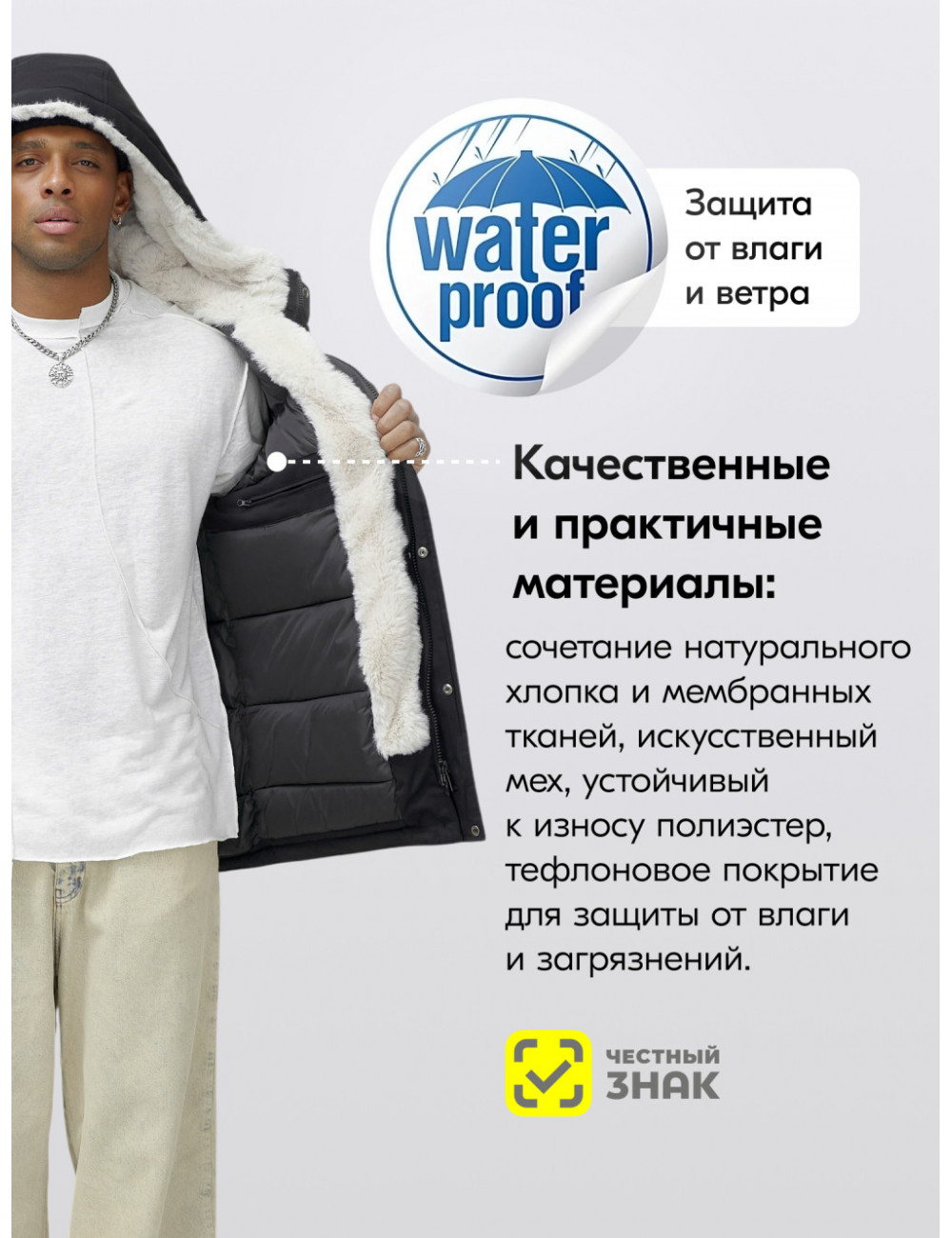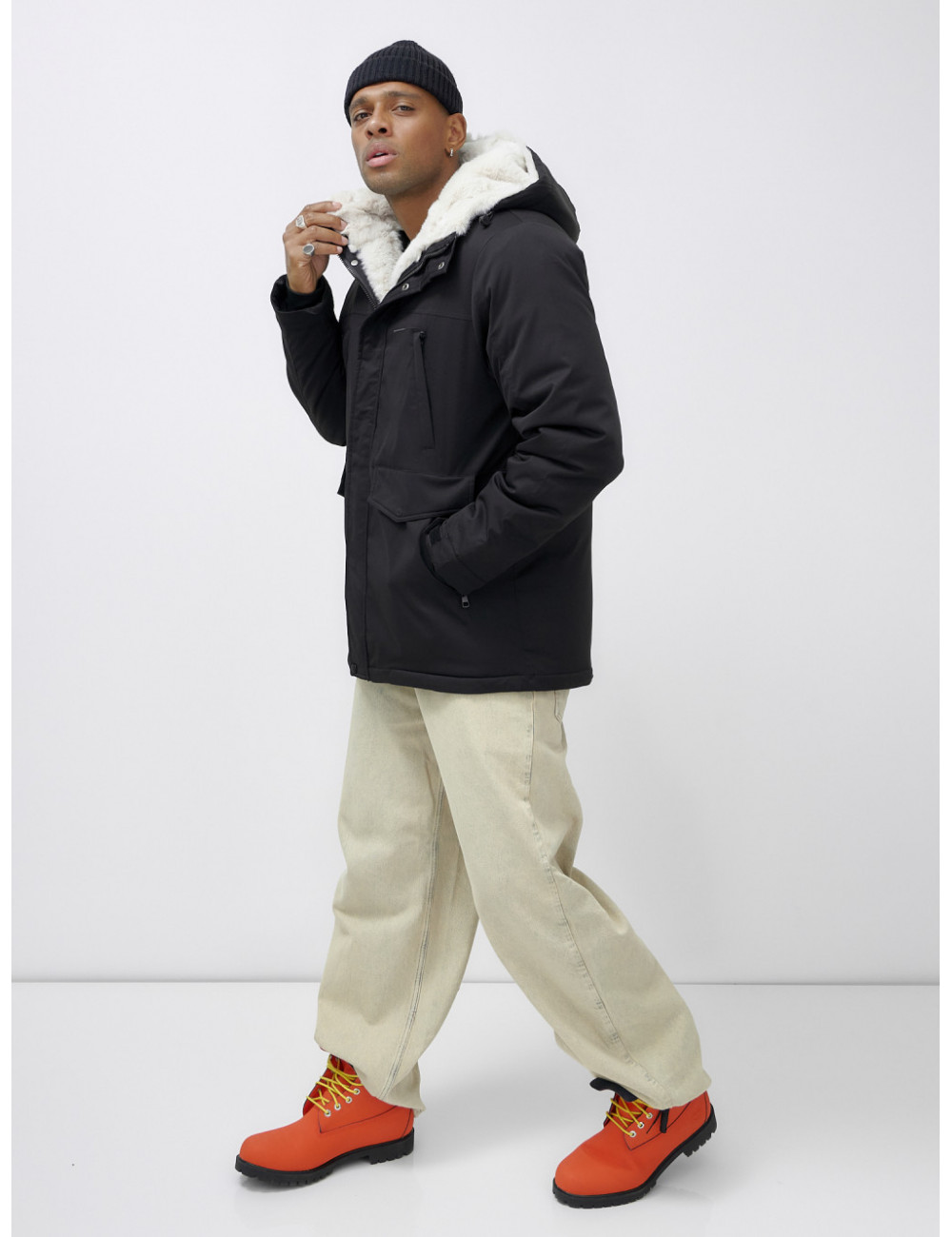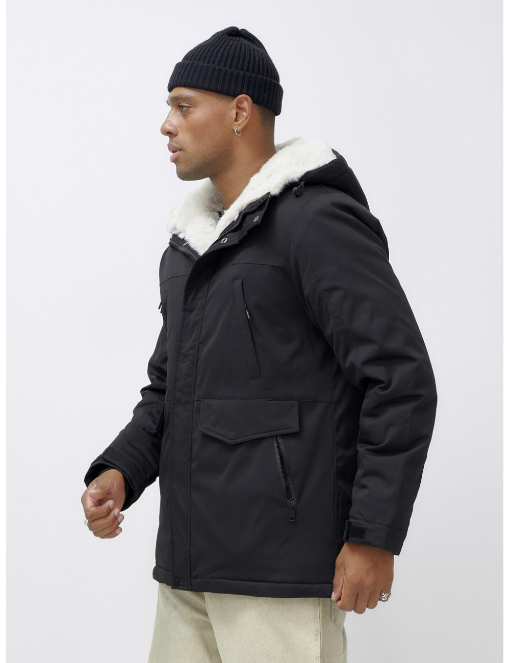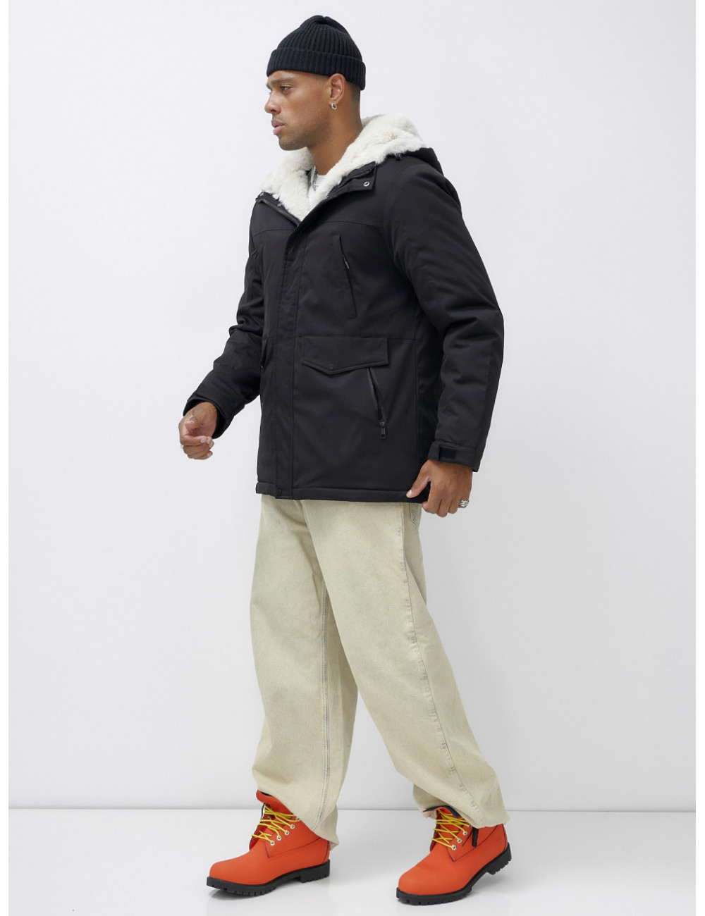 Доставка Мужская зимняя удлиненная парка с мехом, чёрная по Тюмени и Тюменской области СДЭК