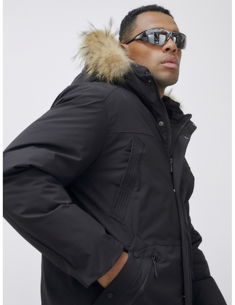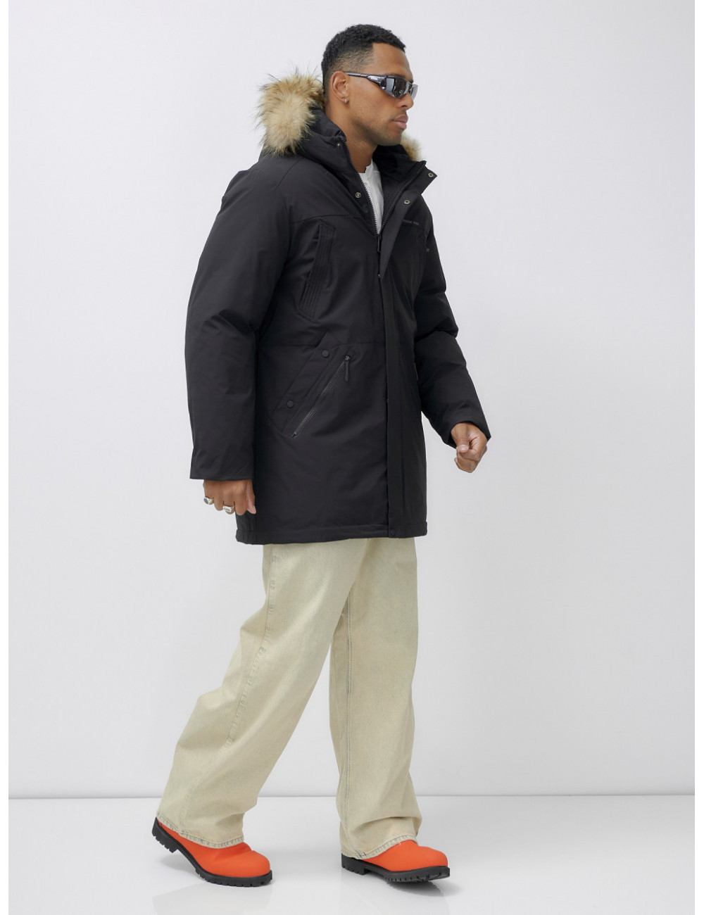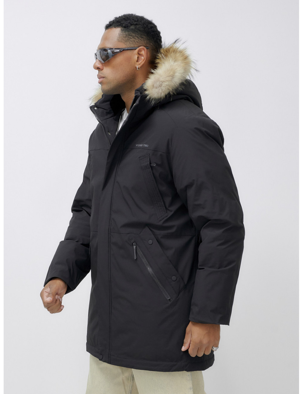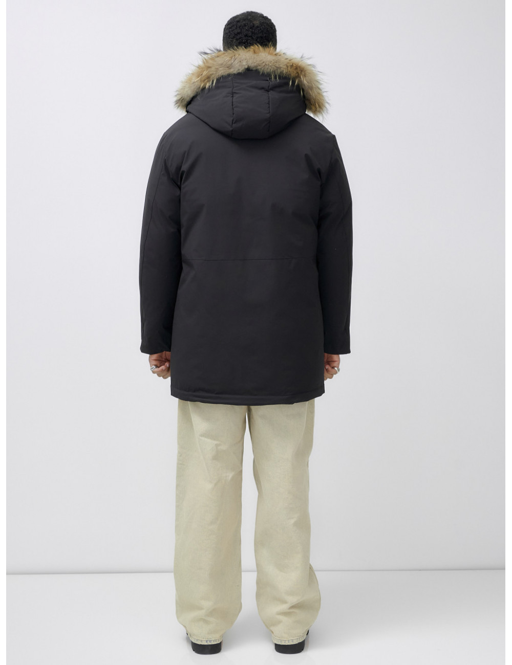Доставка Мужская зимняя удлиненная парка с мехом, чёрная, для активного отдыха по Тюмени и Тюменской области СДЭК
