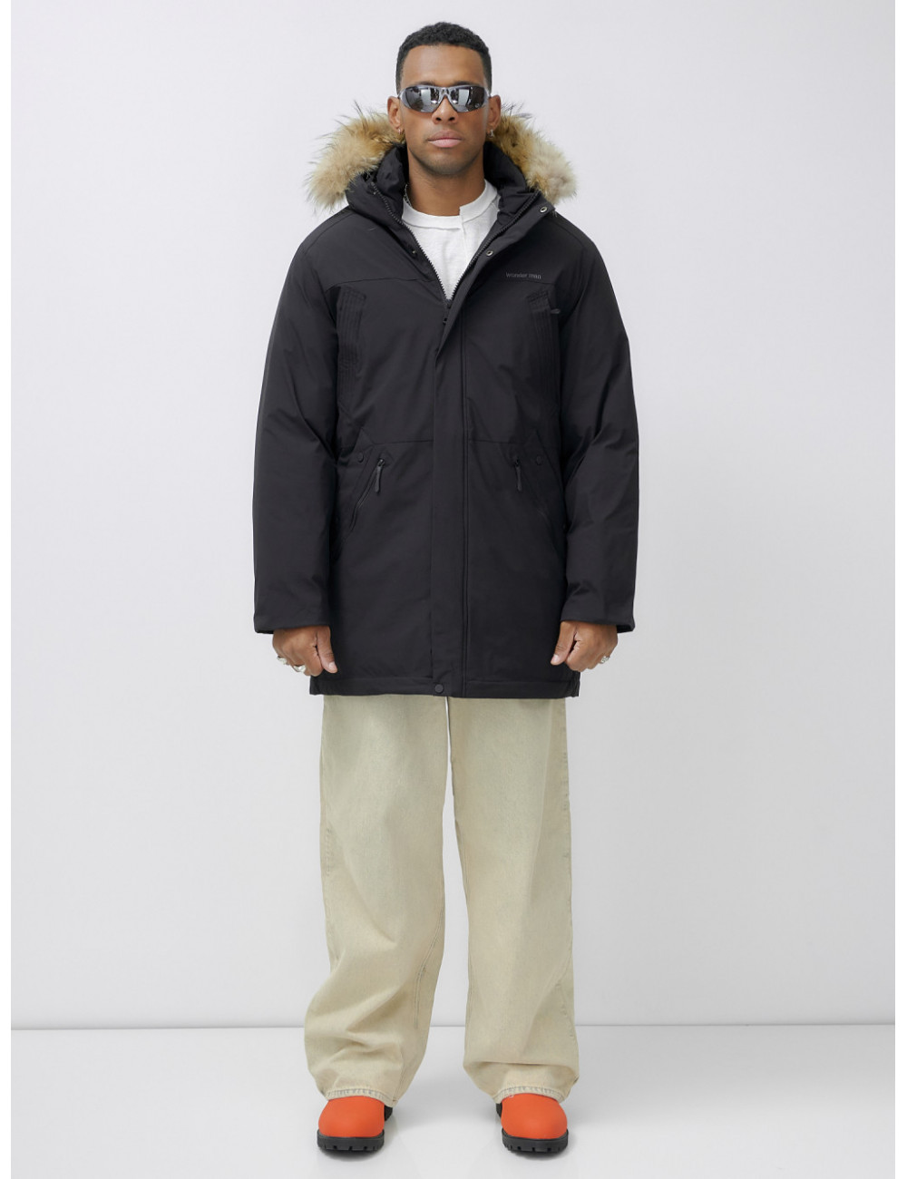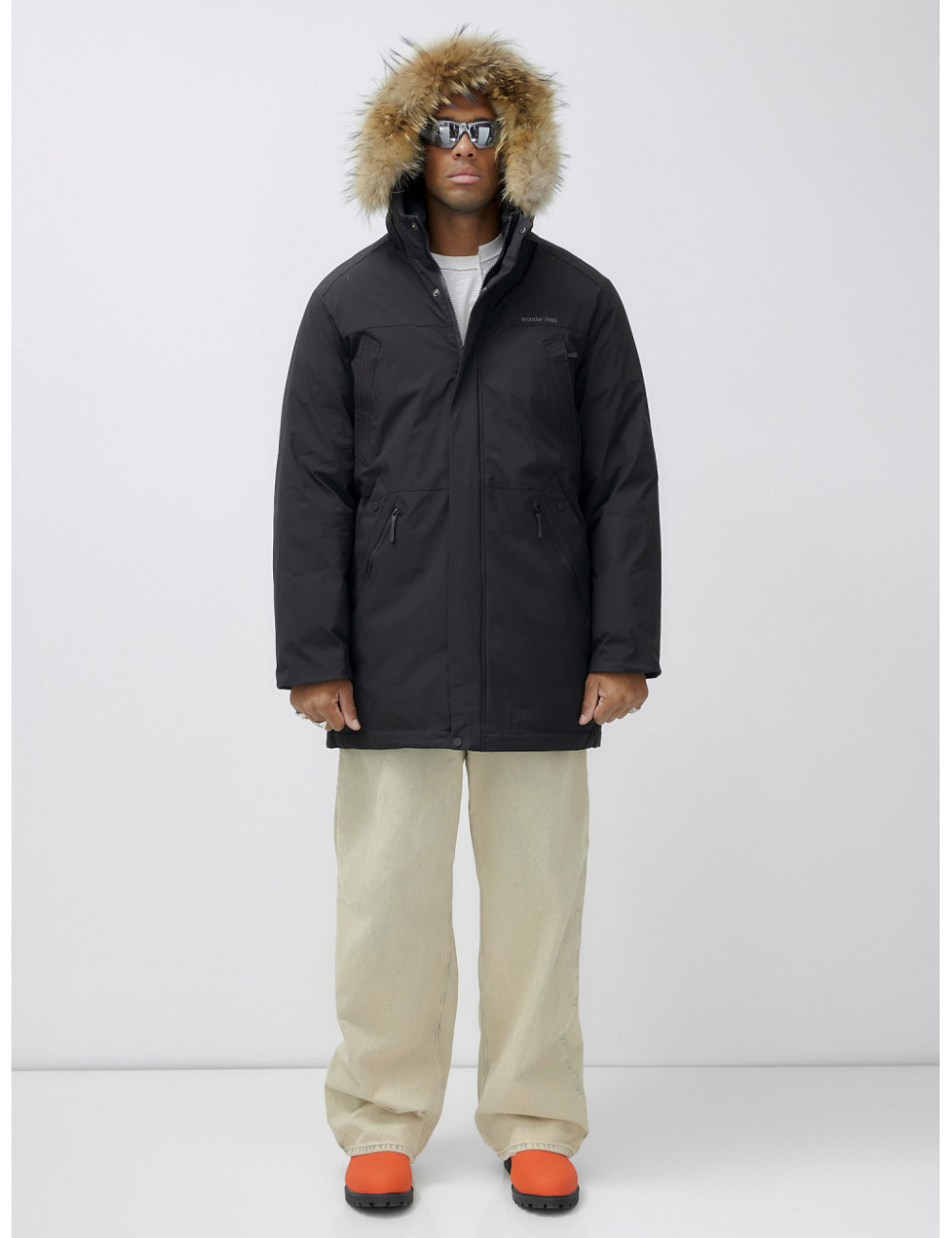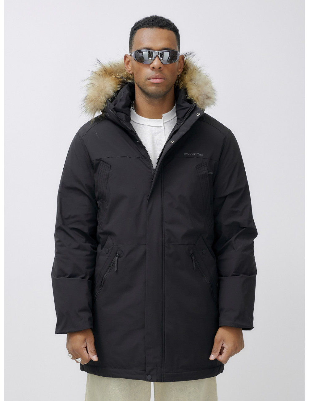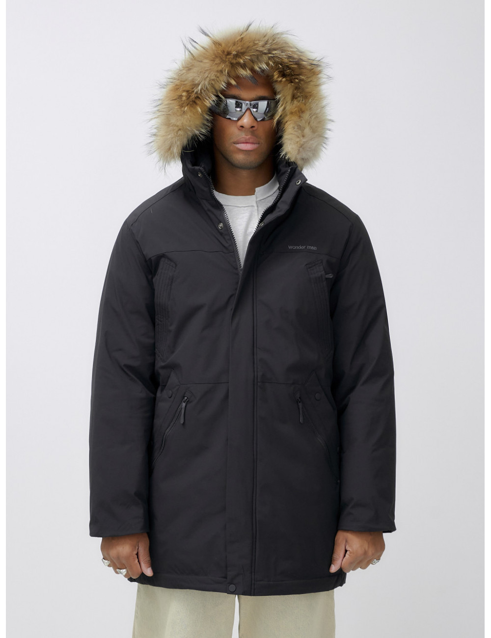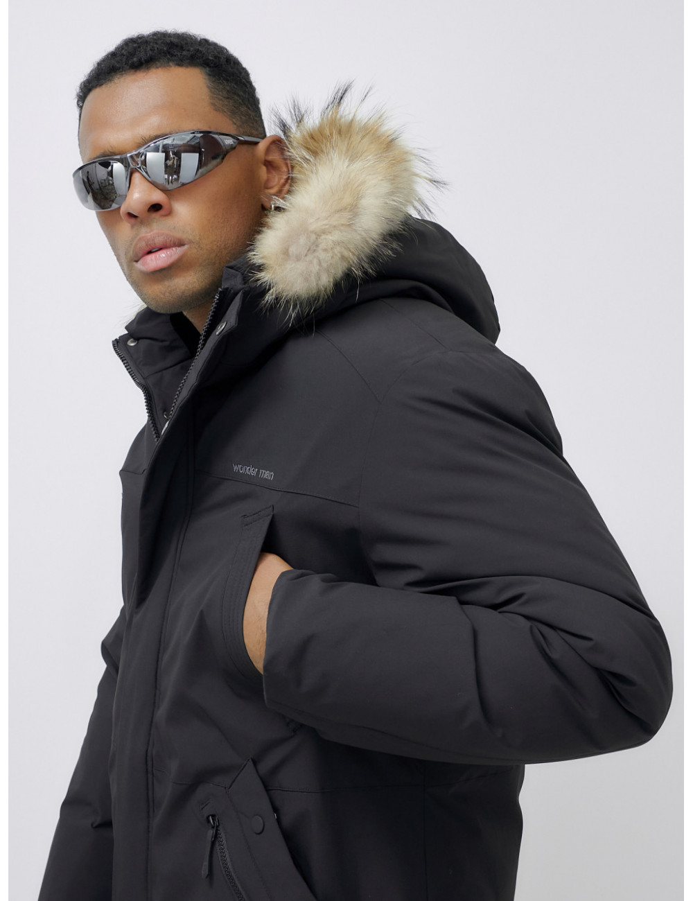 Доставка Мужская зимняя удлиненная парка с мехом, чёрная, для активного отдыха по Тюмени и Тюменской области СДЭК