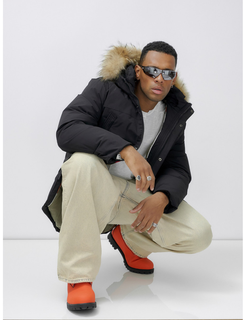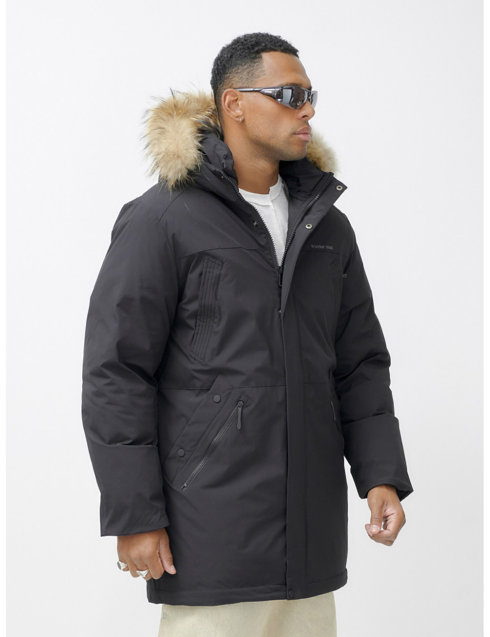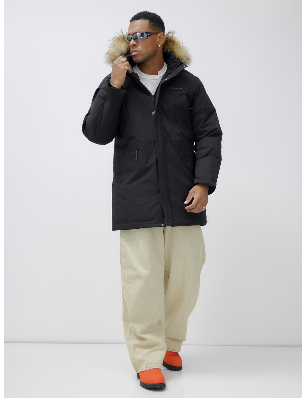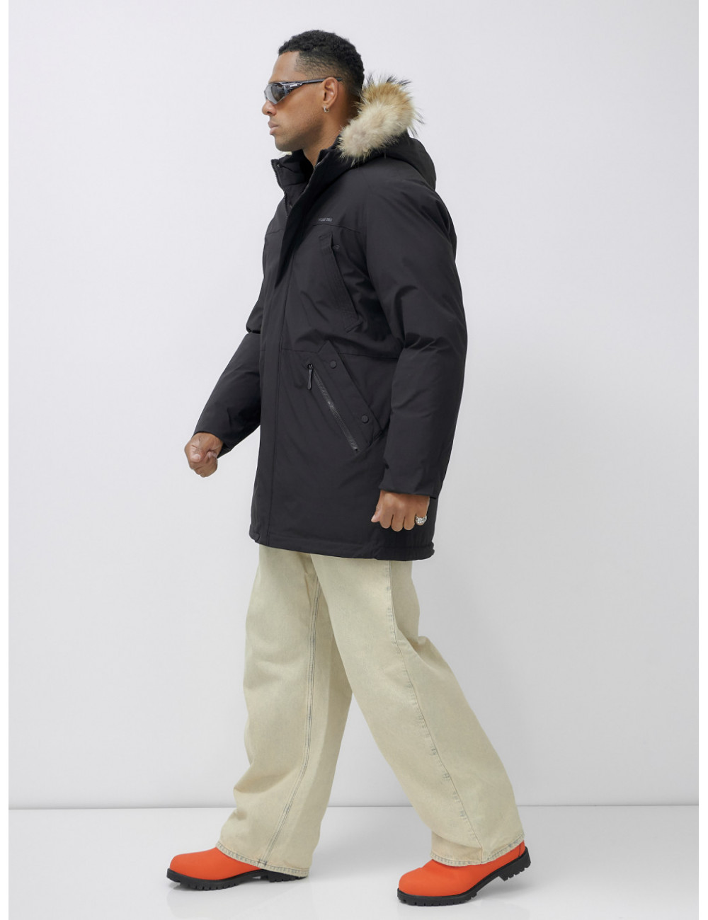 Доставка Мужская зимняя удлиненная парка с мехом, чёрная, для активного отдыха по Тюмени и Тюменской области СДЭК