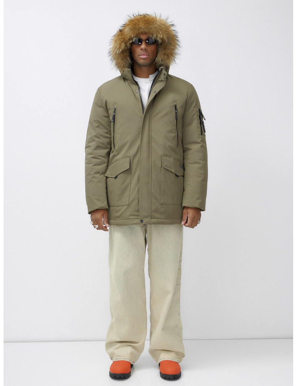 Доставка Мужская зимняя парка с мехом, бежевая, удлинённая. по Тюмени и Тюменской области СДЭК