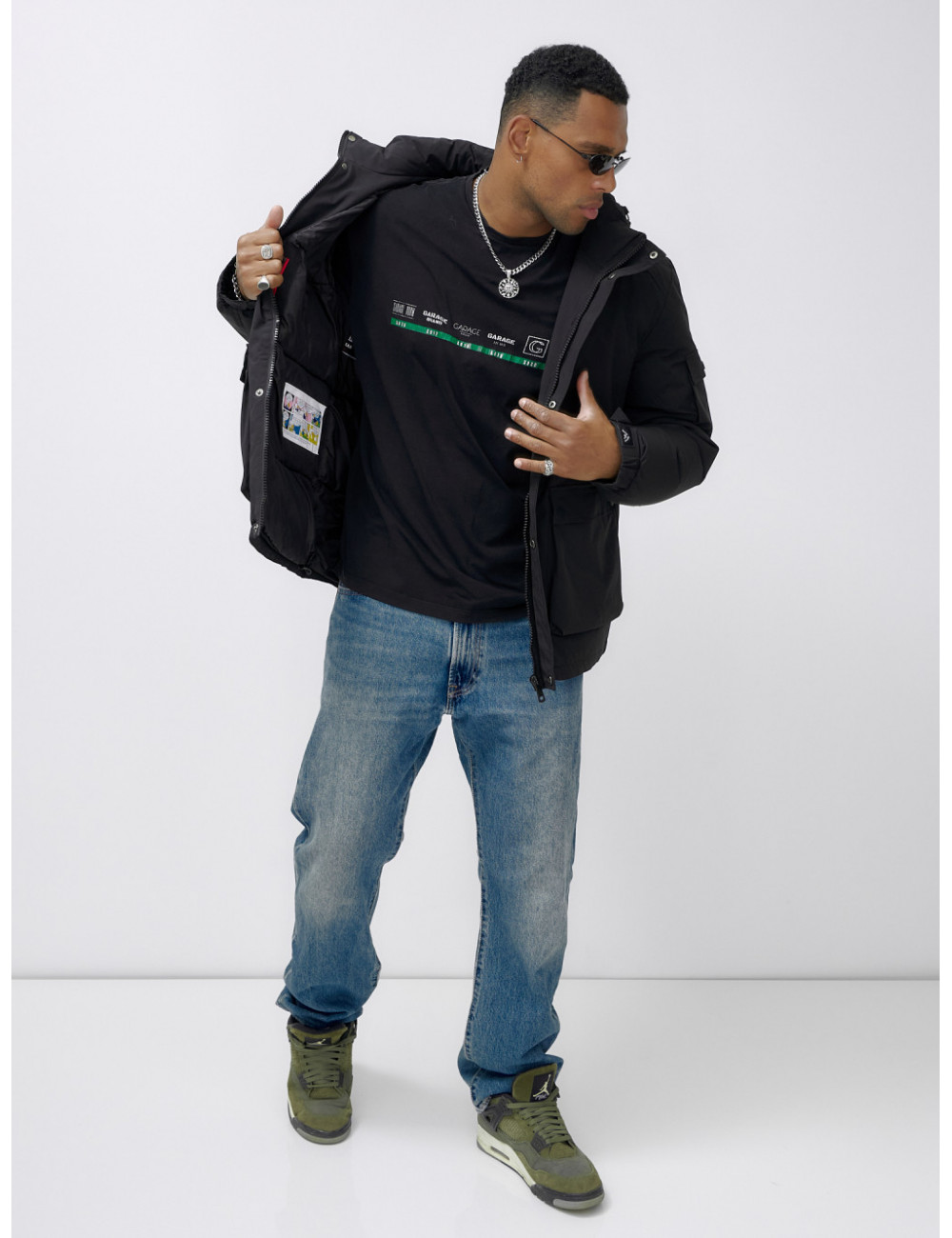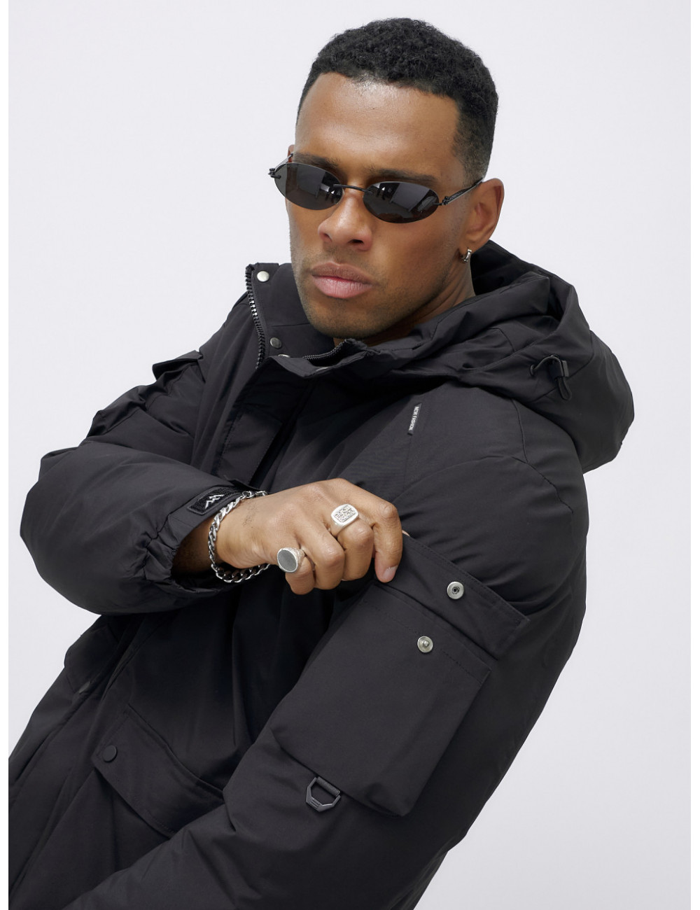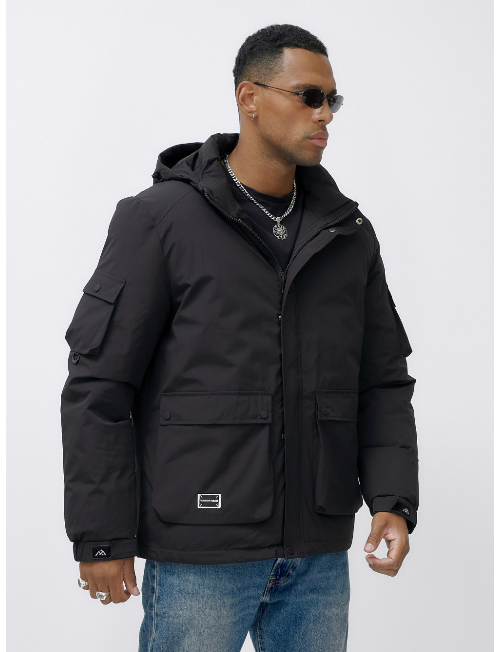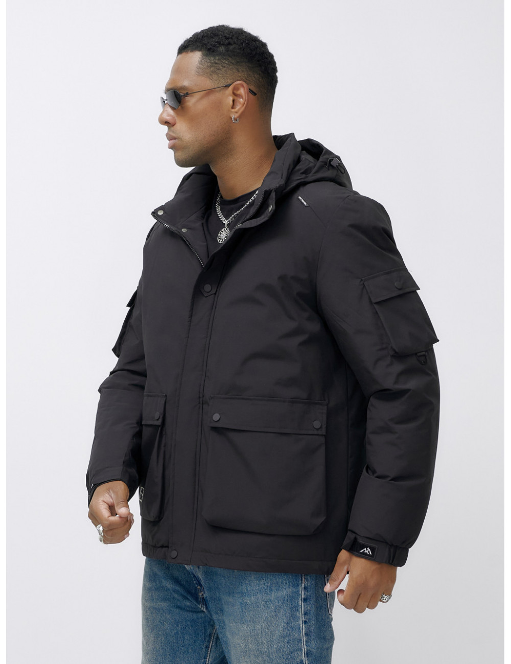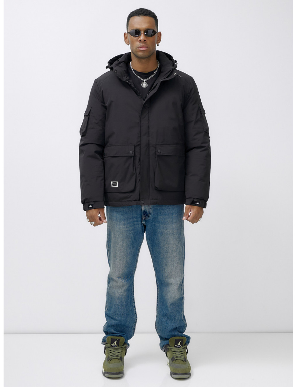 Мужская зимняя куртка гармонично сочетается с различными элементами гардероба. Её можно комбинировать с джинсами, брюками или спортивными штанами для создания стильного и комфортного образа. Доставка по Москве и Московской области Мужская зимняя спортивная куртка с капюшоном, чёрная.