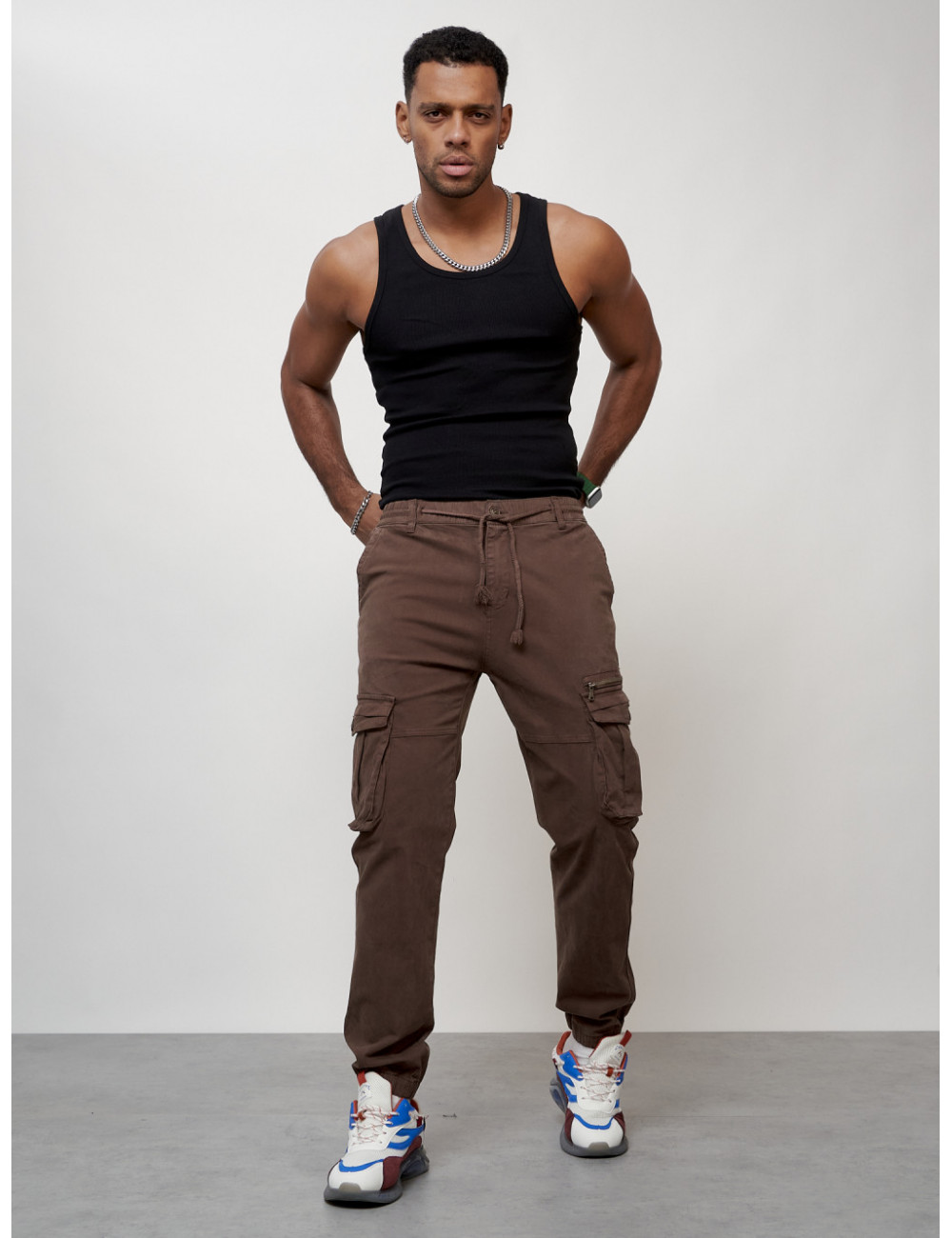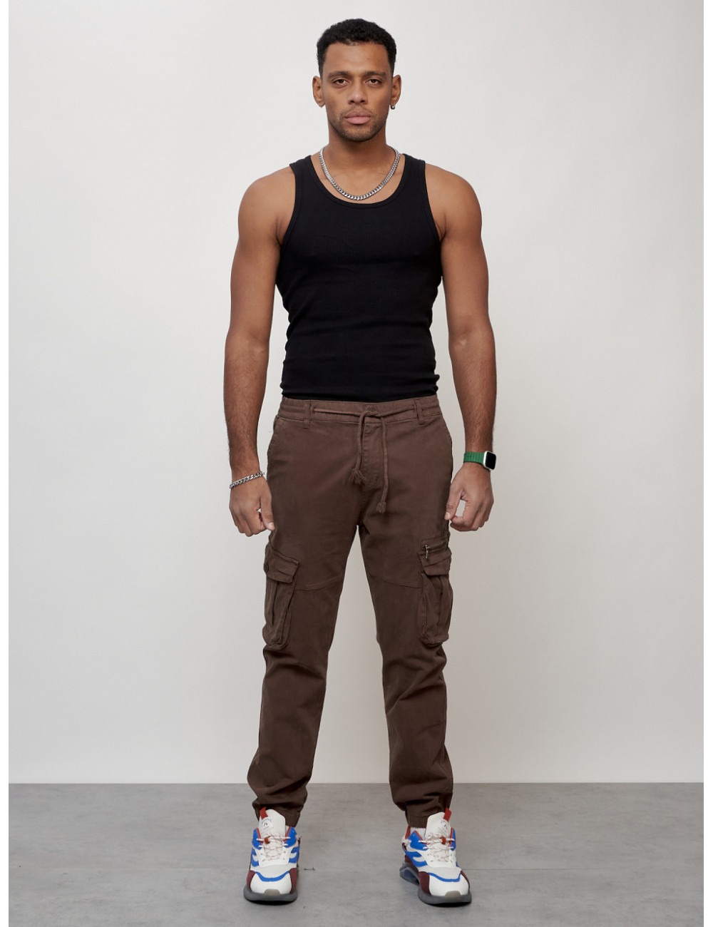 Доставка Мужские брюки карго коричневого цвета с накладными карманами по Тюмени и Тюменской области СДЭК