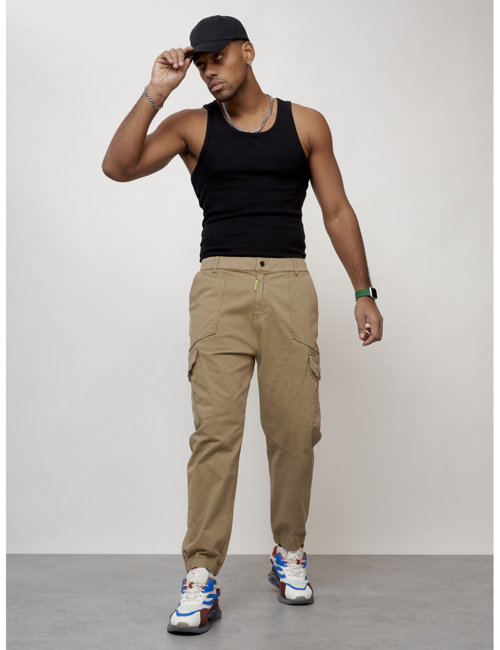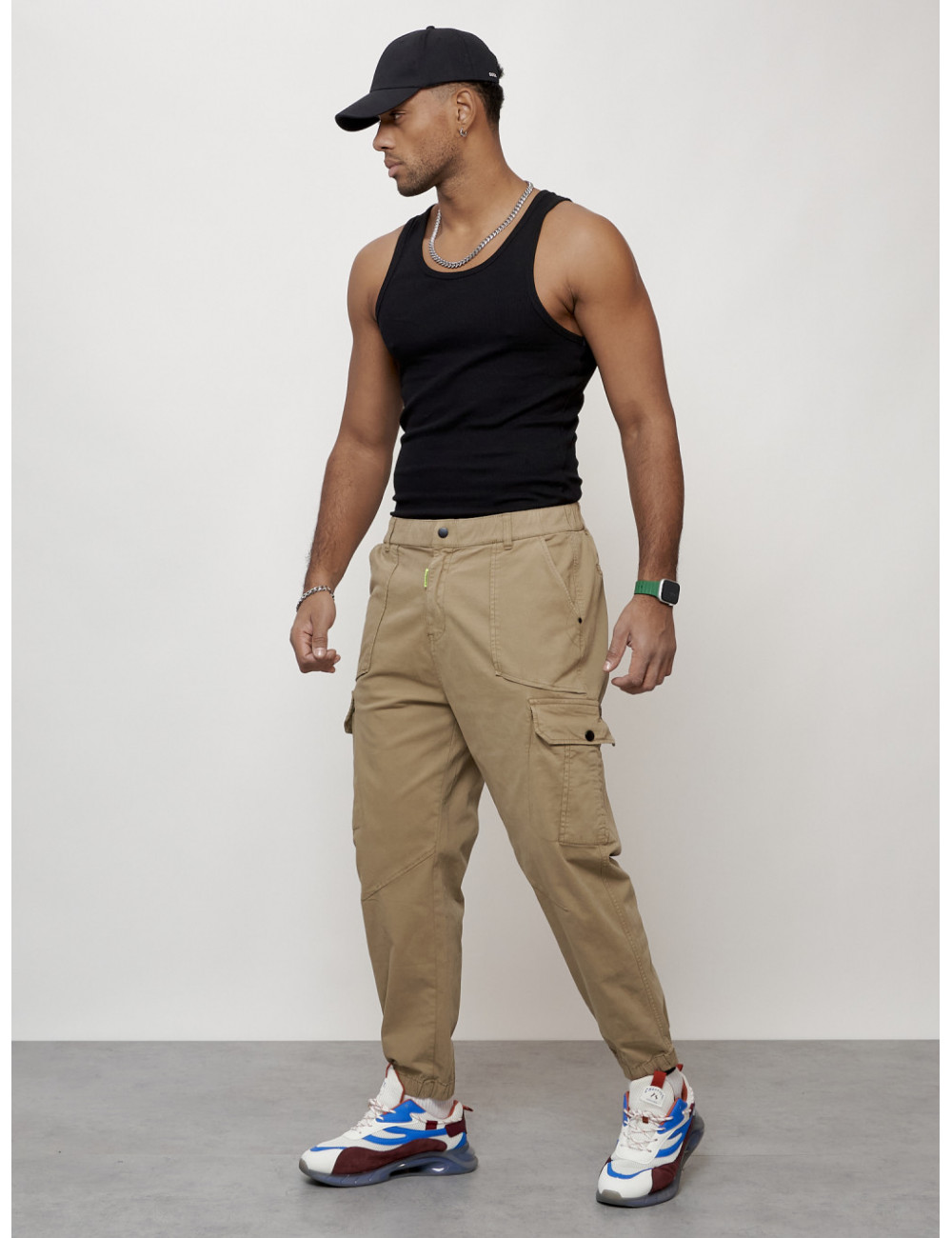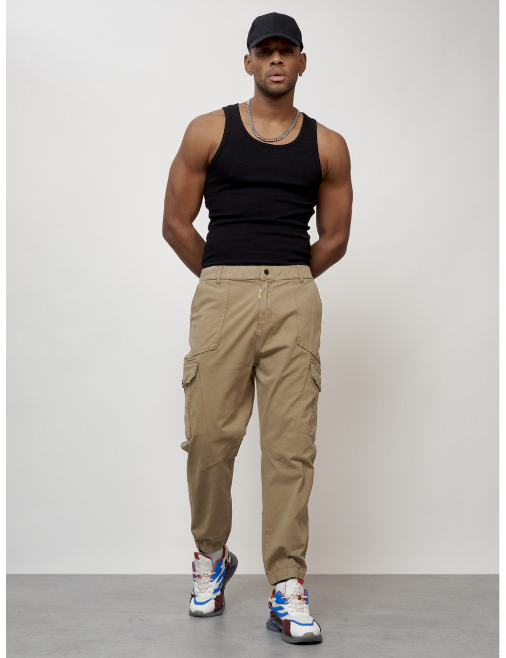 Доставка Мужские брюки карго с накладными карманами, бежевые по Тюмени и Тюменской области СДЭК