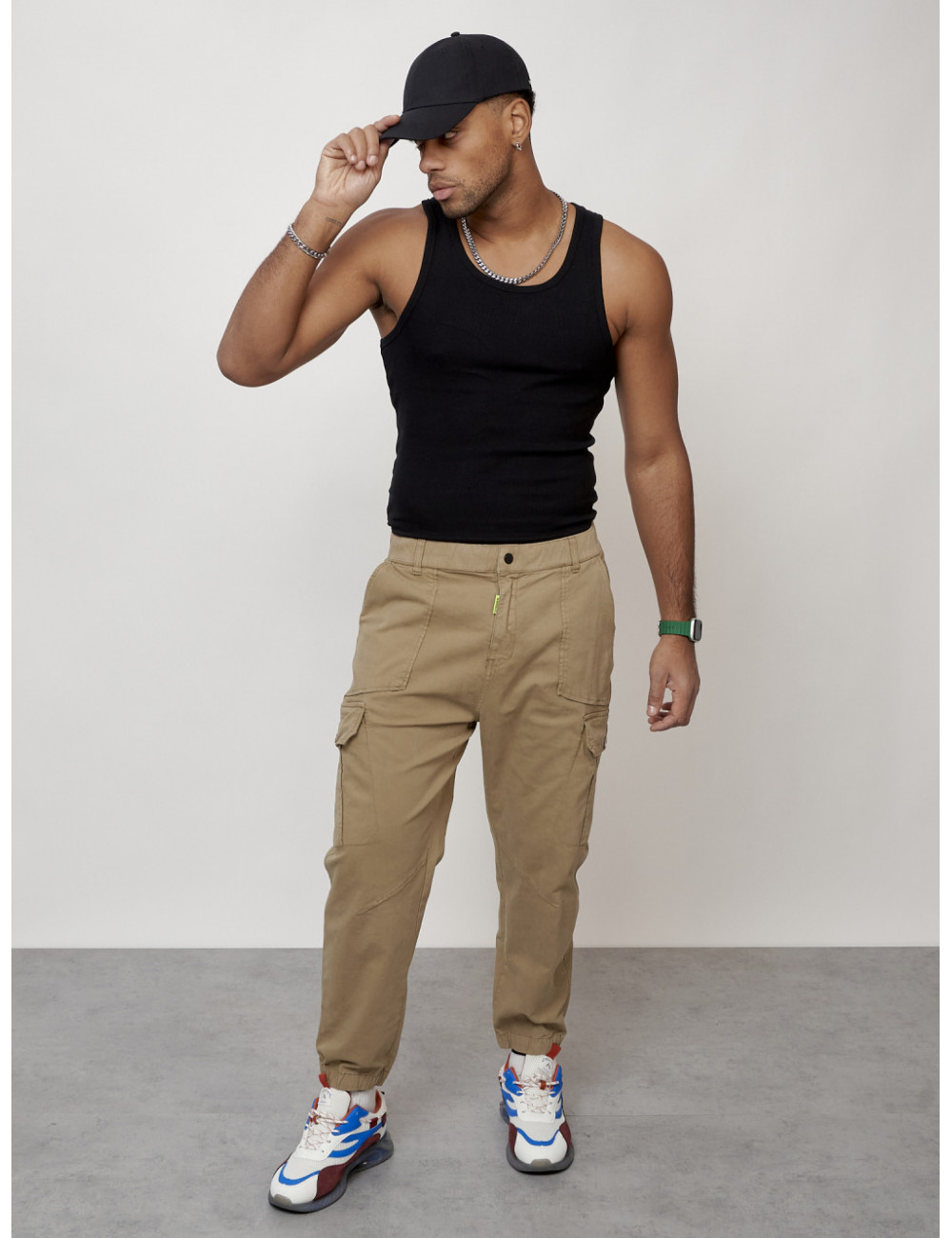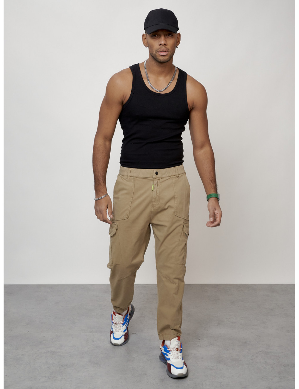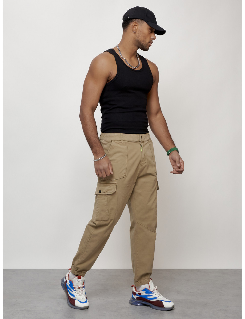 Доставка Мужские брюки карго с накладными карманами, бежевые по Тюмени и Тюменской области СДЭК