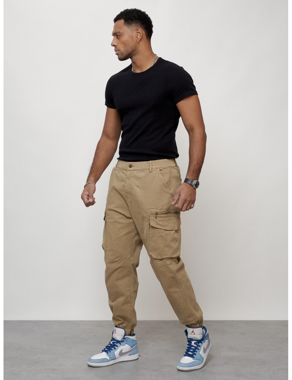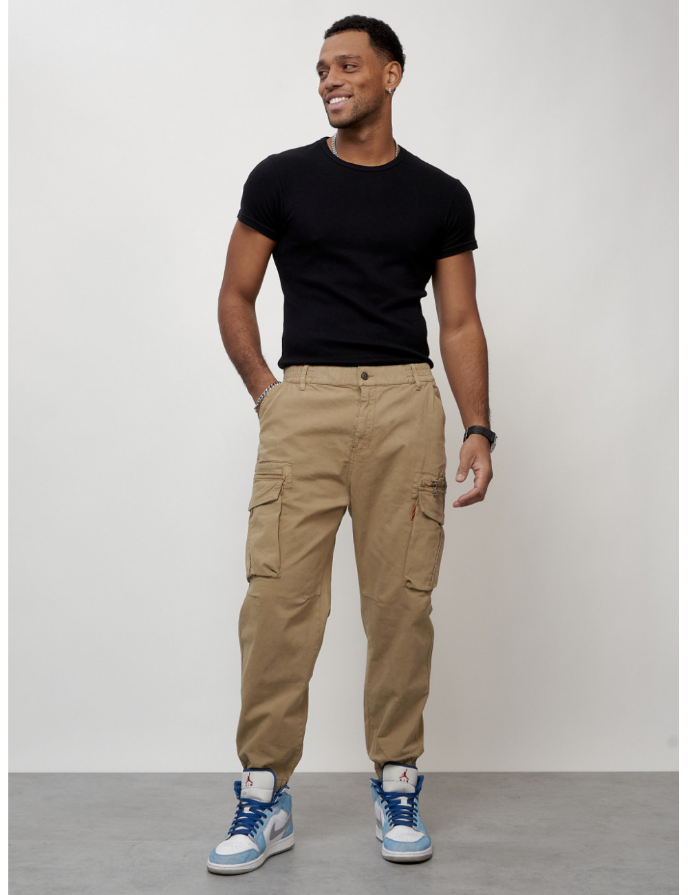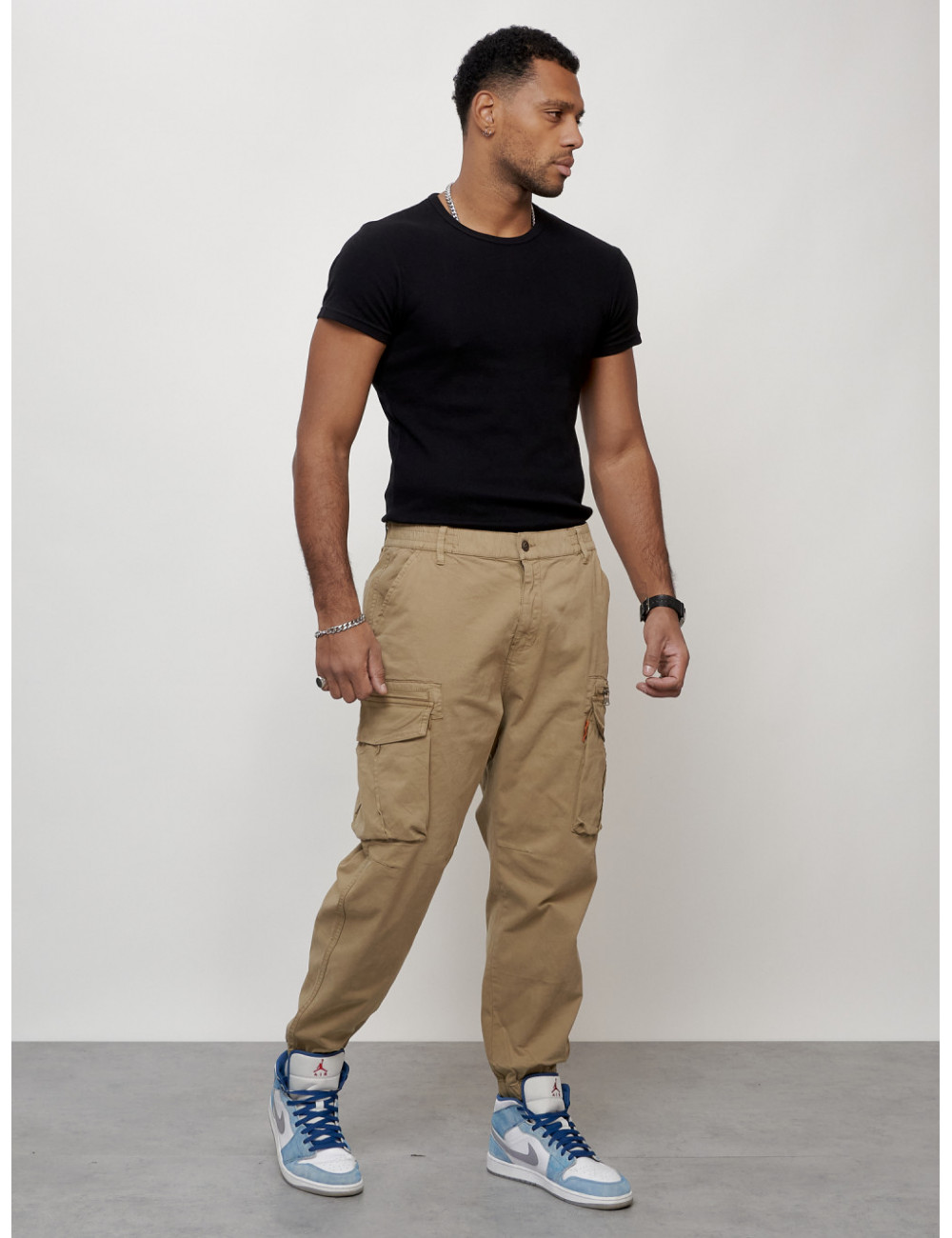 Доставка Мужские брюки карго с накладными карманами, бежевые по Тюмени и Тюменской области СДЭК