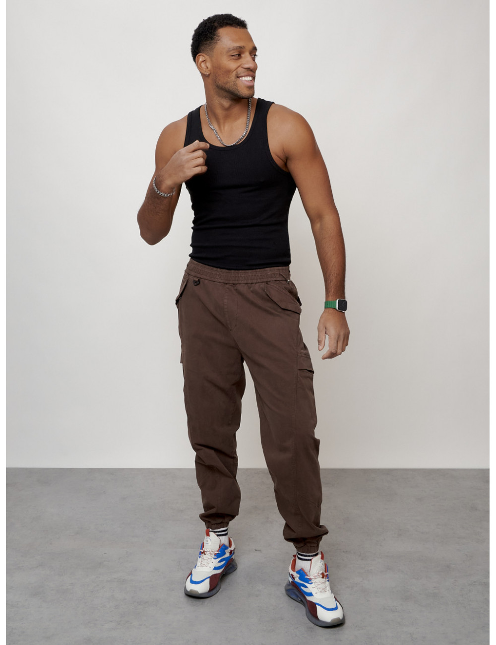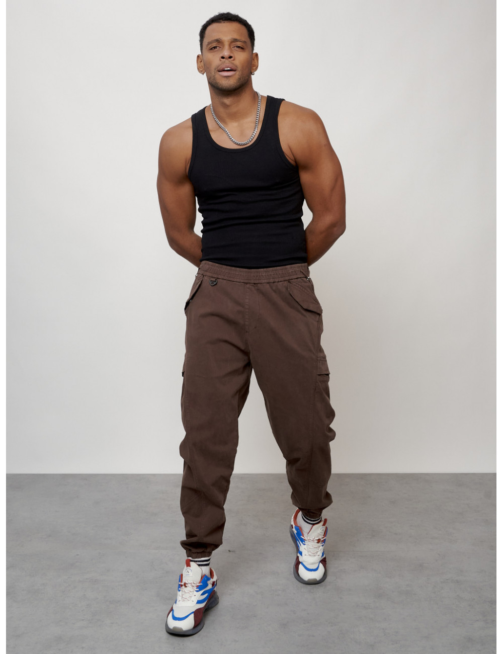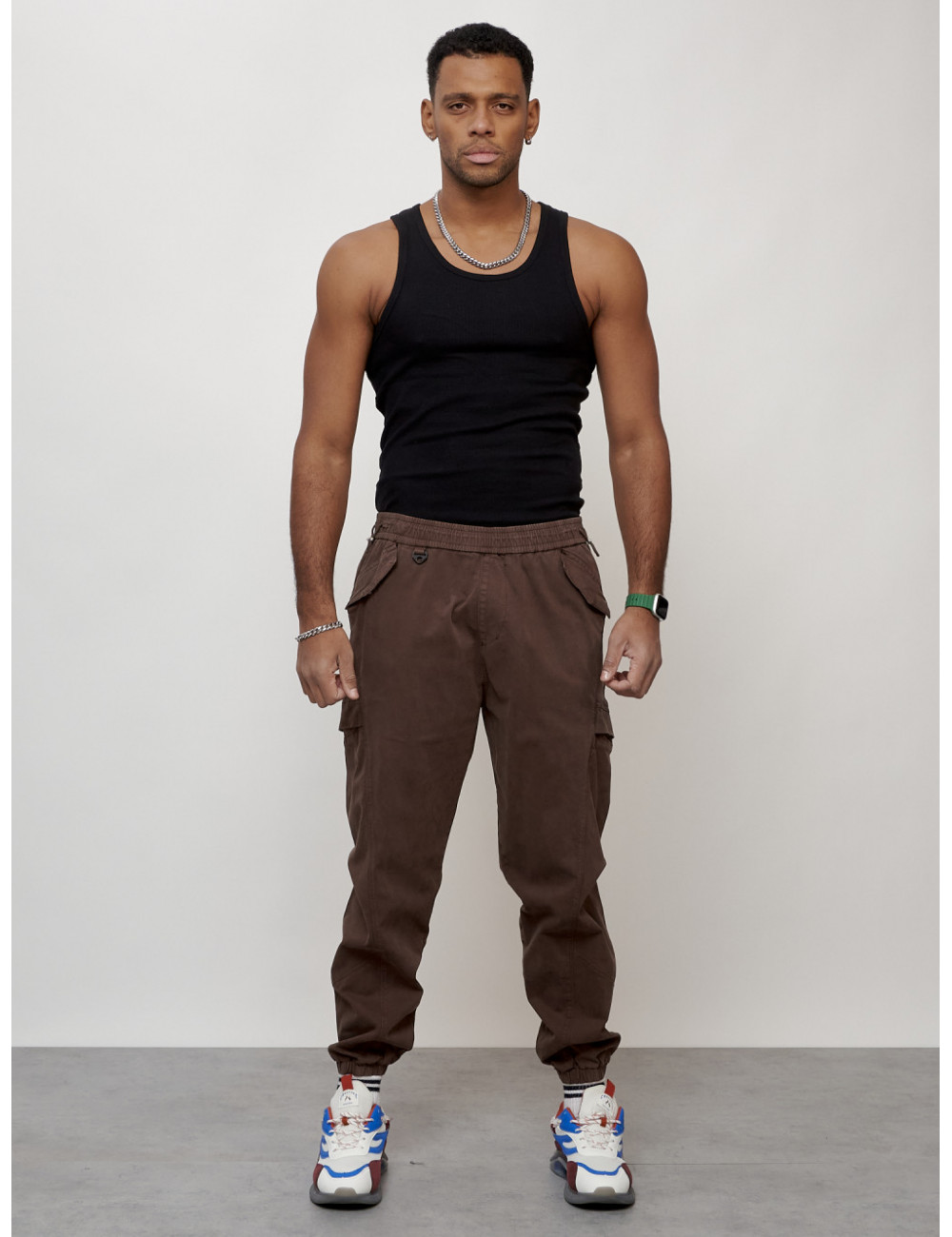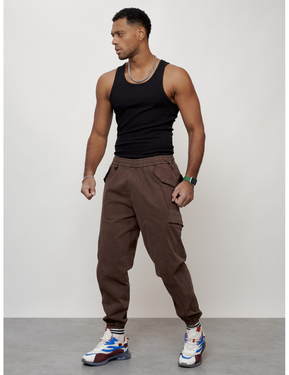 Доставка Мужские брюки карго с накладными карманами, коричневые по Тюмени и Тюменской области СДЭК