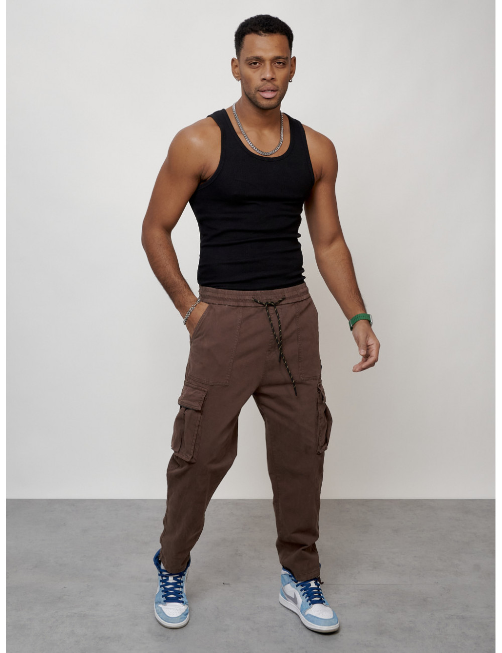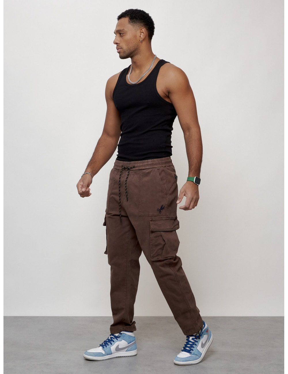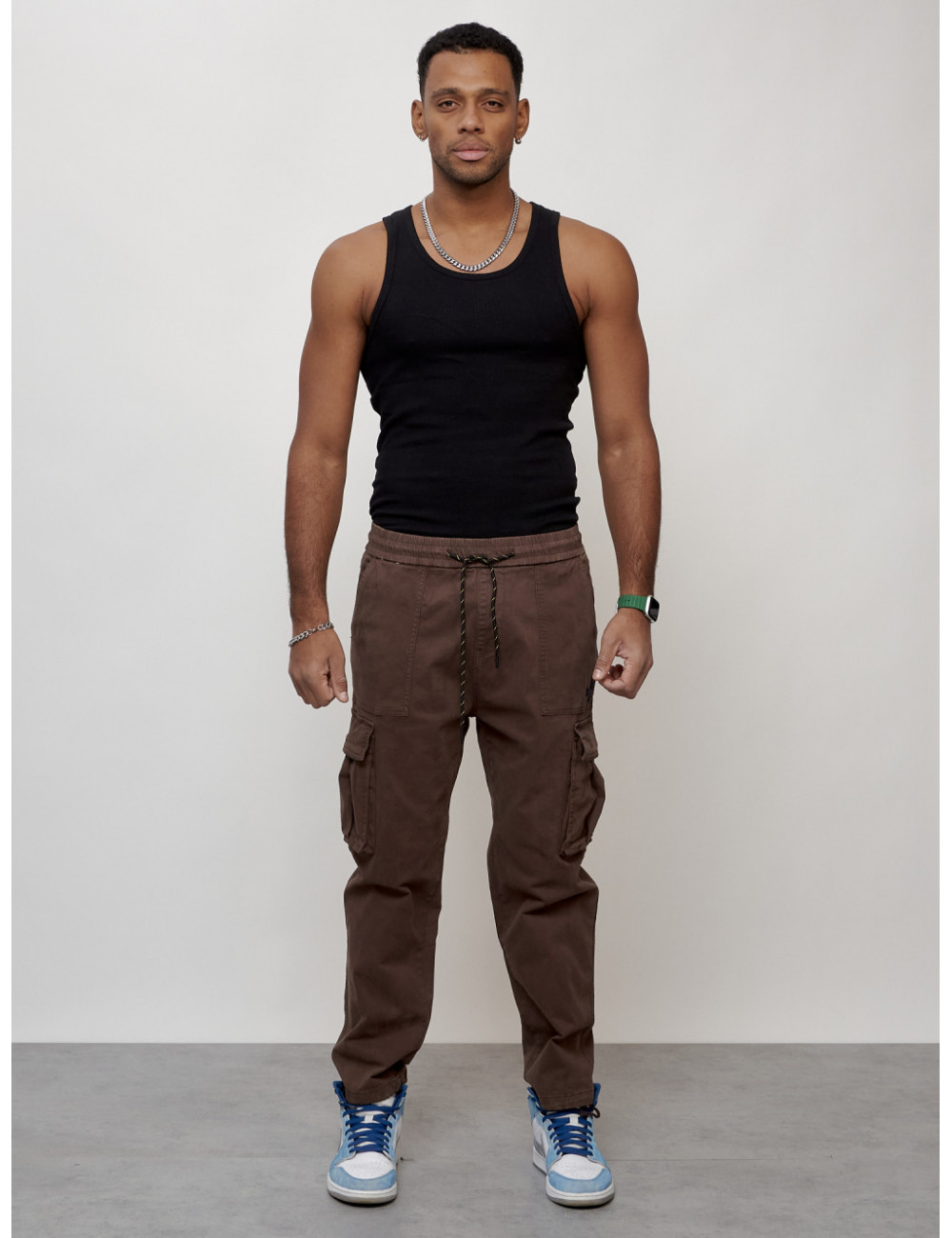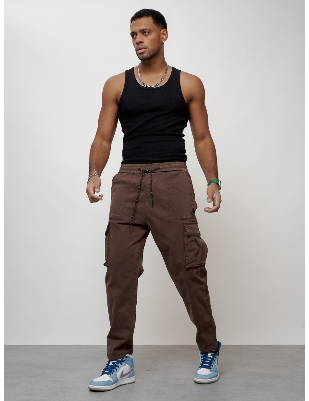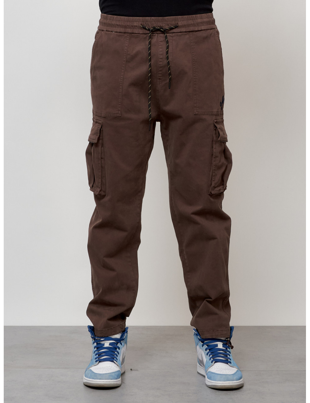Доставка Мужские брюки карго с накладными карманами, коричневый, для повседневной носки по Тюмени и Тюменской области СДЭК