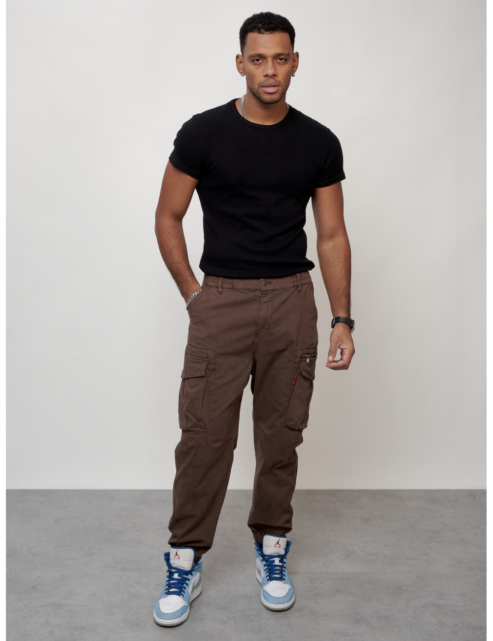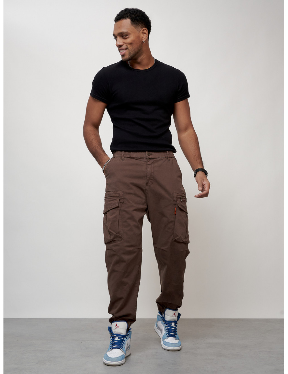 Доставка Мужские брюки карго с накладными карманами, коричневые по Тюмени и Тюменской области СДЭК