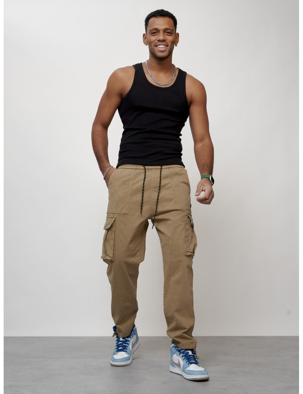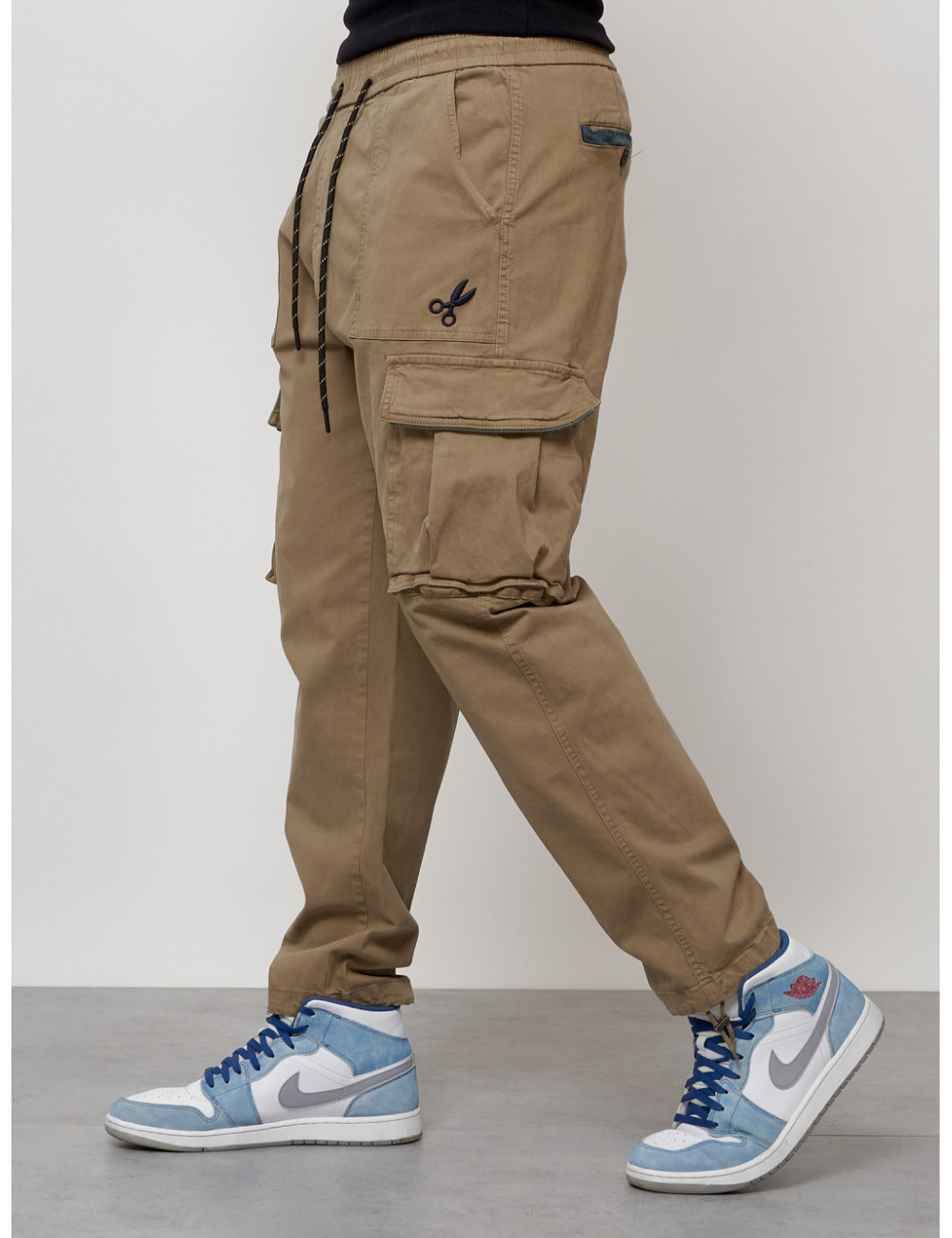 Доставка Мужские брюки карго с накладными карманами, бежевые по Тюмени и Тюменской области СДЭК
