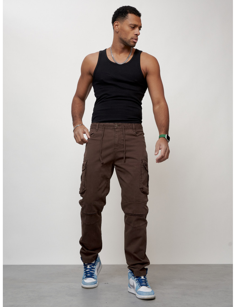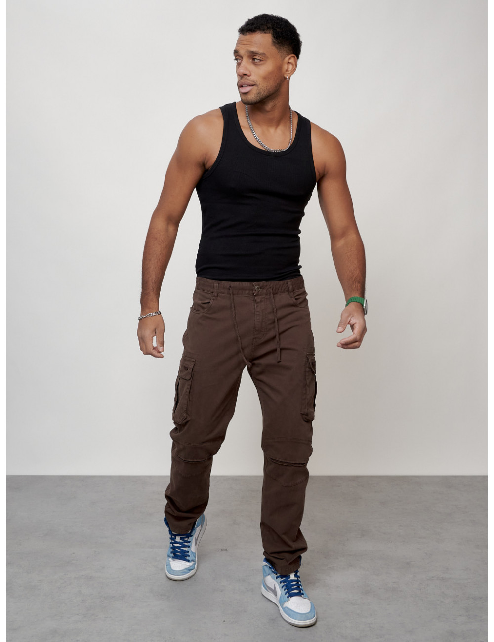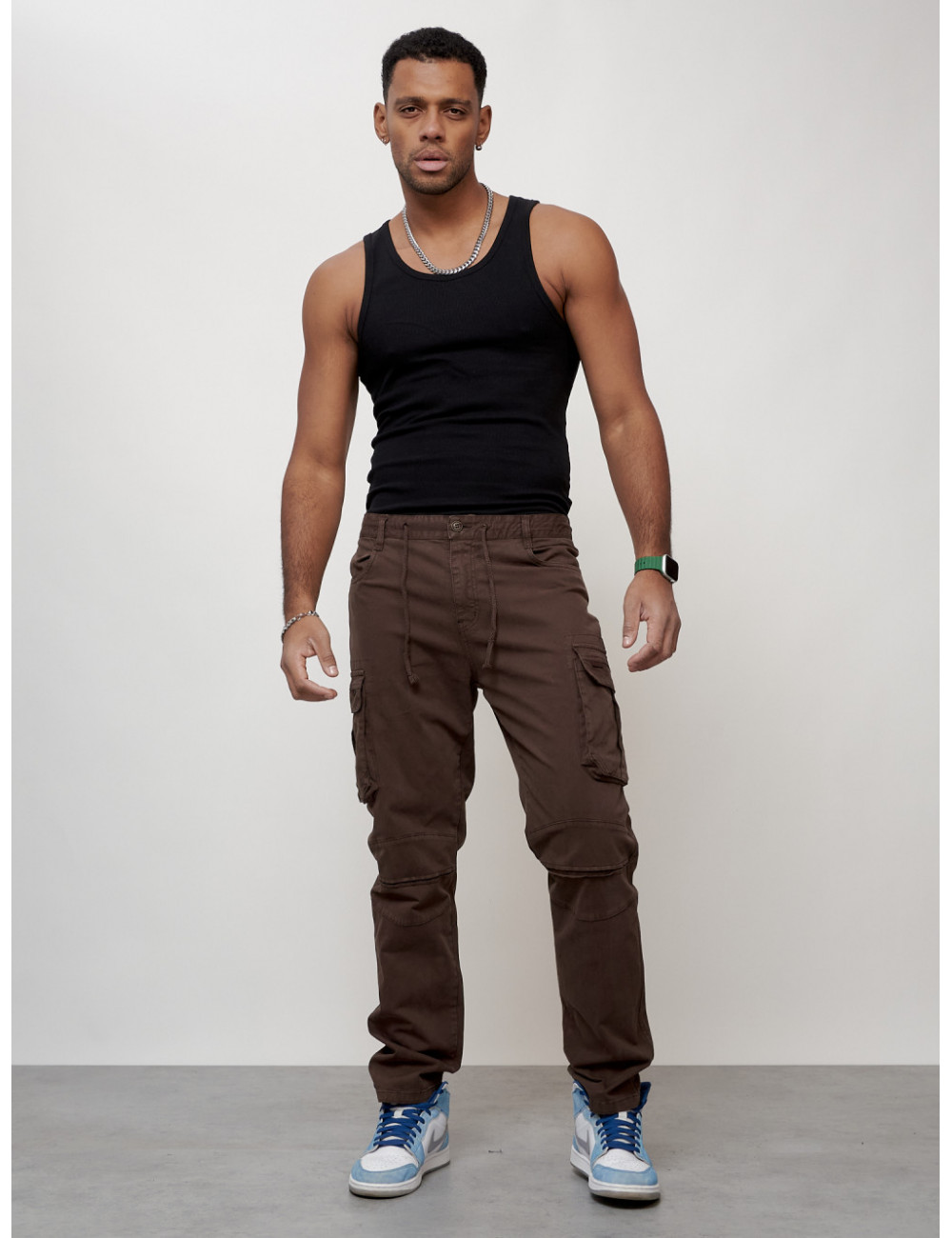 Перед использованием рекомендуется отпарить брюки. Соблюдайте рекомендации по уходу, указанные на внутренней бирке изделия, чтобы брюки радовали вас долгое время. Доставка по Москве и Московской области Мужские джинсы карго коричневого цвета.