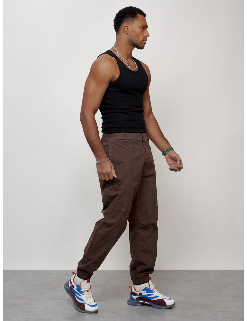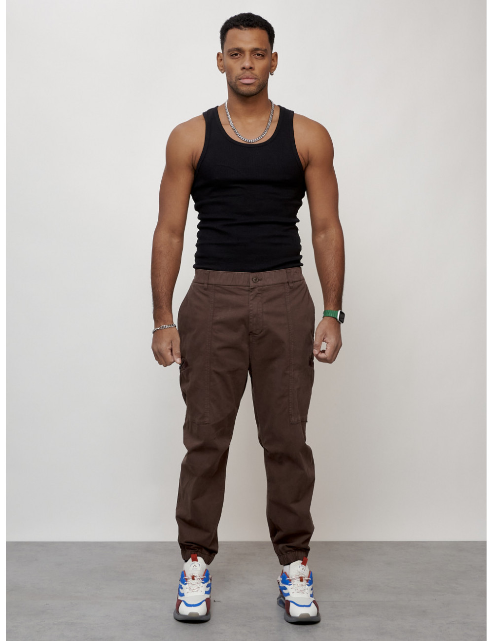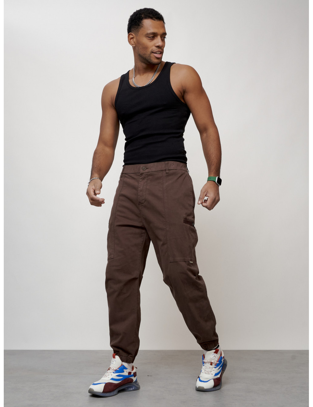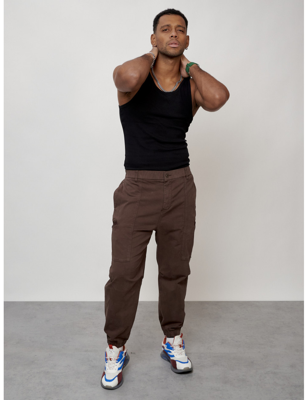 Наслаждайтесь комфортом и стилем с мужскими джинсовыми джоггерами! Доставка по Москве и Московской области Мужские джинсы карго коричневого цвета с накладными карманами