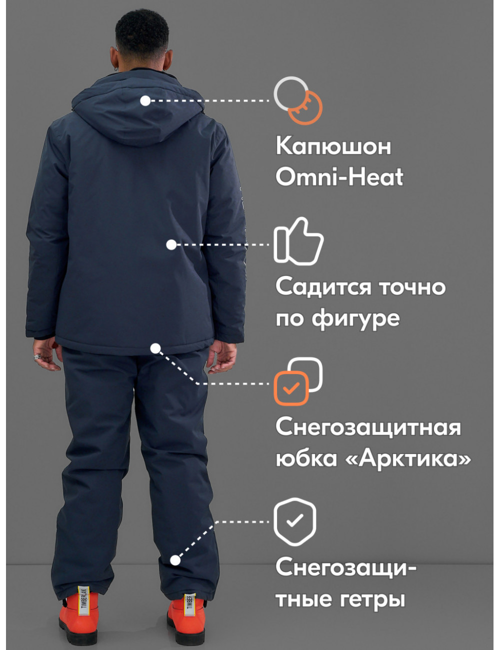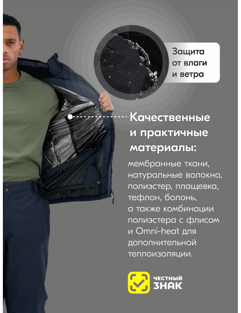 - Защита: ветрозащитная и водоотталкивающая мембрана защищает от непогоды, а снегозащитные элементы предотвращают попадание снега внутрь.