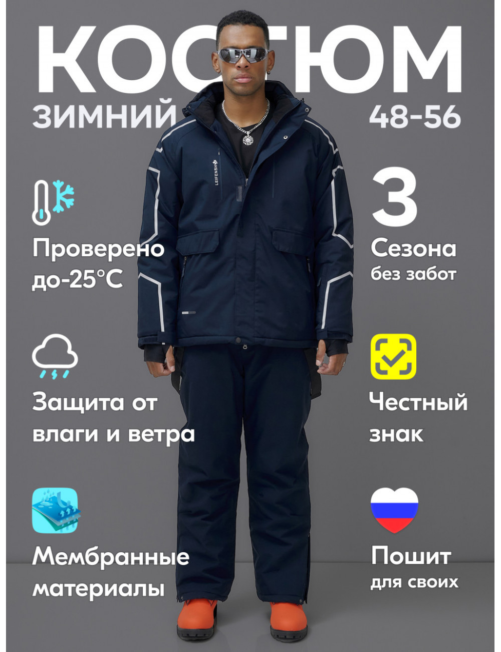 Выбирайте горнолыжный костюм от Ketsi для незабываемых зимних приключений! Доставка Мужской зимний горнолыжный костюм тёмно-синего цвета для спорта по Тюмени и Тюменской области СДЭК