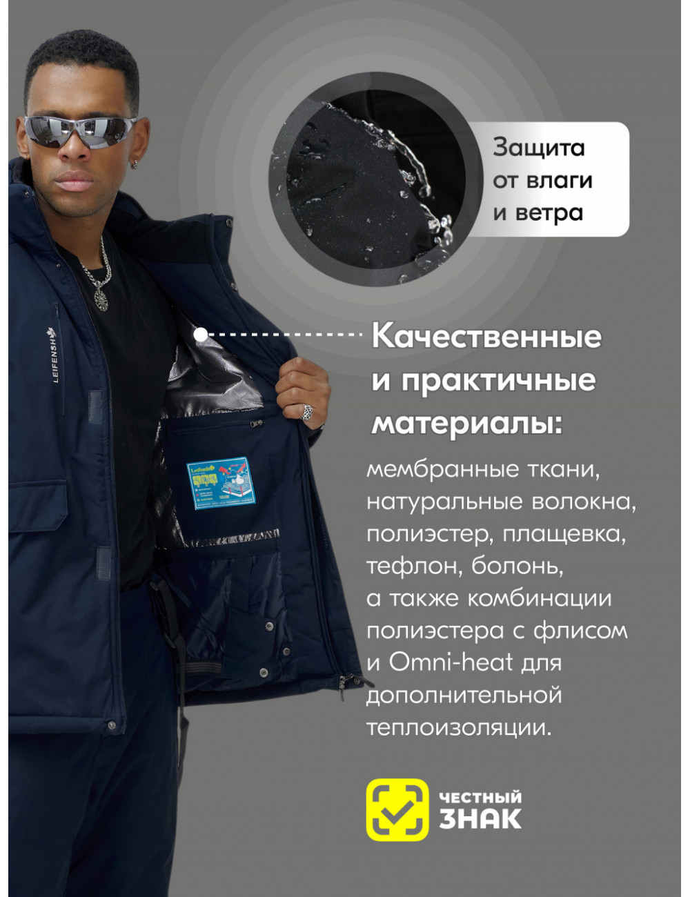 Куртка оснащена светоотражающими элементами, которые обеспечивают видимость даже в тёмное время суток. Съёмный ветрозащитный капюшон с утеплённой подкладкой из омни-хит защищает от холода и ветра.