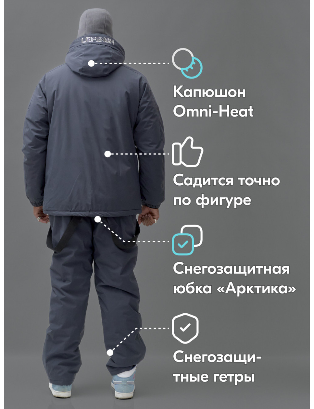 - Удобство и функциональность — продуманный дизайн и множество деталей делают этот костюм идеальным для активного отдыха.