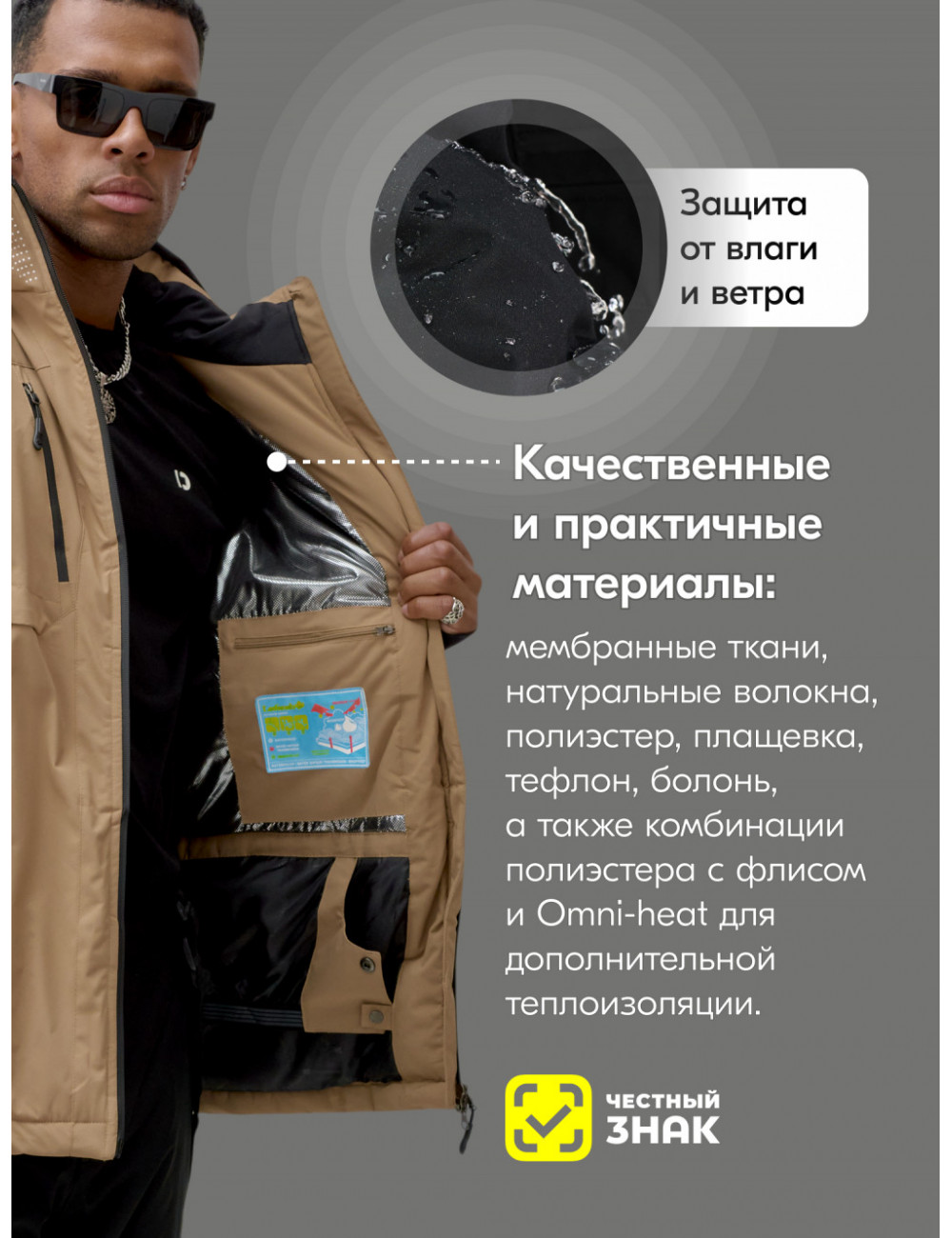 - Водоотталкивающая мембрана защищает от промокания и ветра, обеспечивая комфорт в любых погодных условиях.