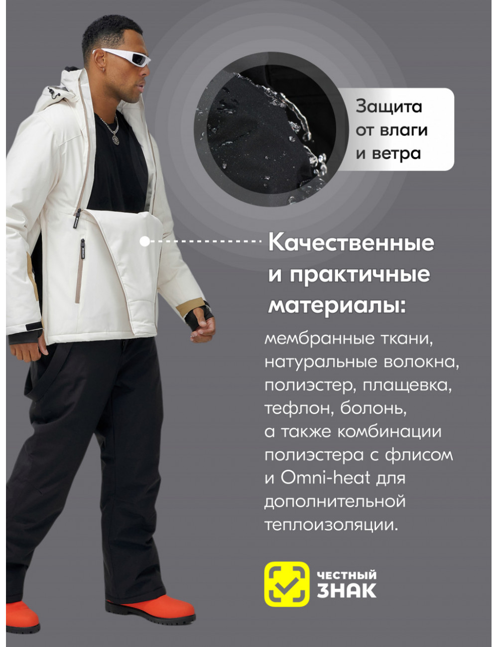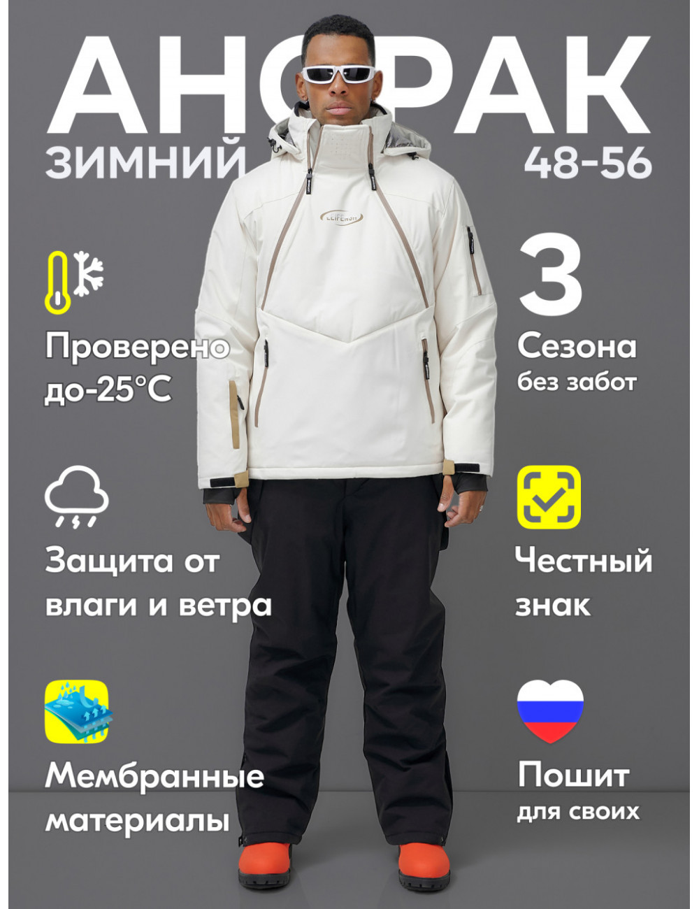 Не упустите шанс сделать свой зимний отдых незабываемым! Закажите горнолыжный костюм от Ketsi прямо сейчас и наслаждайтесь каждым моментом на склонах! Доставка Мужской горнолыжный костюм-анорак зимний белый для зимних видов спорта по Тюмени и Тюменской области СДЭК