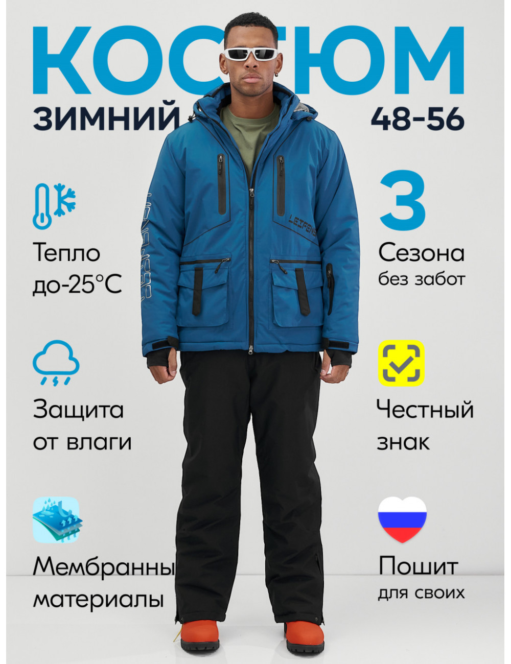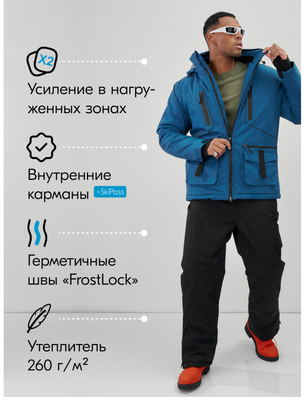 Ответ: Да, полукомбинезон оснащён съёмными бретелями и расширителем на липучке в поясе, что позволяет регулировать посадку под любую фигуру. Доставка Горнолыжный костюм мужской зимний синий для зимних видов спорта по Тюмени и Тюменской области СДЭК