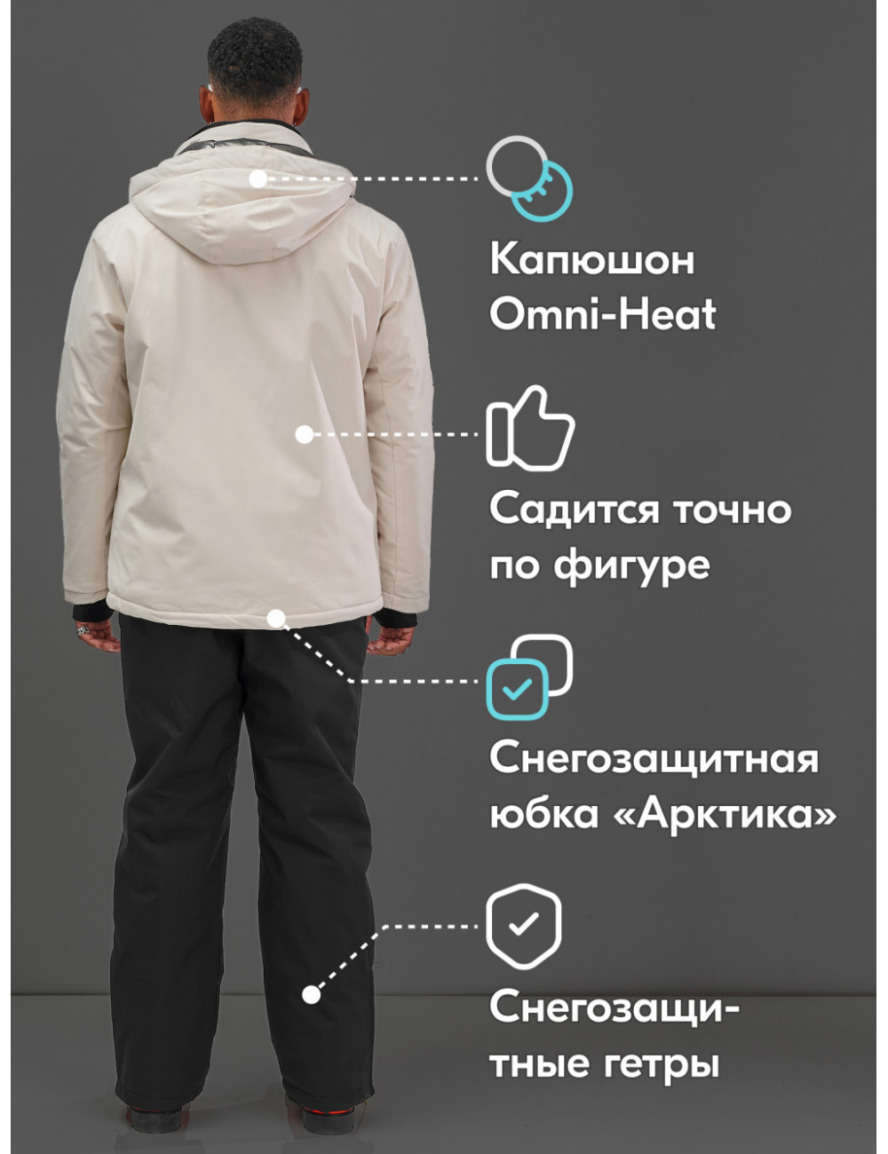 | Фиксаторы | На капюшоне, по низу куртки, на рукавах, по низу брюк |
