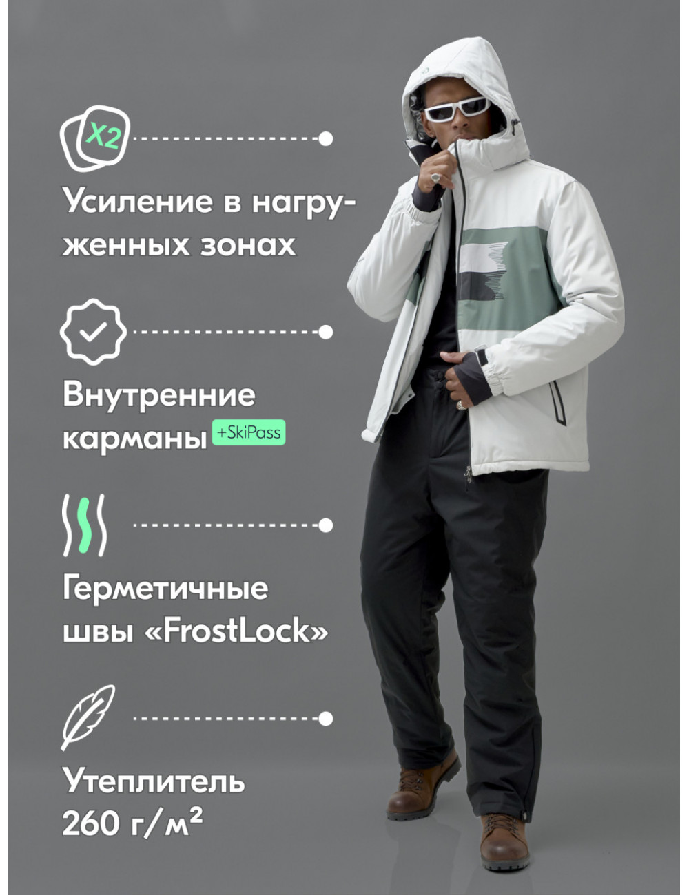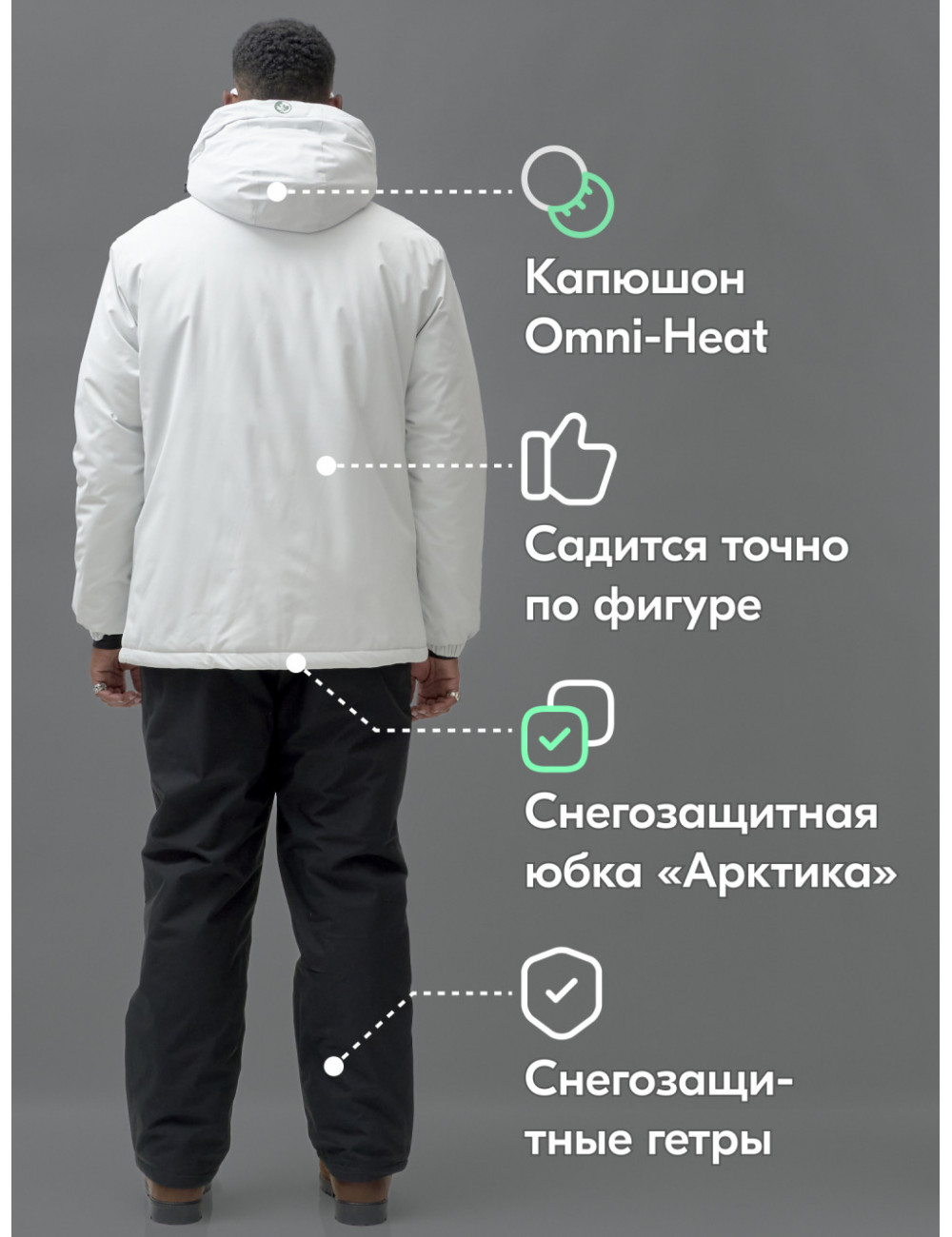 - Водоотталкивающая мембрана надёжно защищает от промокания и ветра, сохраняя комфортное состояние внутри костюма.