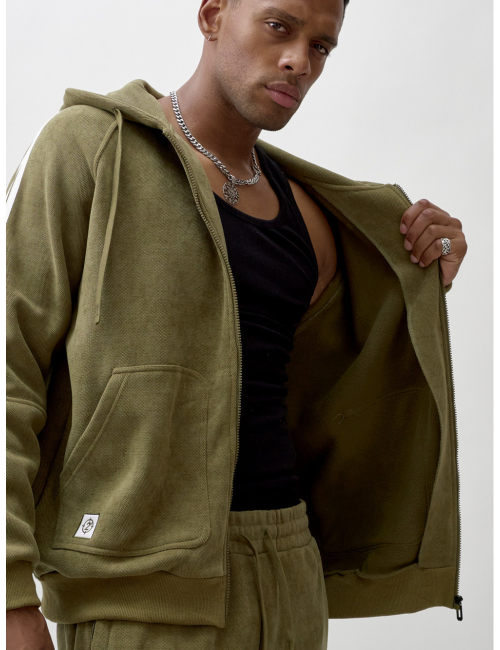 Олимпийка на молнии изготовлена из высококачественного хлопка и полиэстера. Флисовая подкладка обеспечивает отличную теплоизоляцию, а удобная молния позволяет легко надевать и снимать изделие. Глубокий несъёмный капюшон защитит вас от ветра и непогоды. Накладные боковые карманы — идеальное место для хранения мелочей или согревающих рук.