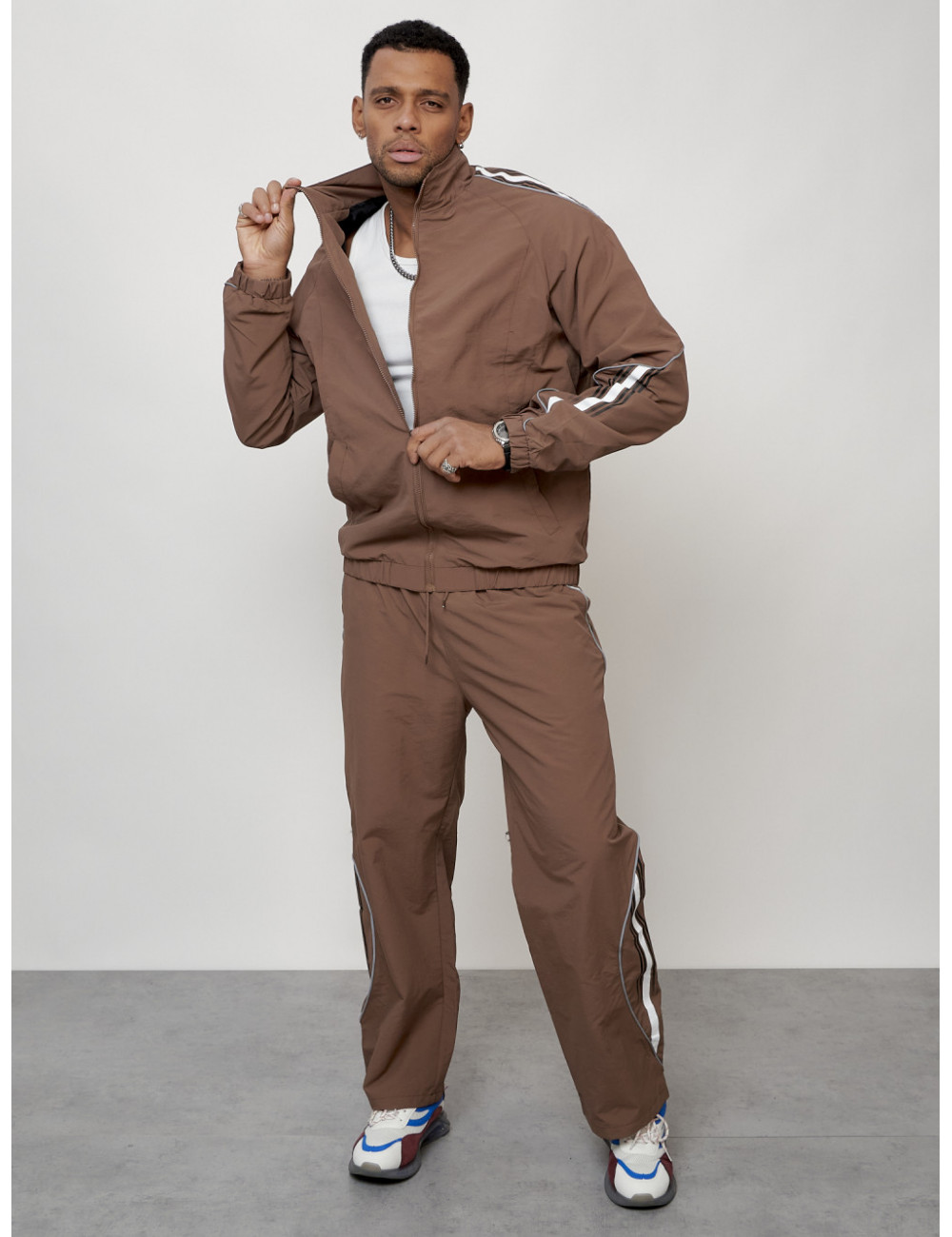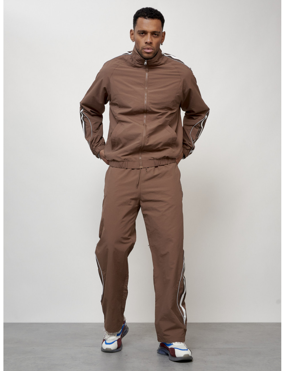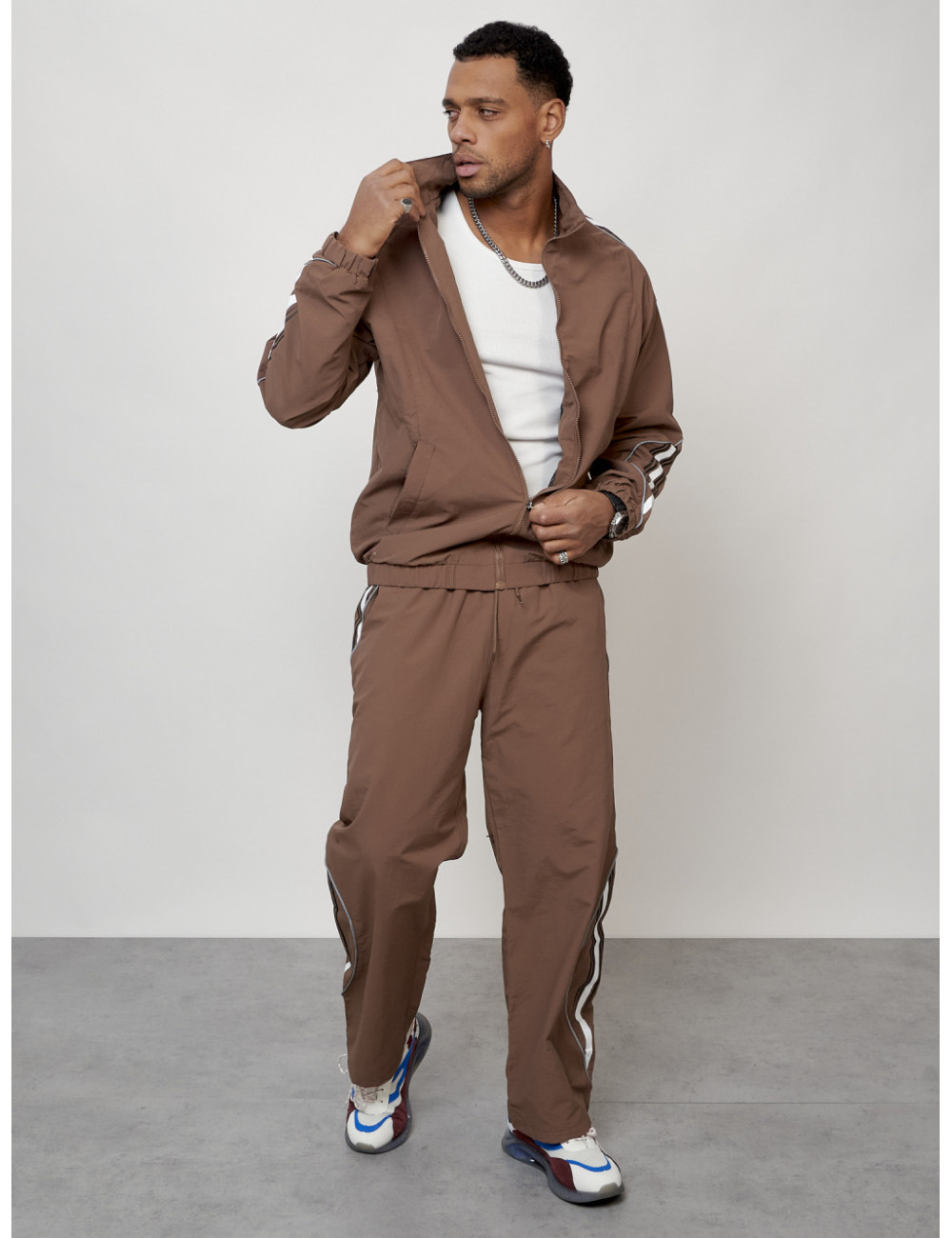 Доставка Мужской спортивный костюм для модных образов, коричневый, для спорта. по Тюмени и Тюменской области СДЭК