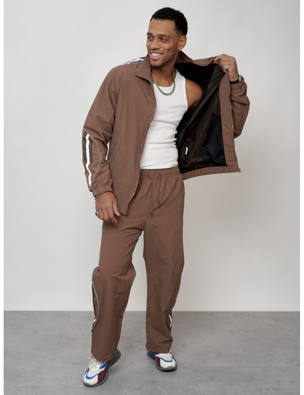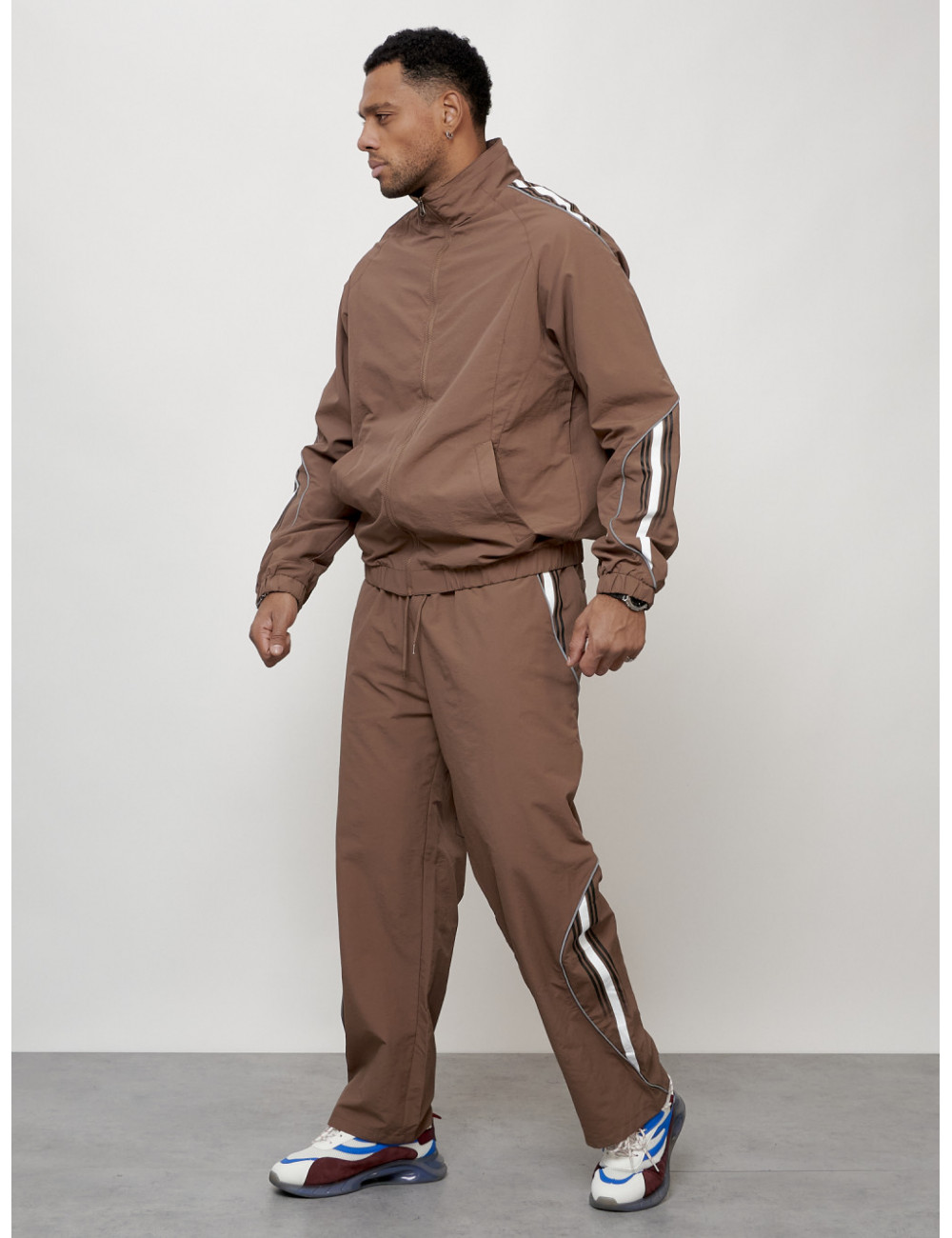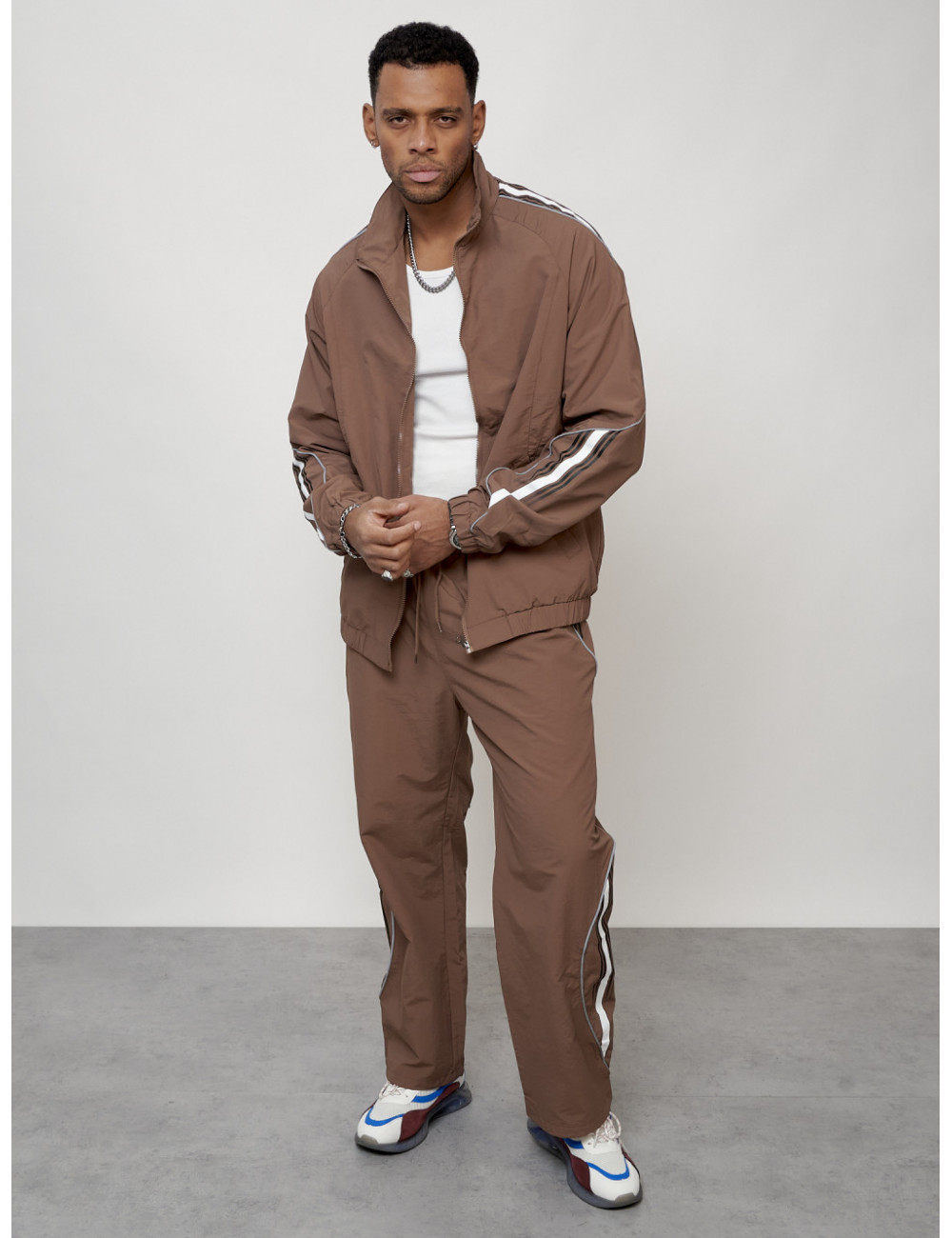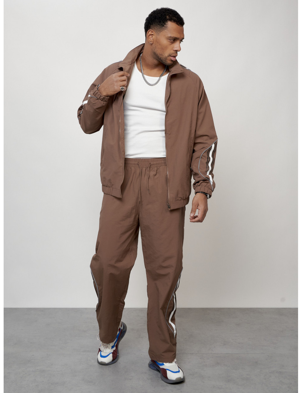Доставка Мужской спортивный костюм для модных образов, коричневый, для спорта. по Тюмени и Тюменской области СДЭК