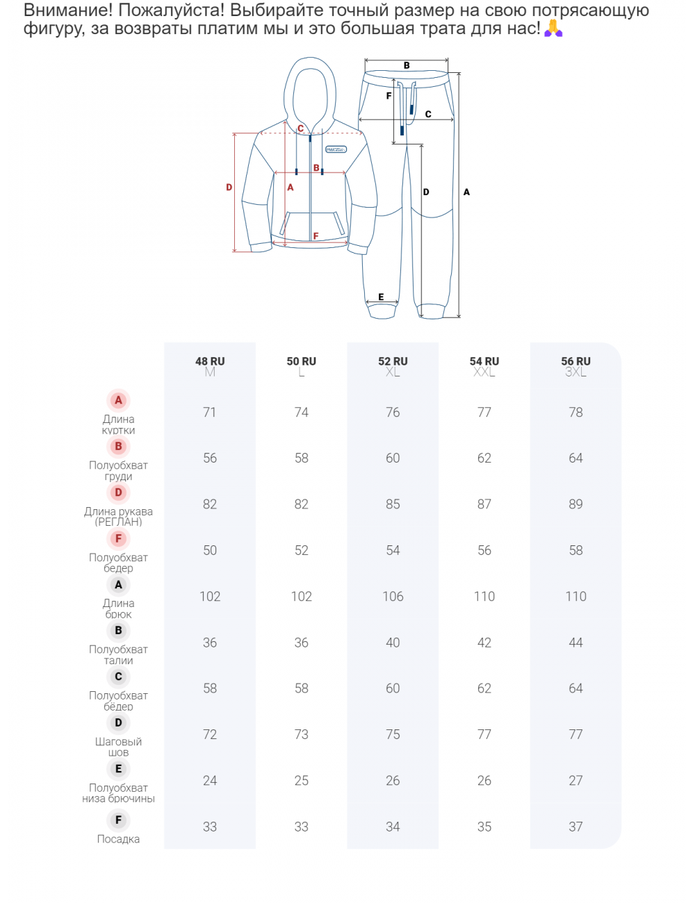 | Рост | от 165 до 195 |