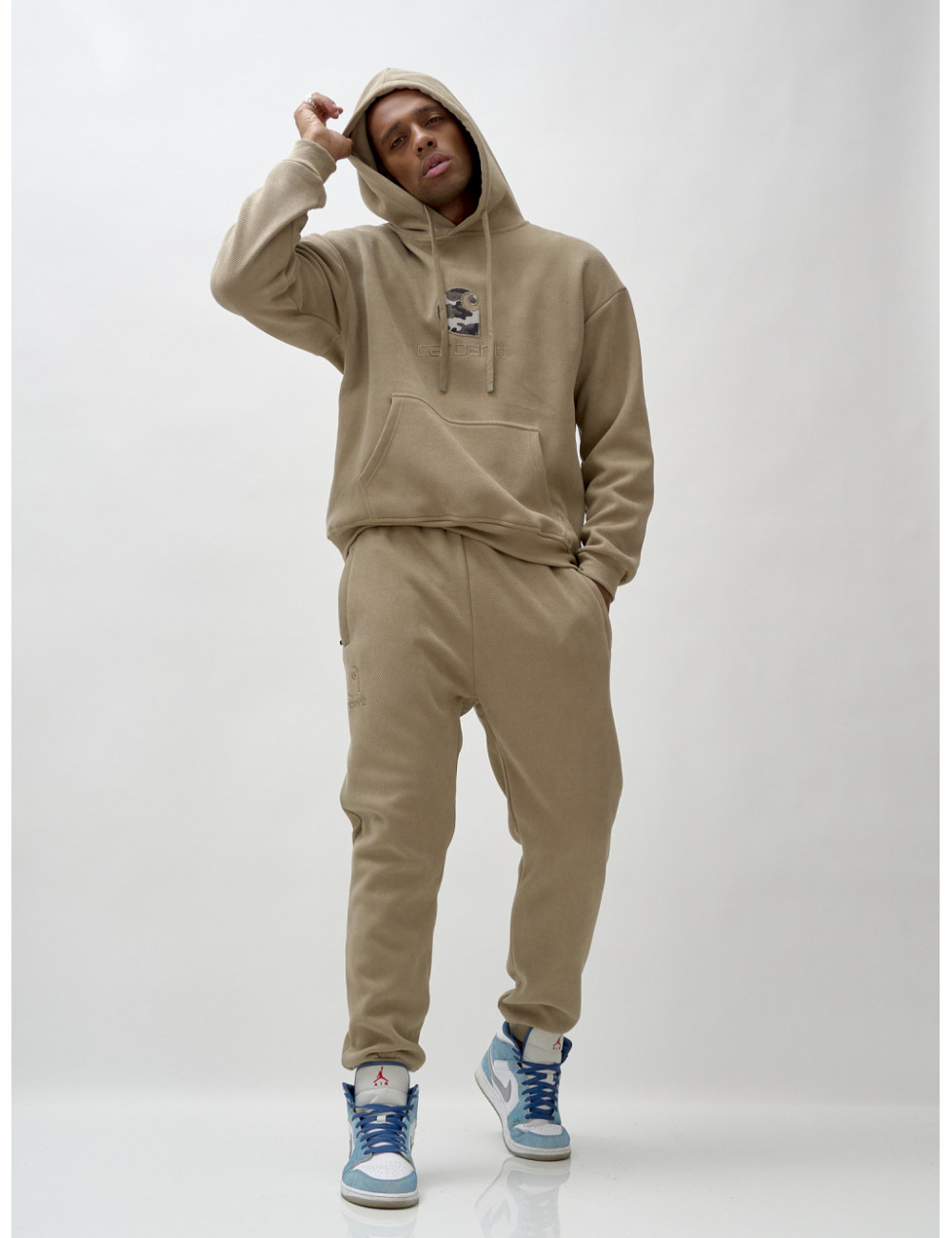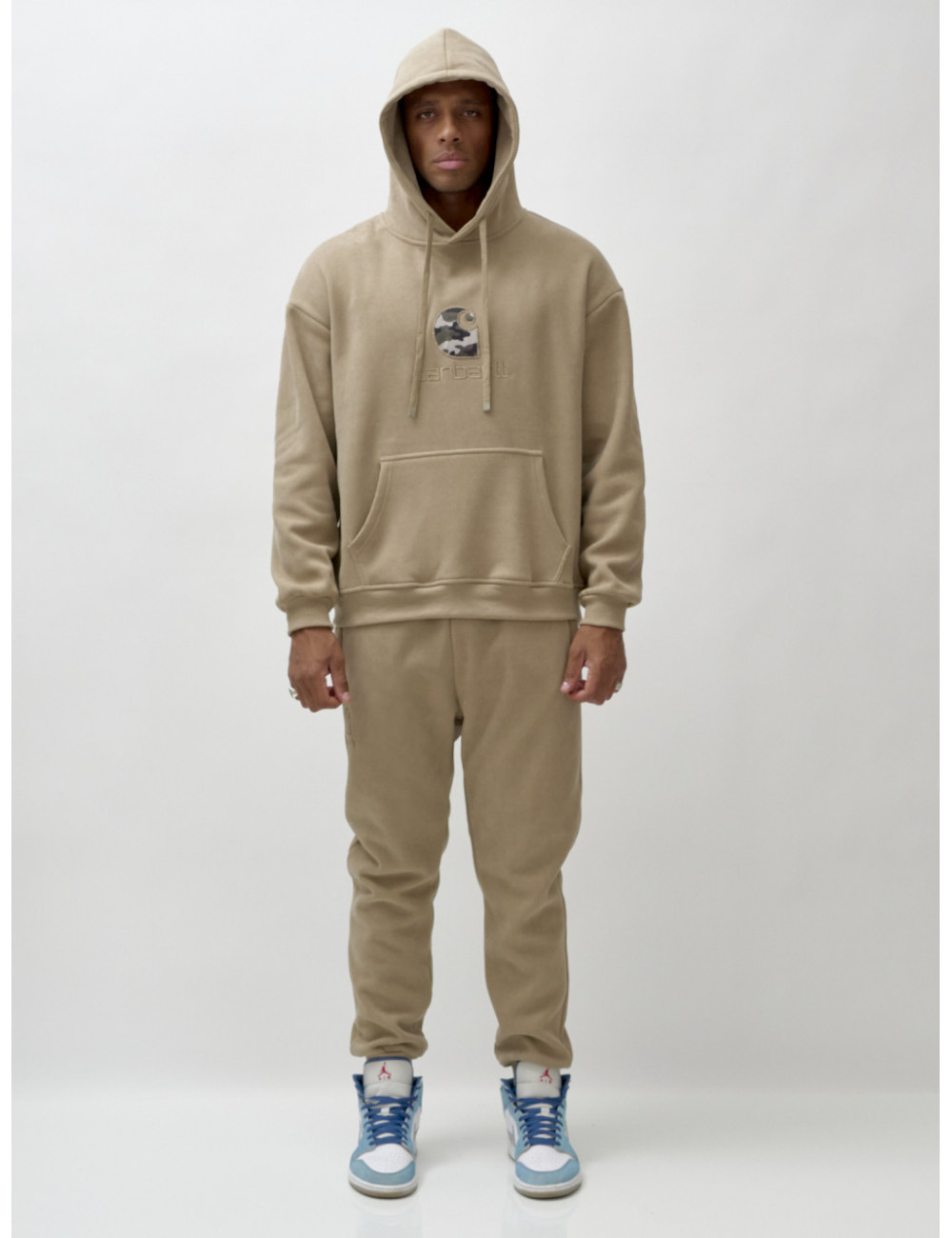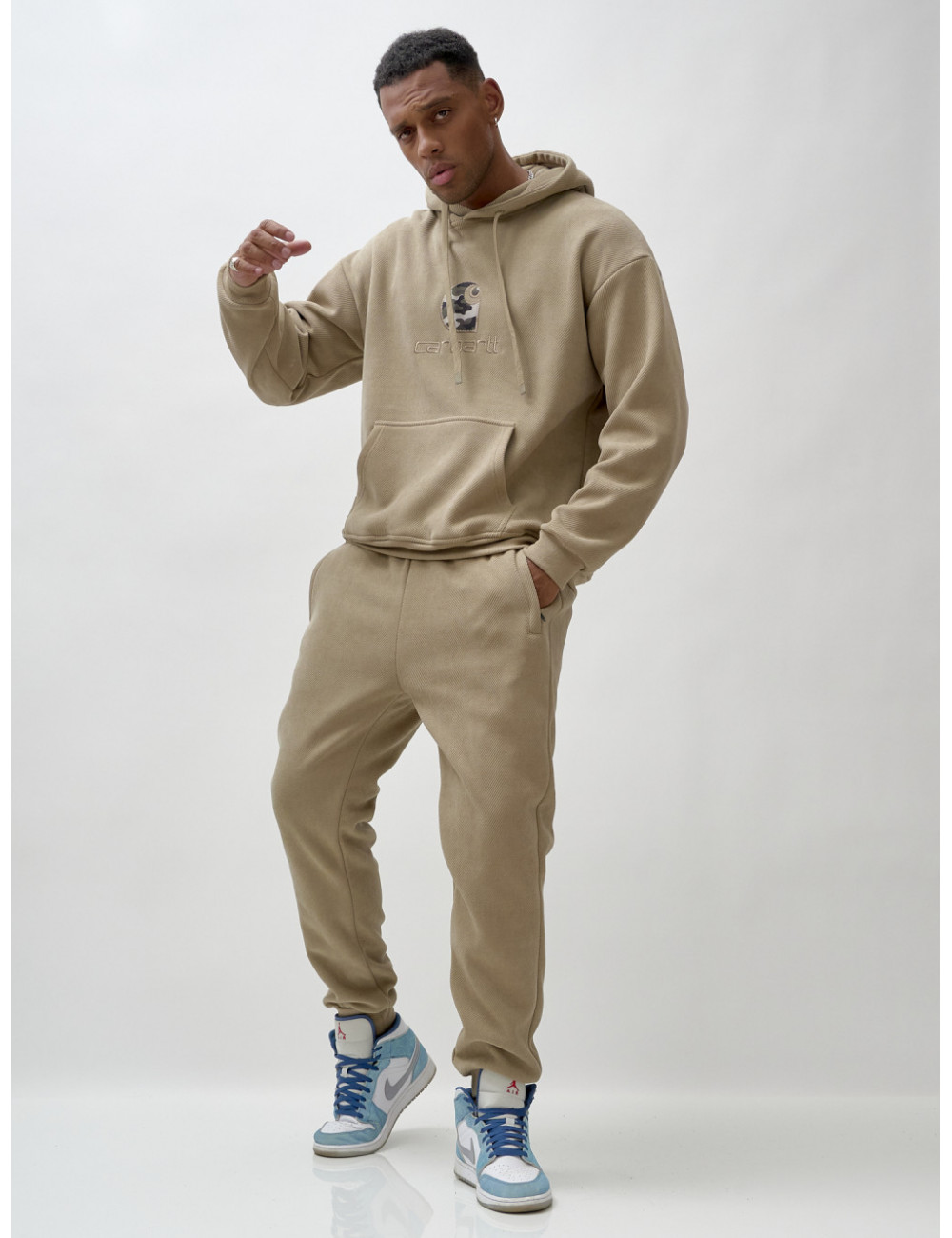 Доставка Мужской демисезонный спортивный костюм на флисе, бежевый, для спорта по Тюмени и Тюменской области СДЭК