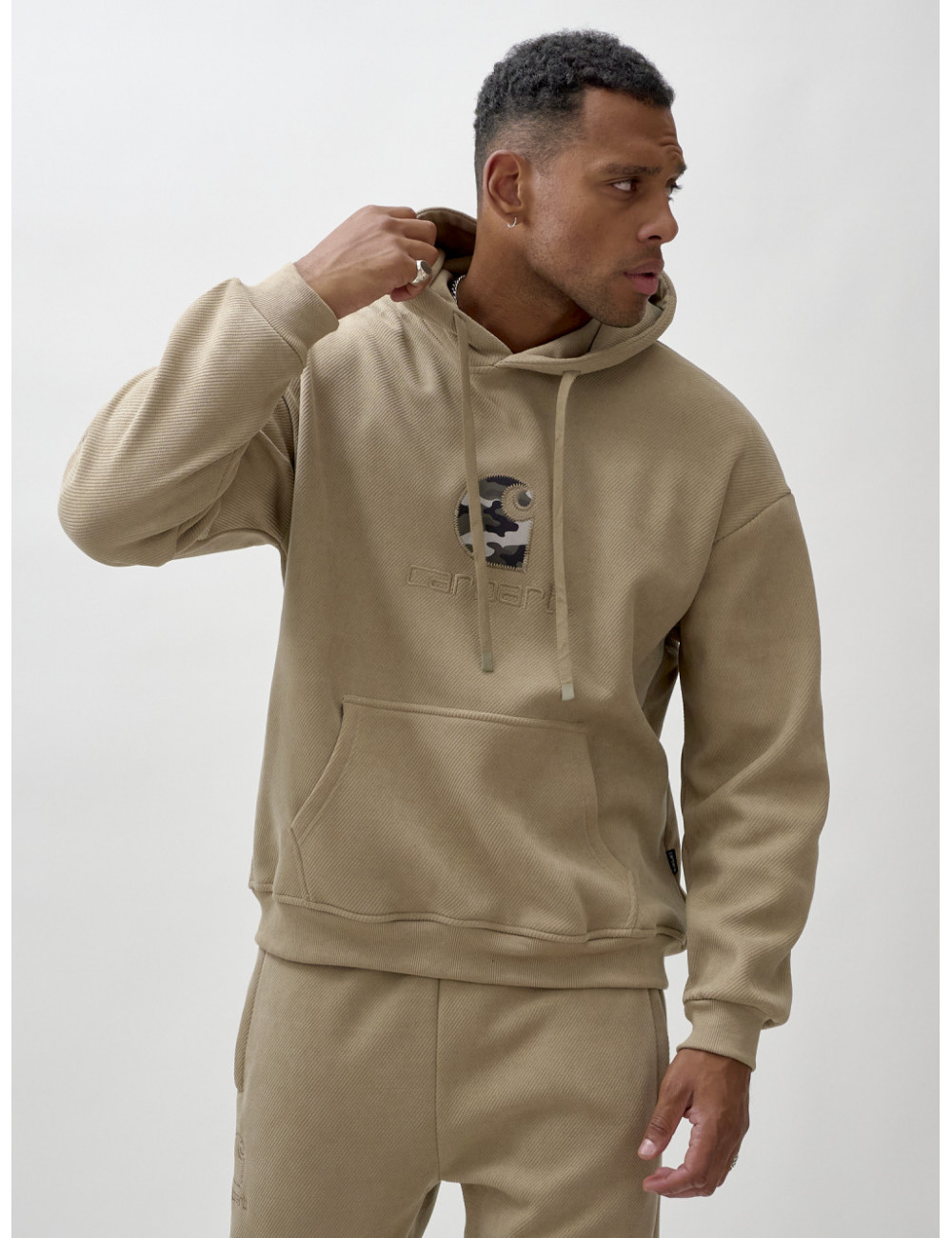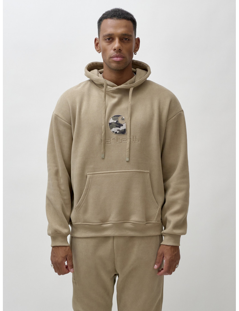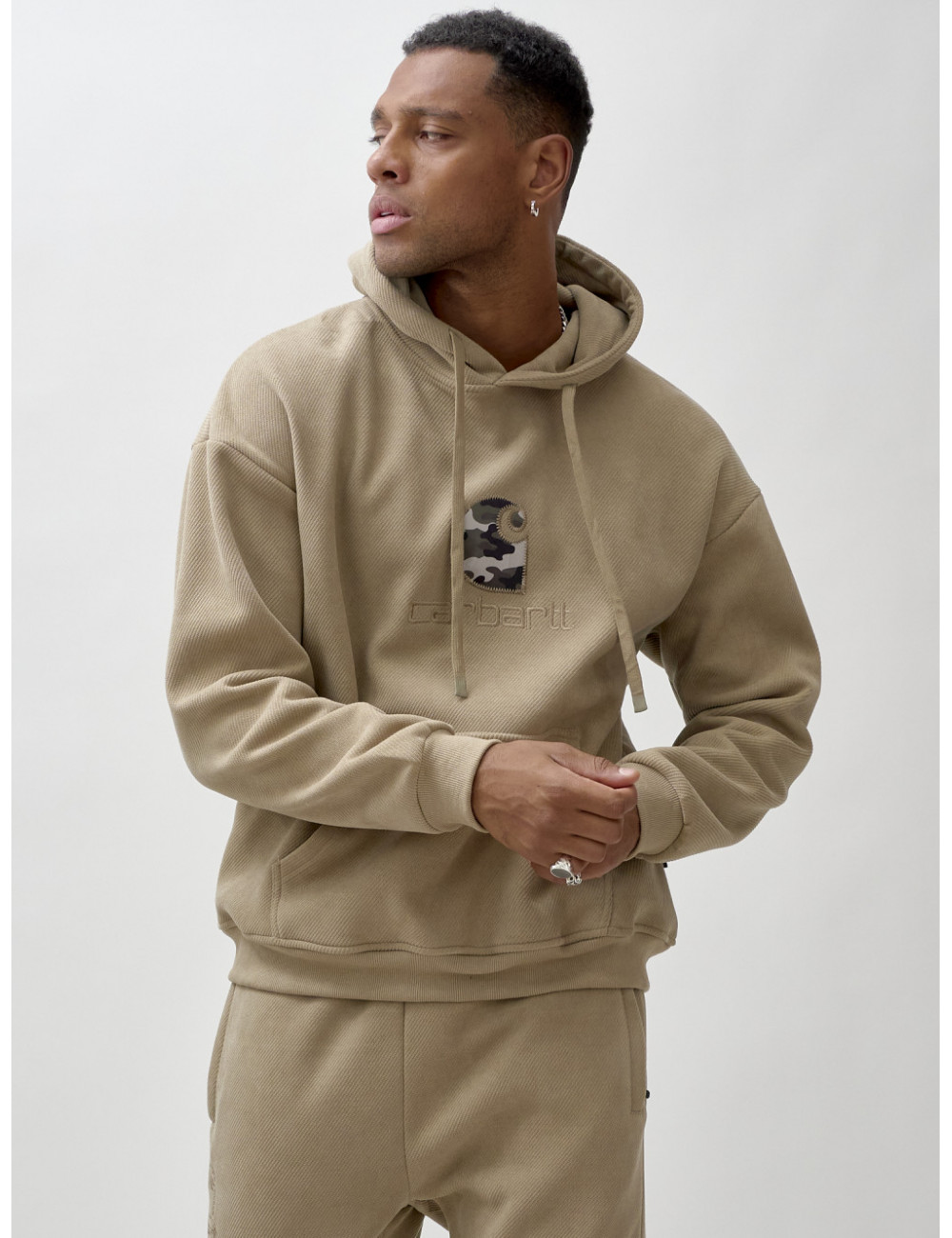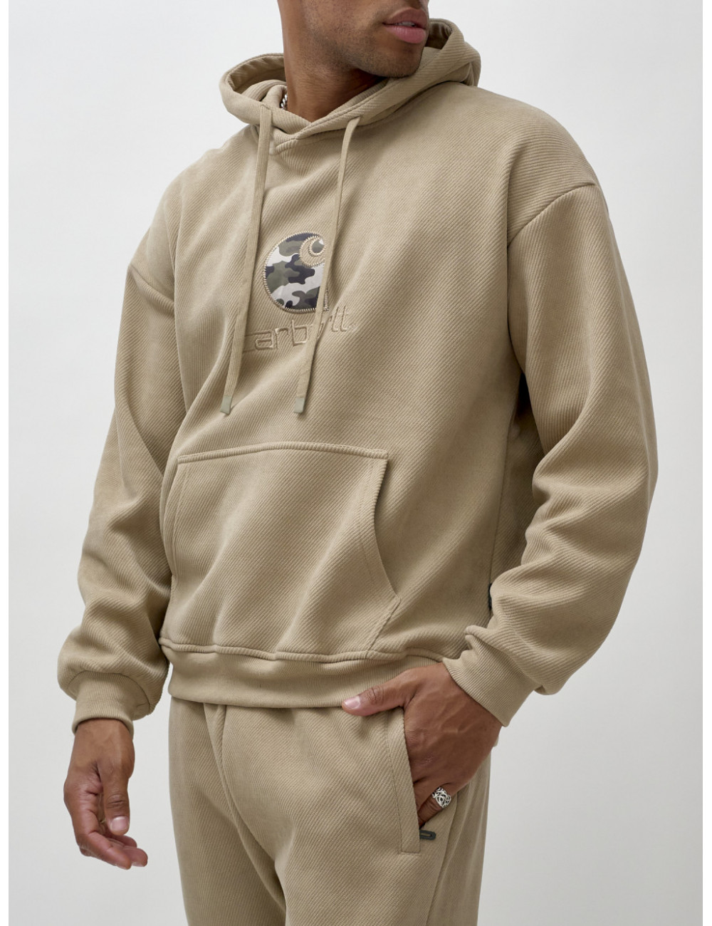 Модель оснащена глубоким несъёмным капюшоном, который регулируется шнурком. Это защитит вас от ветра и холода. Удобный карман-кенгуру не только добавляет функциональности, но и создаёт стильный вид.