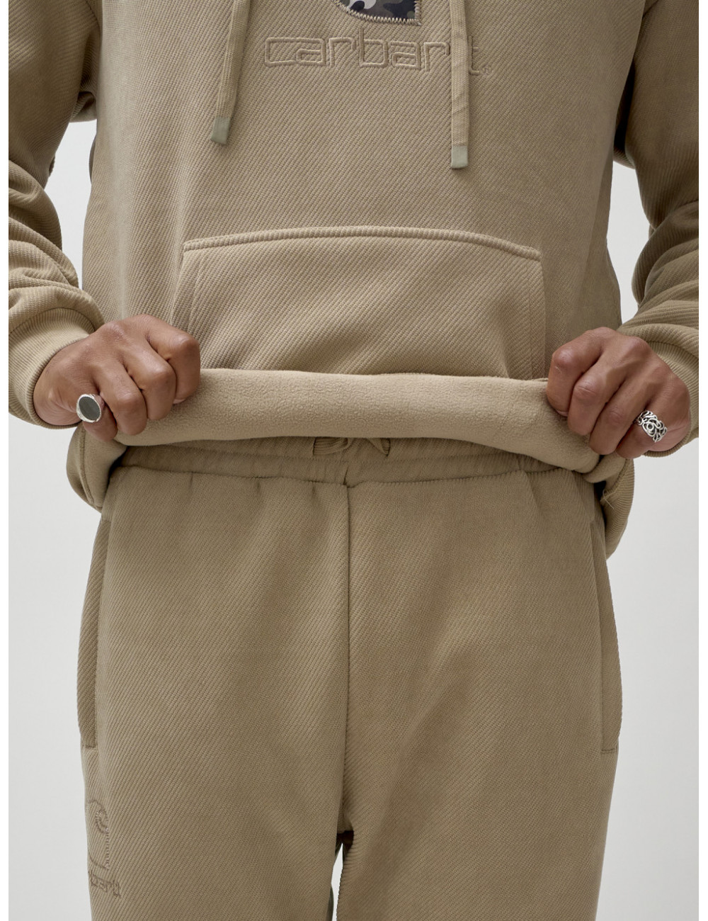 Зауженные брюки с широкой резинкой и шнурком в талии обеспечивают идеальную посадку и свободу движений. Прорезные боковые карманы на молнии надёжно сохранят ваши вещи, а трикотажные манжеты на брюках и худи добавляют завершённость образу.