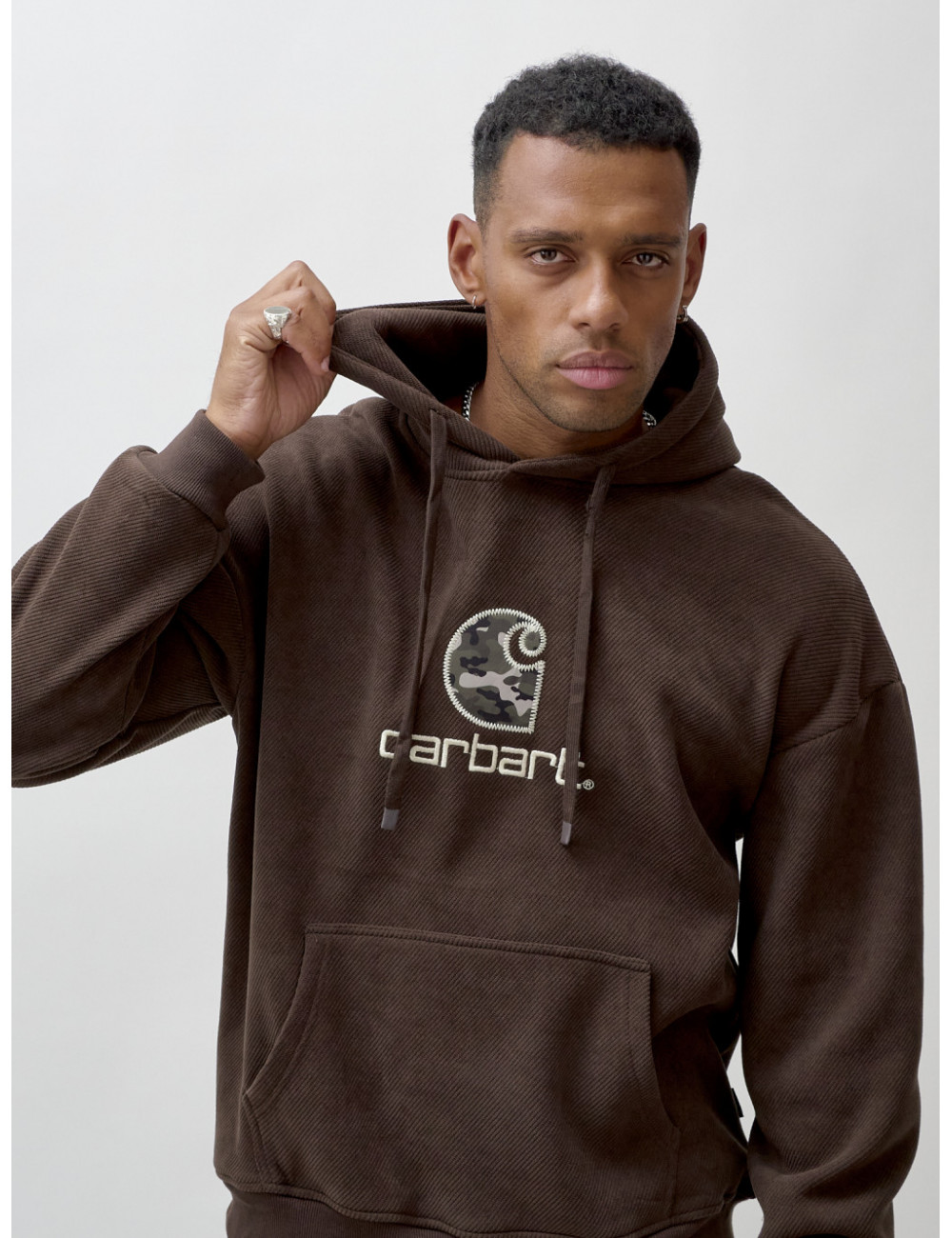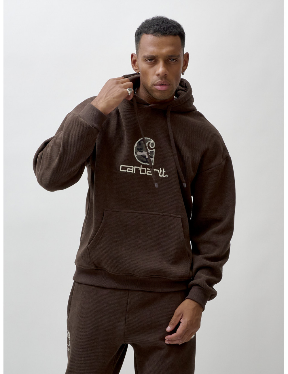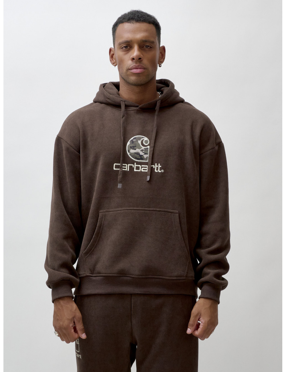 Худи с глубоким несъёмным капюшоном, который регулируется шнурком, защитит вас от ветра и холода. Удобный карман-кенгуру добавляет функциональности и создаёт стильный вид.