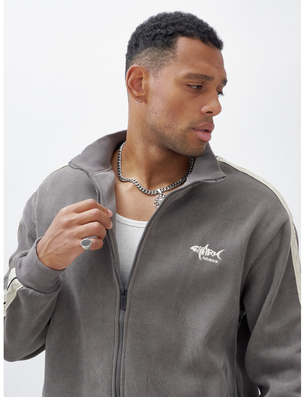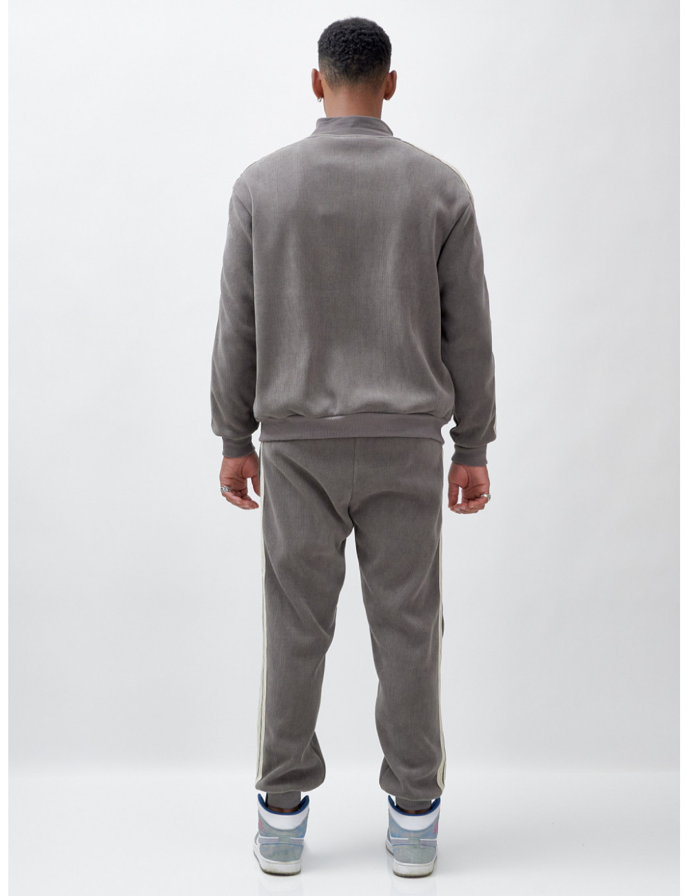 - Стильный дизайн. Олимпийка с высоким трикотажным воротником и крупной молнией не только защищает от ветра, но и выглядит стильно. Декоративные полосы по боковым швам рукава и штанин добавляют изюминку вашему образу.