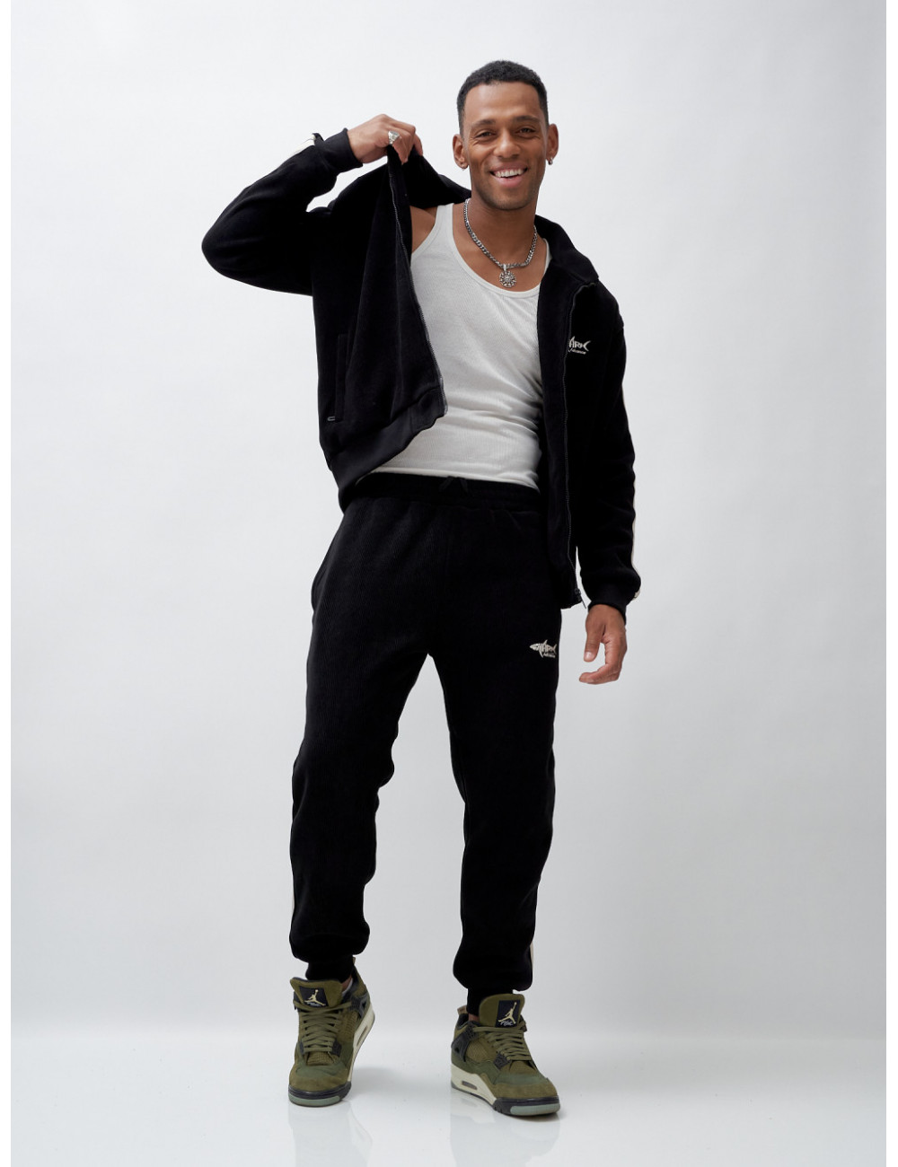 - Акцент на индивидуальности. Вышитая надпись на груди подчёркивает индивидуальность, а общий вид костюма делает его идеальным выбором как для занятий спортом, так и для повседневной носки.