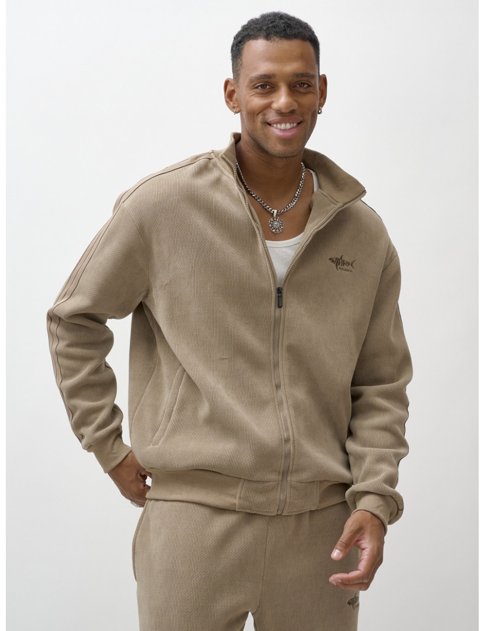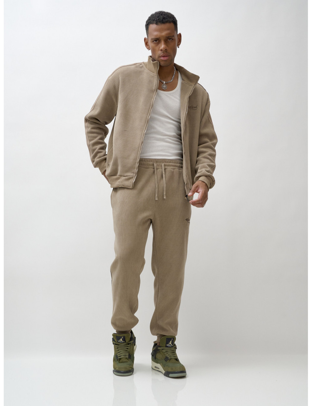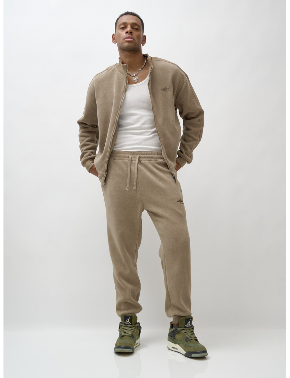 Доставка Мужской демисезонный спортивный костюм на флисе, бежевый, для спорта. по Тюмени и Тюменской области СДЭК