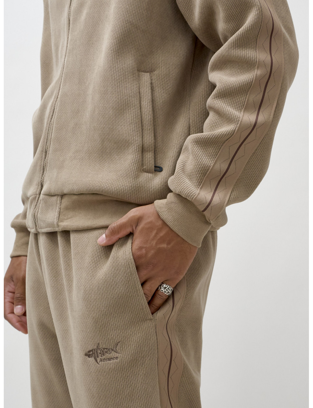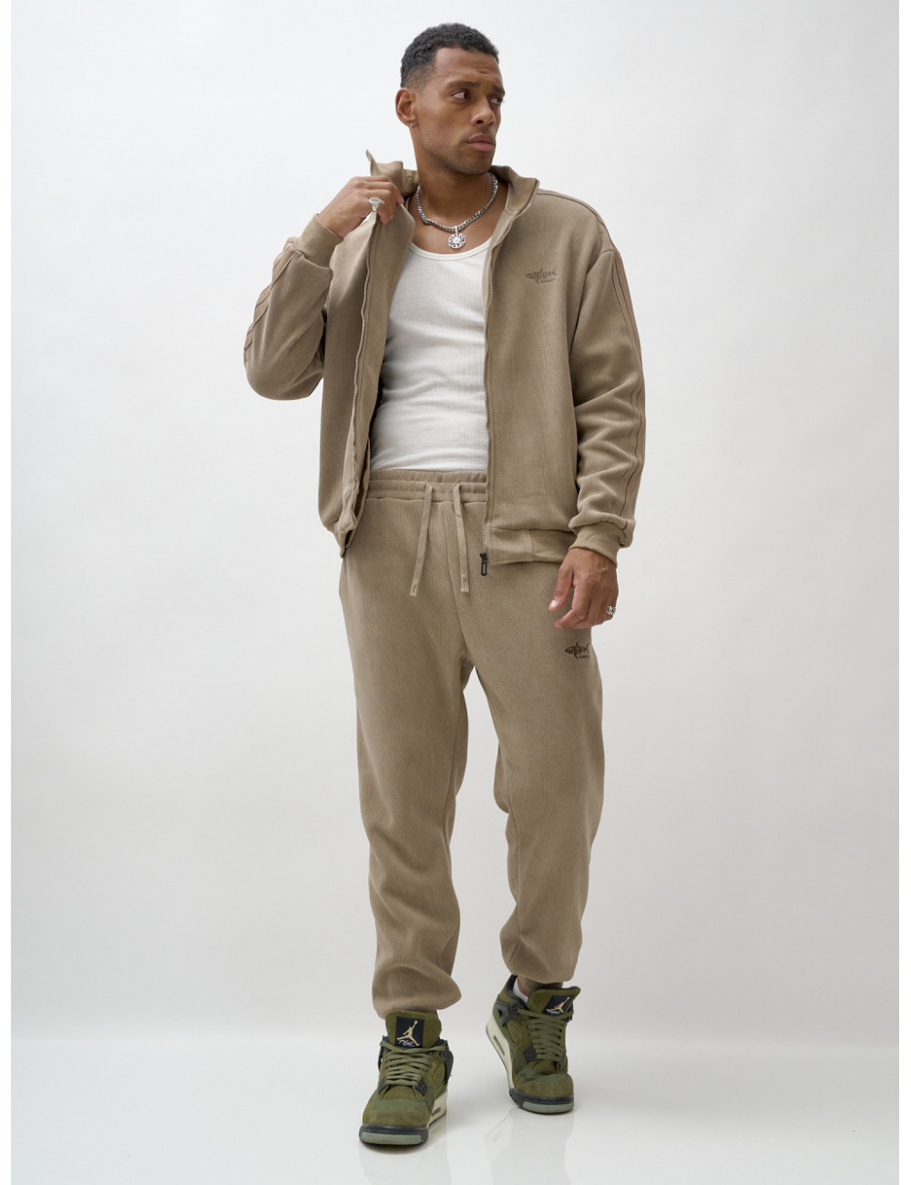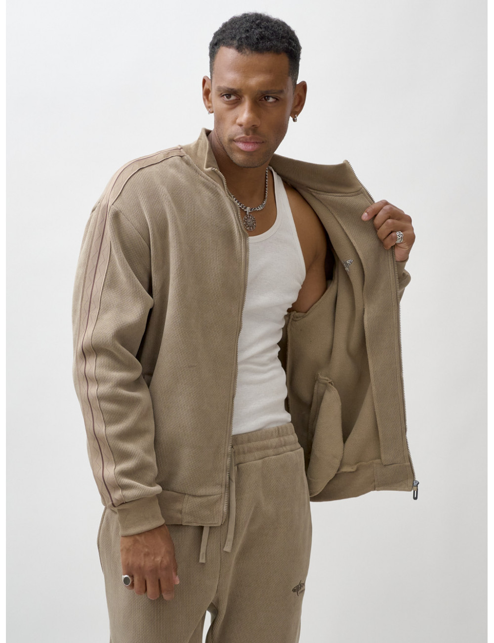Доставка Мужской демисезонный спортивный костюм на флисе, бежевый, для спорта. по Тюмени и Тюменской области СДЭК