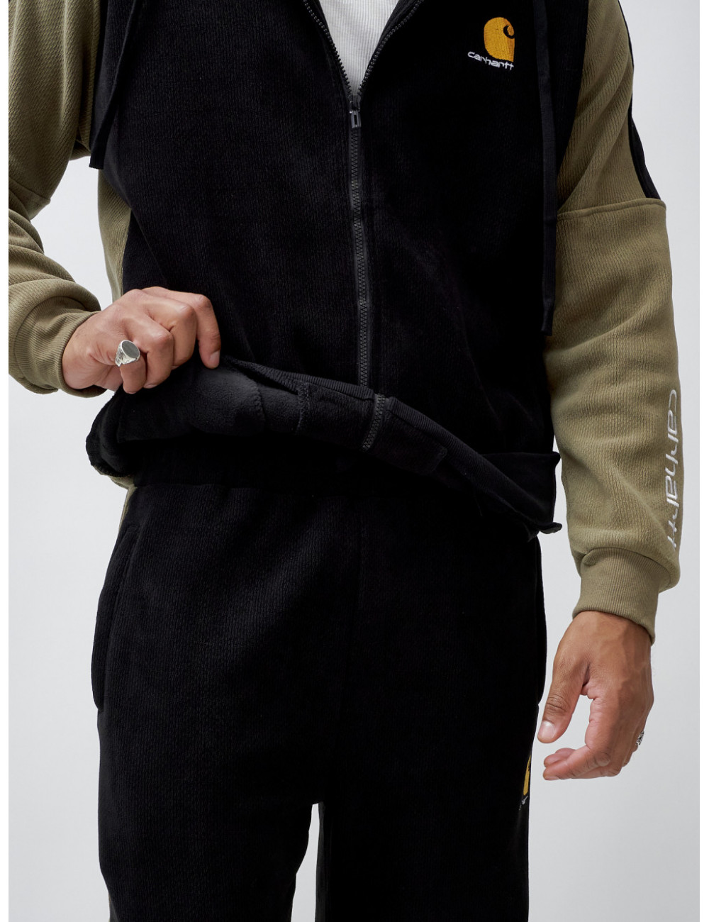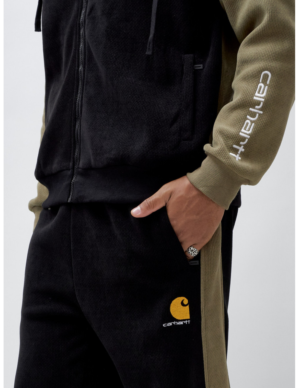 Костюм изготовлен из высококачественного сочетания хлопка и полиэстера с флисовой подкладкой, что обеспечивает долговечность и лёгкость ухода, а также дополнительный слой тепла.