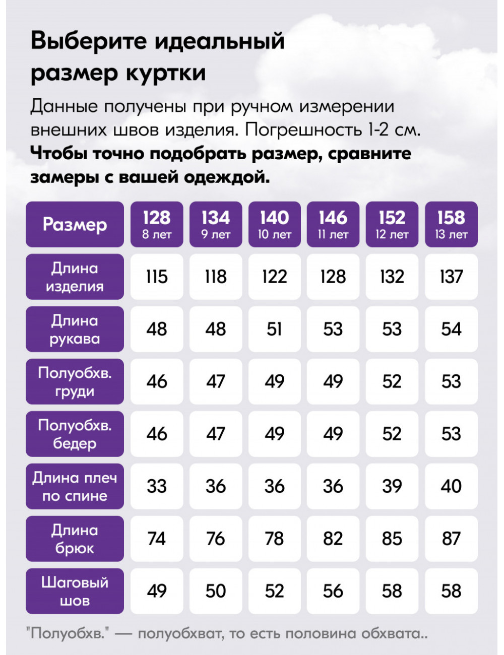 Рост | от 128 до 1158 |