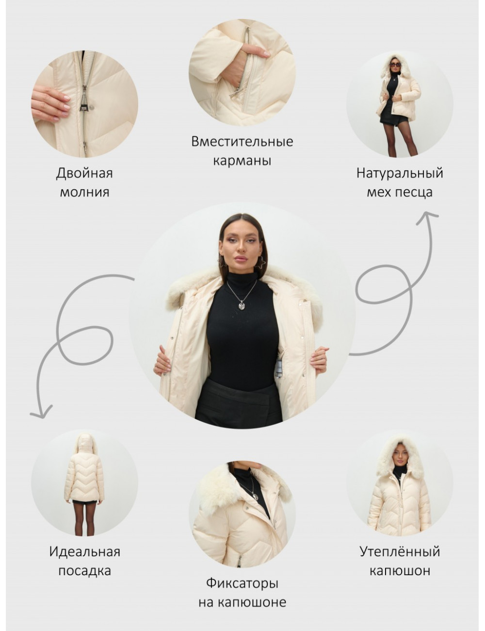 Пуховик от Ketsi — это выбор тех, кто ценит качество, комфорт и элегантность. Он станет отличным дополнением к вашему гардеробу и обеспечит тепло и уют в холодное время года. Доставка Женский зимний пуховик с мехом и капюшоном, бежевый. по Тюмени и Тюменской области СДЭК