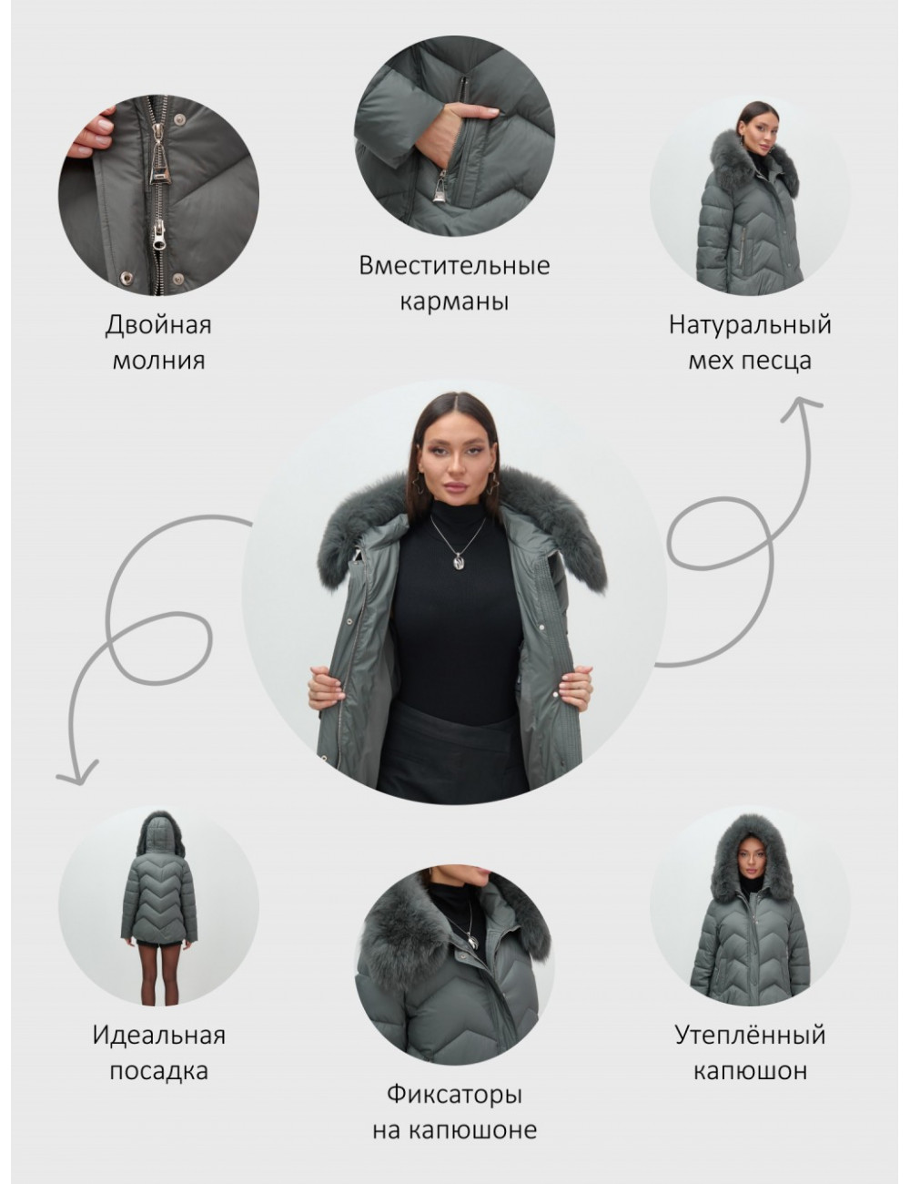 | Декоративные элементы | Капюшон, Декоративные пуговицы, Манжеты, Мех |