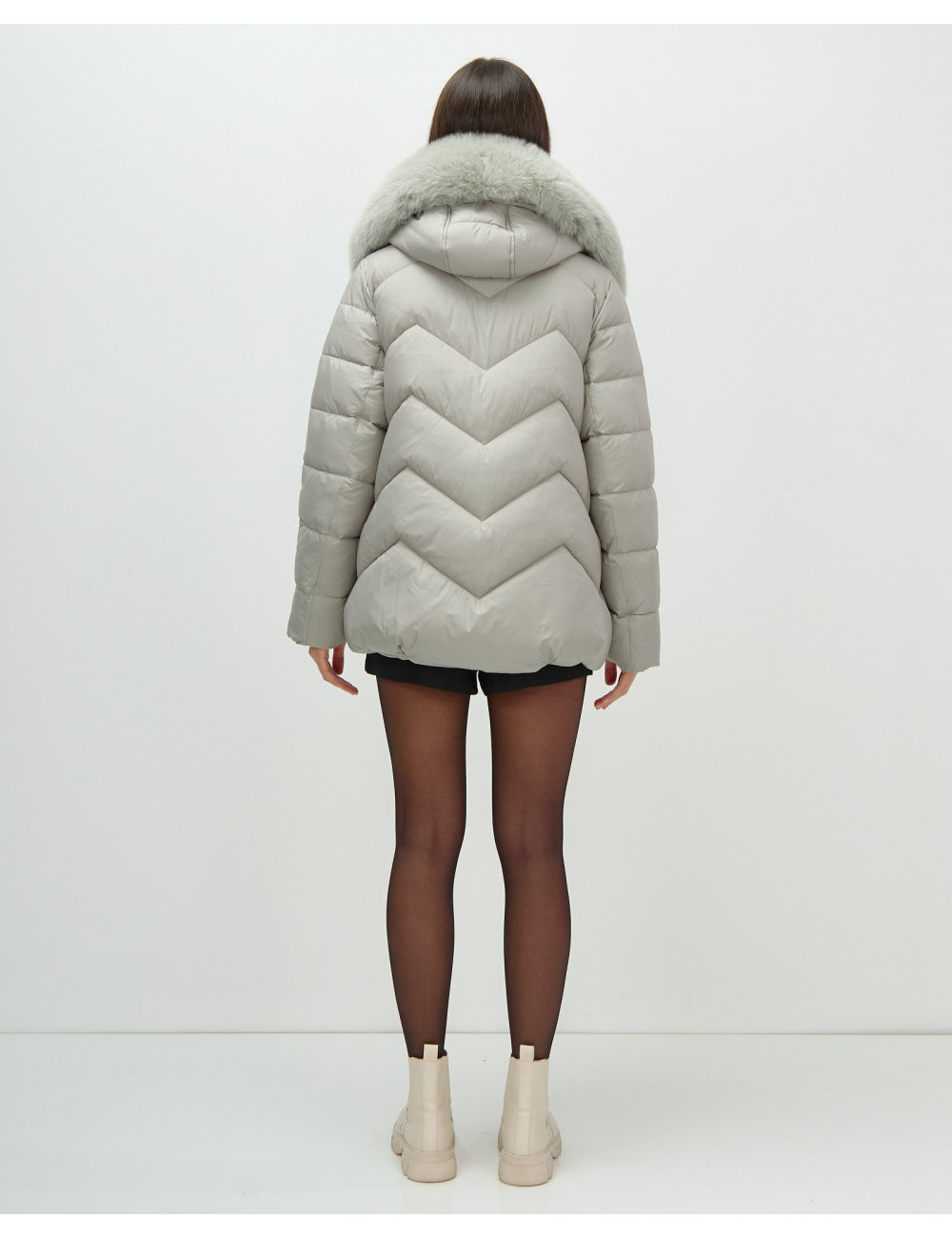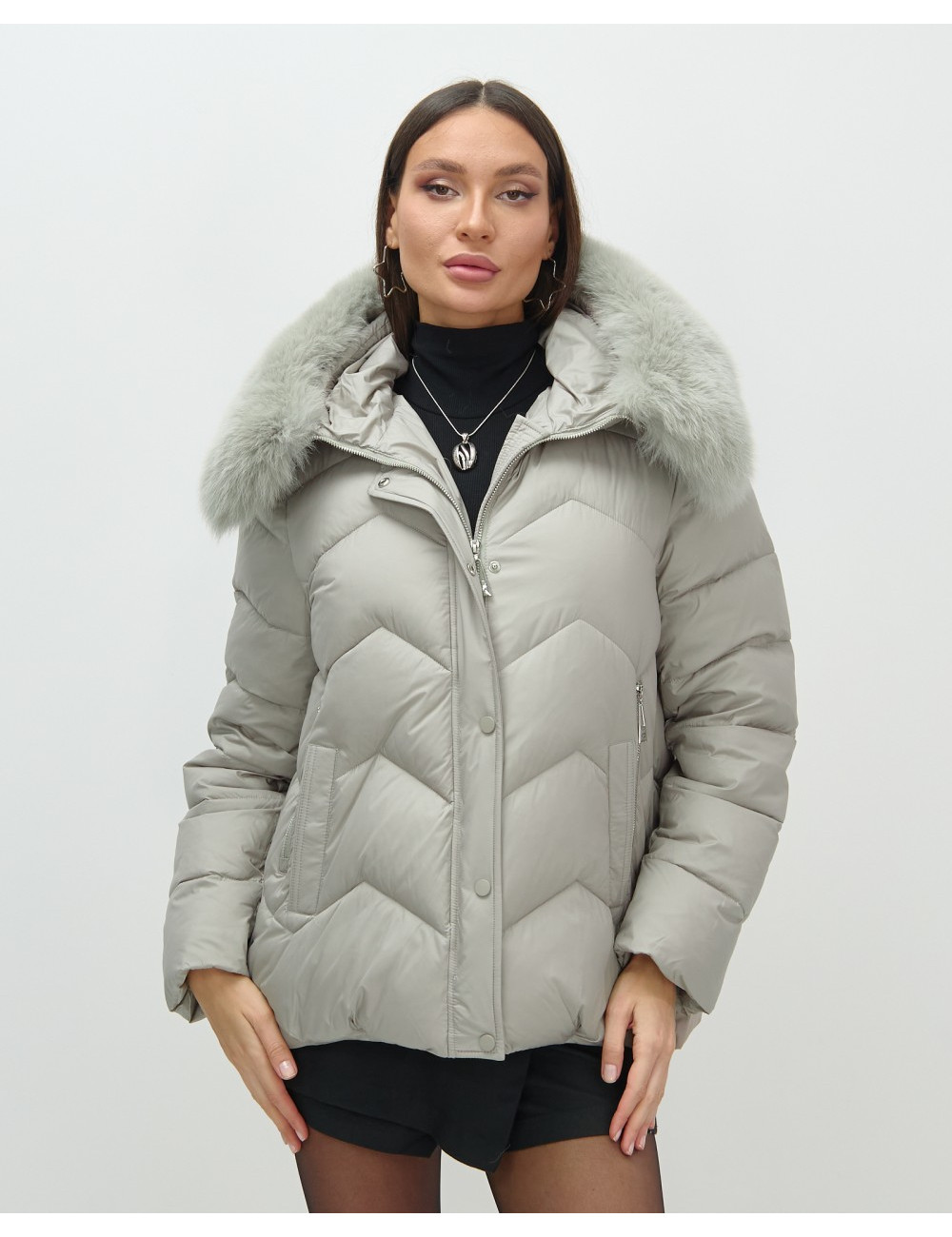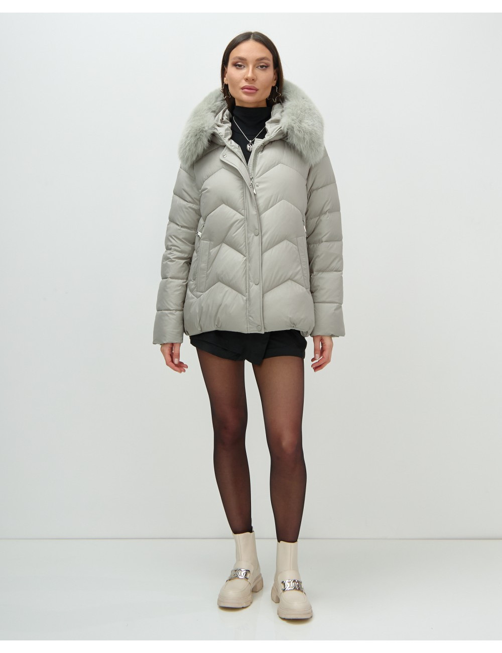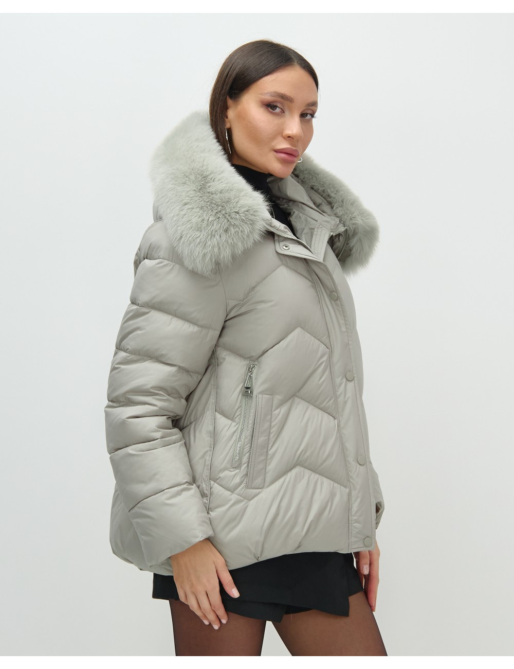 Пуховик представлен в пяти актуальных цветах: чёрный, бежевый, светло-зелёный, коричневый, тёмно-серый.