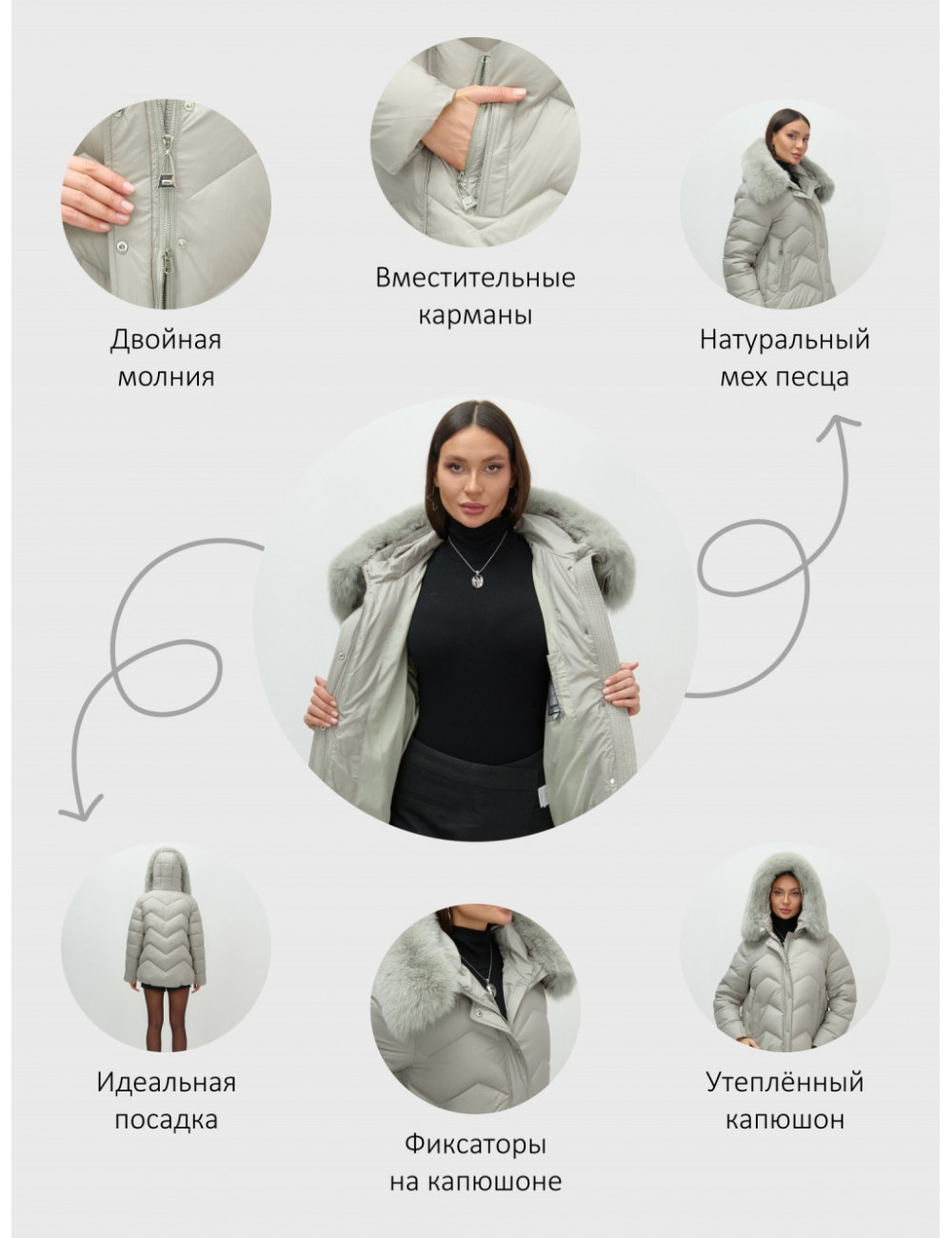 | Комплектация | Куртка/Капюшон/Мех песец натуральный |