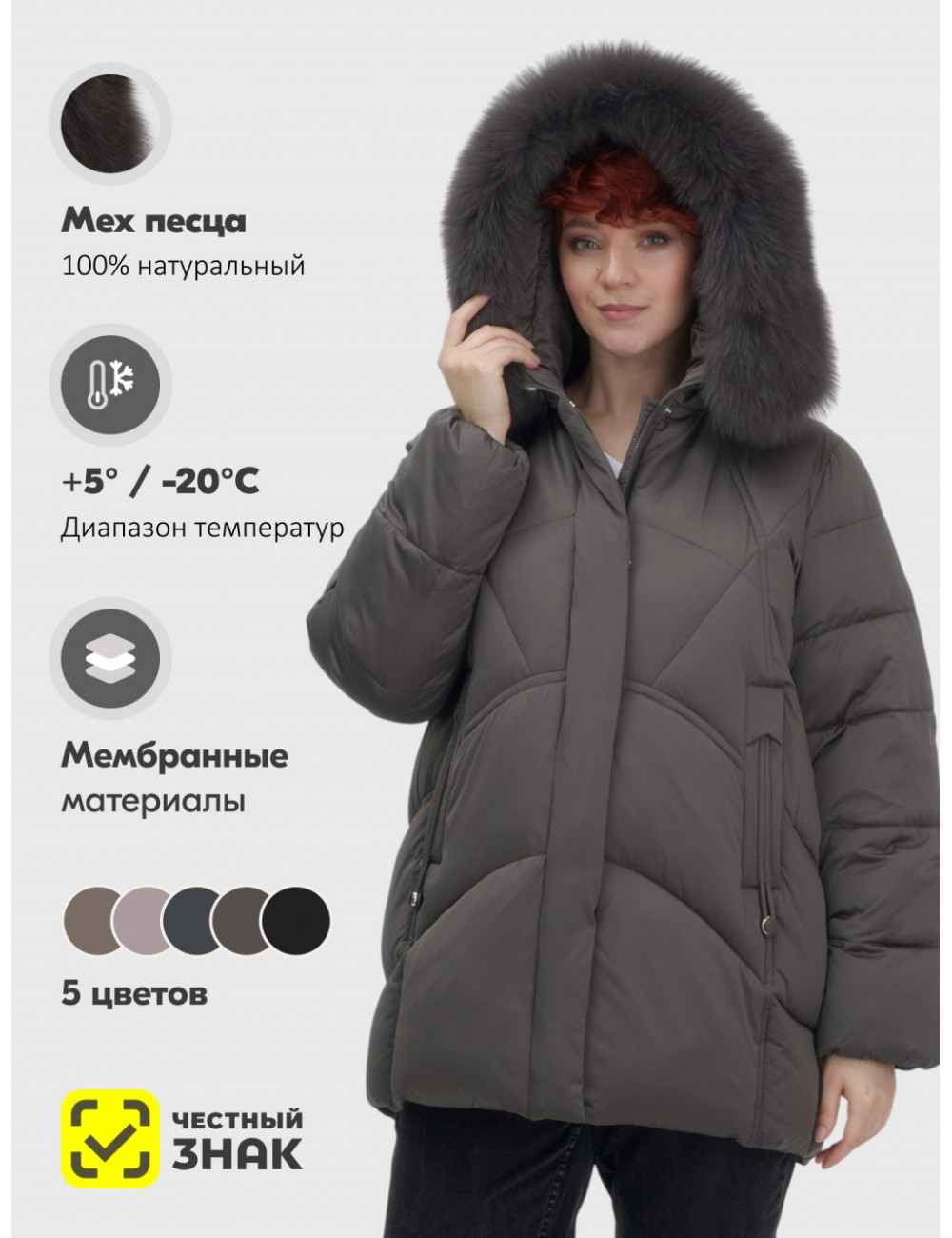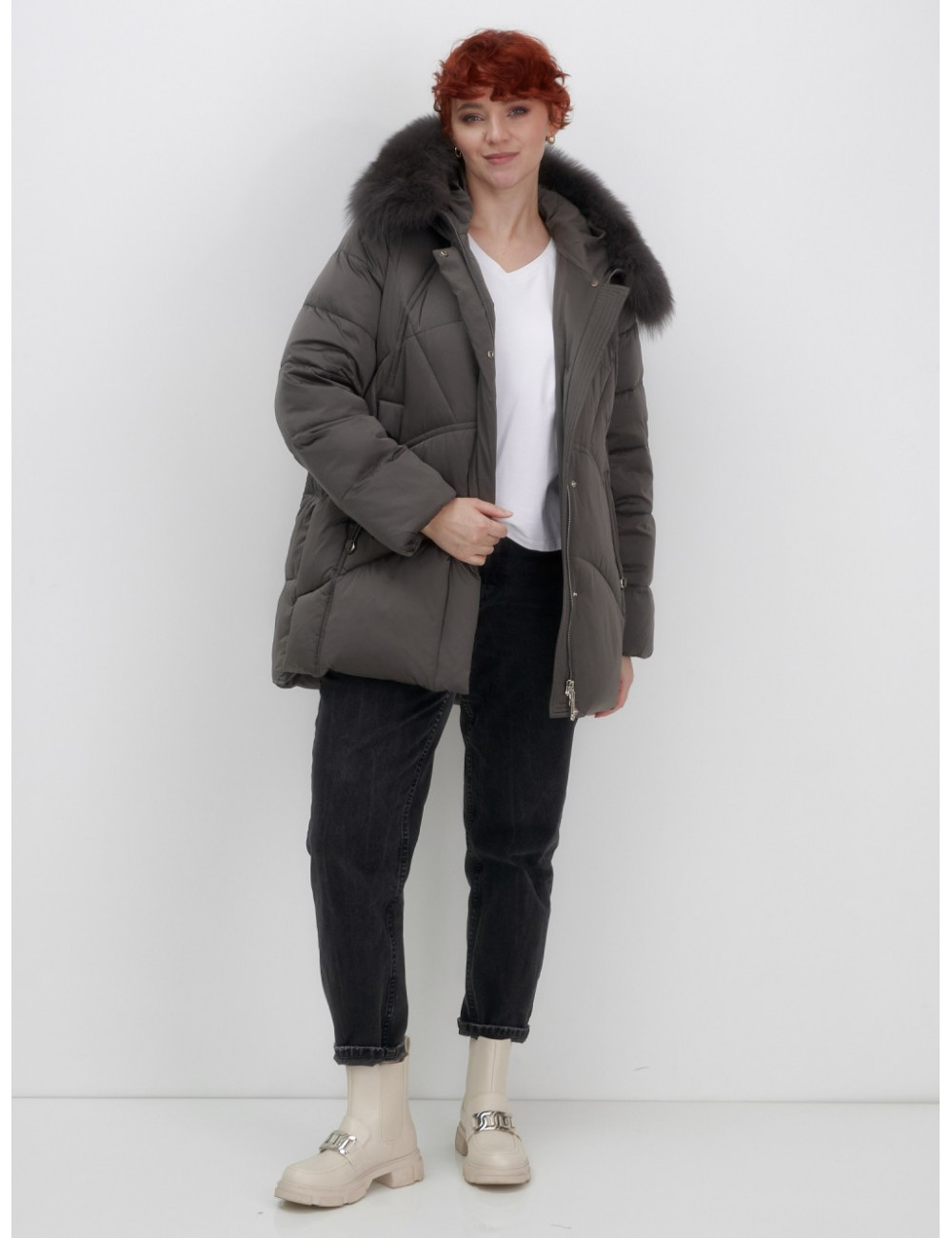 Позвольте себе быть неотразимой этой зимой с пуховиком от Ketsi! Доставка Женский зимний пуховик с мехом и капюшоном, тёмно-серый по Тюмени и Тюменской области СДЭК