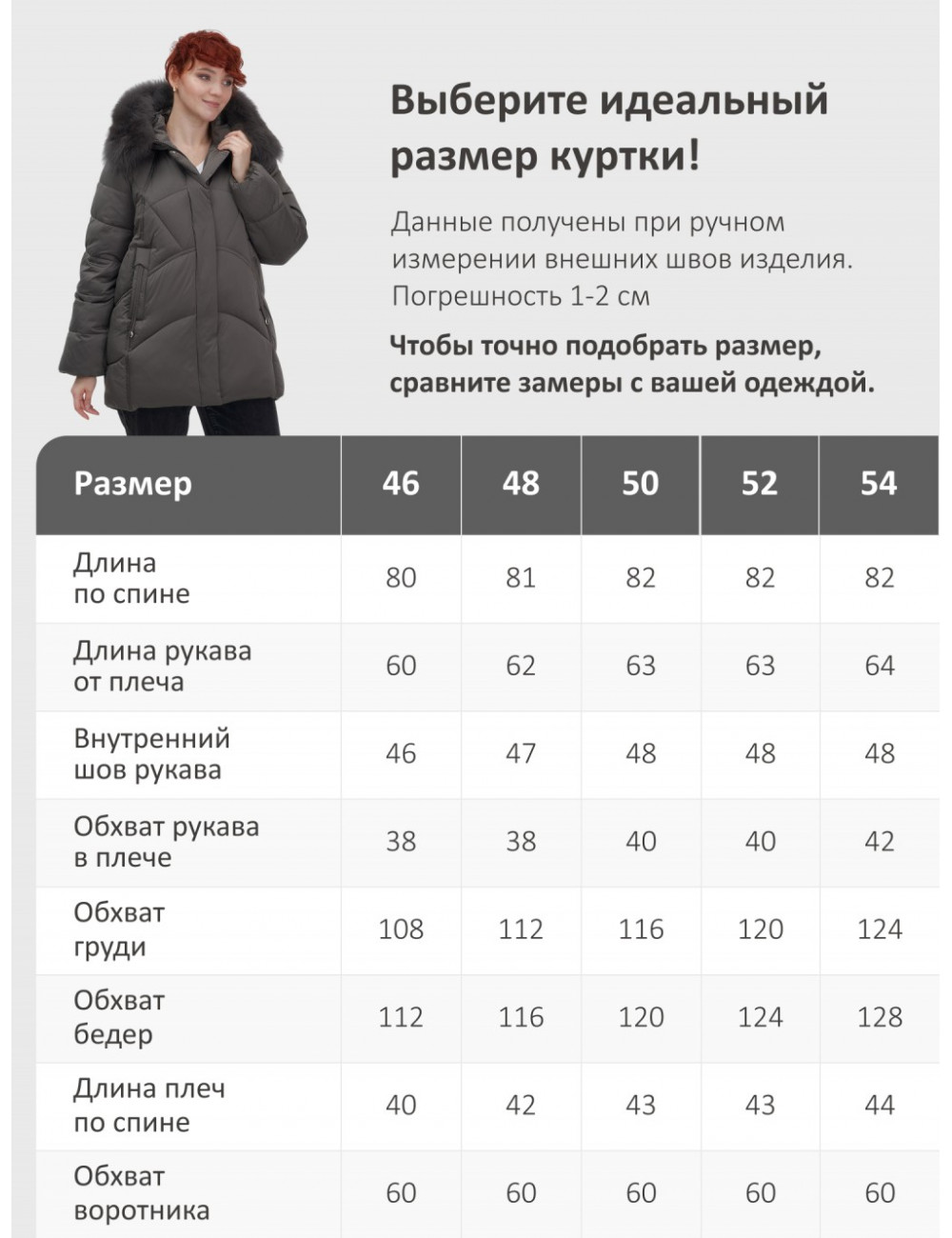 Наш пуховик доступен в различных размерах, чтобы каждая женщина могла подобрать идеальный вариант.