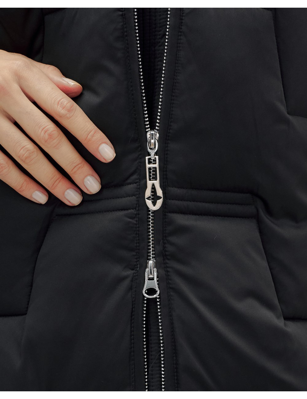 Технические характеристики Пуховик-пальто женский утеплённый с капюшоном, чёрный.