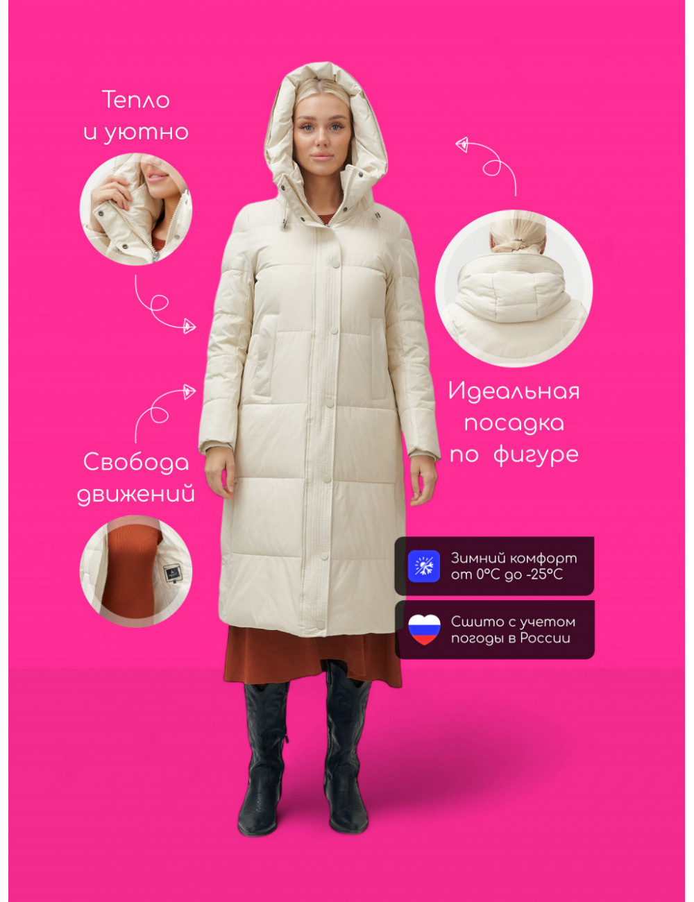Выбирая это утеплённое зимнее женское пальто-пуховик, вы получаете не только защиту от холода, но и возможность выглядеть стильно и элегантно в любой ситуации. Доставка по Москве и Московской области Пуховик-пальто женский утеплённый стёганый зимний с капюшоном бежевый