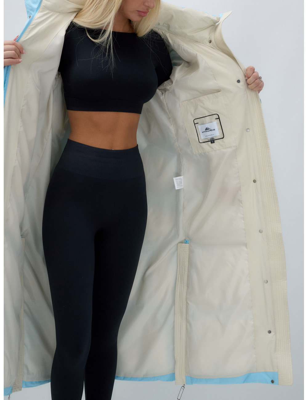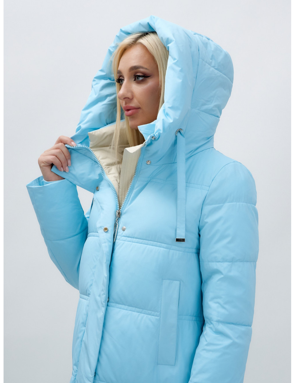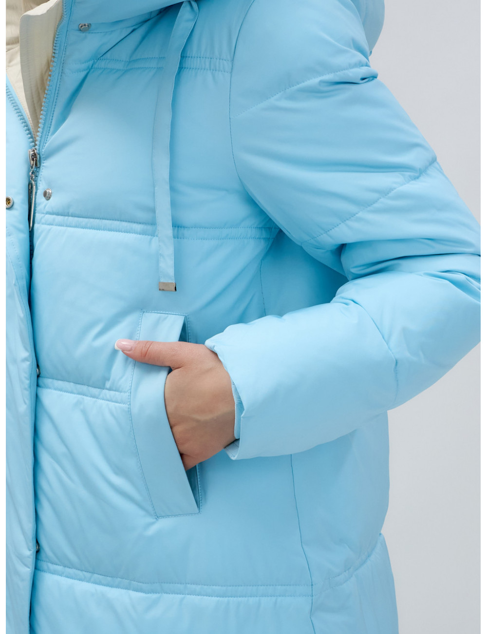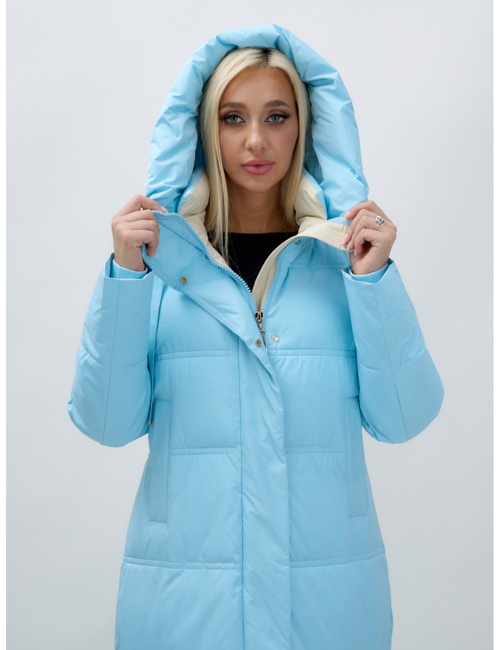 Технические характеристики Пуховик-пальто женский утеплённый стёганый зимний с капюшоном голубой.
