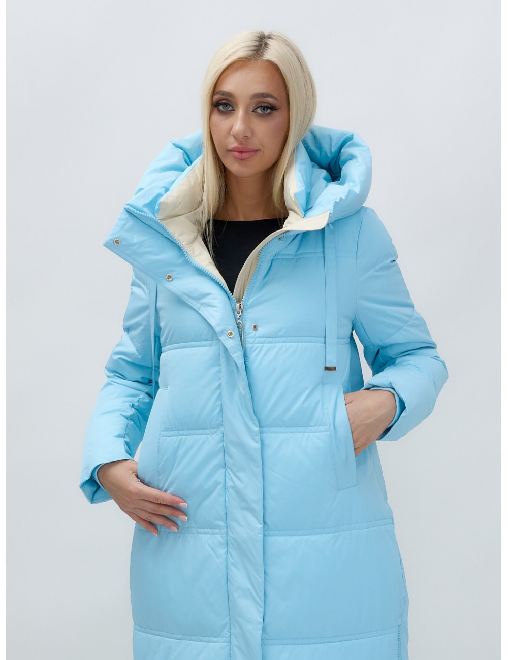 Позвольте себе наслаждаться комфортом и элегантностью в каждой детали! Доставка по Москве и Московской области Пуховик-пальто женское утеплённое стёганое зимнее с капюшоном, голубое